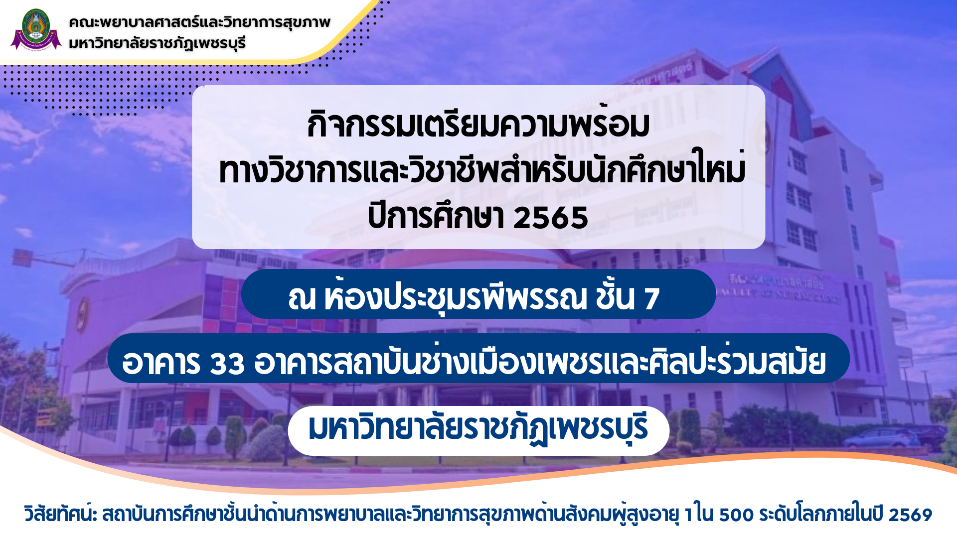 วันที่ 24 พฤศจิกายน 2564 คณะพยาบาลศาสตร์และวิทยาการสุขภาพ มหาวิทยาลัยราชภัฏเพชรบุรี รับการตรวจประเมินการปฏิบัติ “มาตรการความปลอดภัยสำหรับองค์กร (COVID-Free Setting)” โดยคณะกรรมการควบคุมโรค สำนักงานสาธารณสุขจังหวัดเพชรบุรี ซึ่งมีวัตถุประสงค์เพื่อสร้างความเชื่อมั่นและไว้วางใจ ให้แก่บุคลากร นักศึกษา ผู้ปกครอง ประชาชน ผู้มาติดต่องาน หรือรับบริการต่างๆ และคณะฯ ได้ดำเนินการประเมินตนเอง ซึ่งผลประเมินเป็นไปตามเกณฑ์ Thai Stop Covid