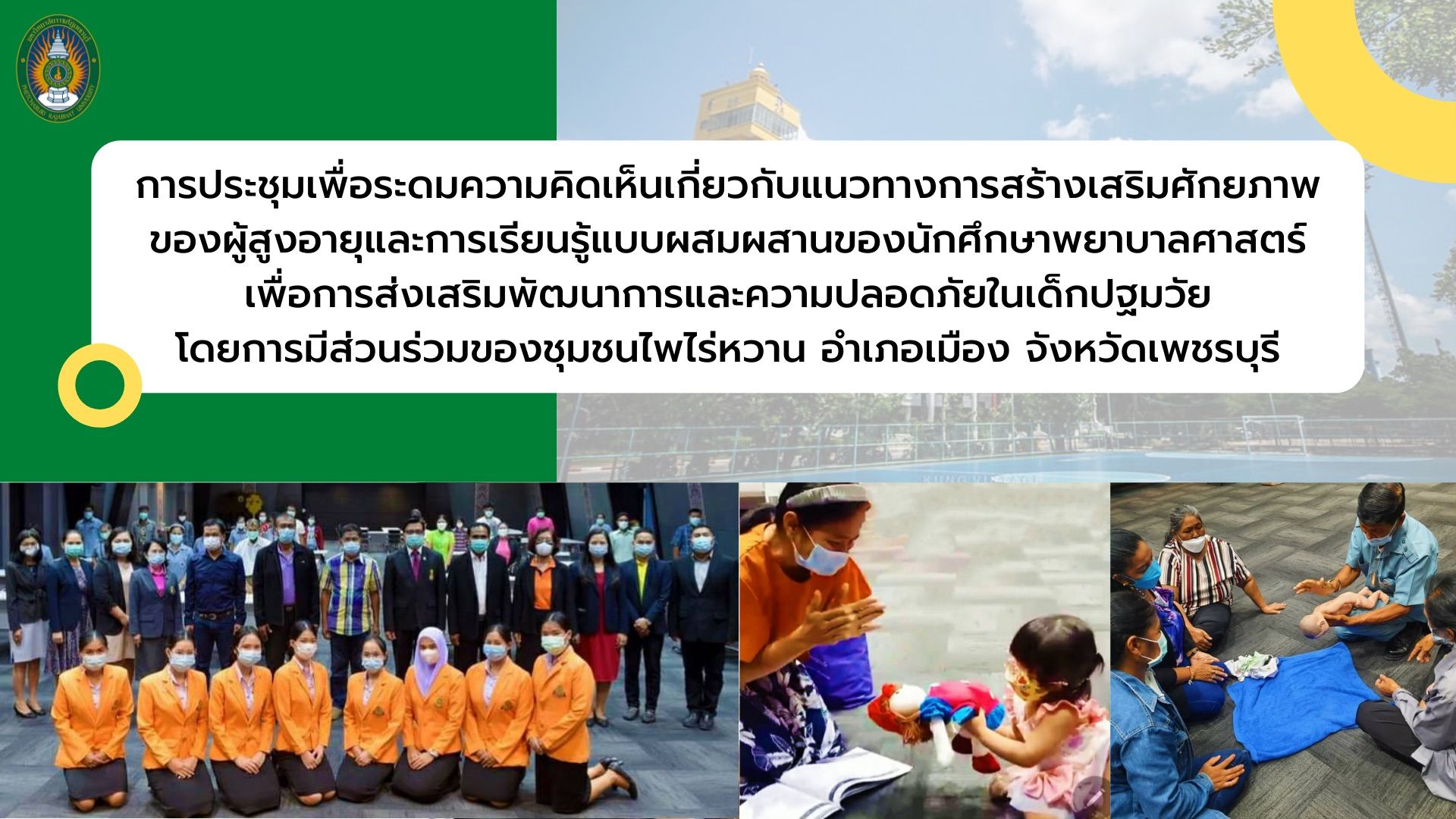 ภาควิชาการพยาบาลเด็กและวัยรุ่น โดย อาจารย์ เรือเอกหญิง สุพัตรา นุตรักษ์ และ อาจารย์ วรรณ ไพร แย้มมา คณะพยาบาลศาสตร์และวิทยาการสุขภาพ มหาวิทยาลัยราชภัฏเพชรบุรี ซึ่งมีพันธกิจในการผลิตบัณฑิตที่มีคุณภาพ มีความรักและผูกพันต่อท้องถิ่น นอกจากนี้ภาควิชาฯ ยังได้ตระหนักถึงบทบาทสำคัญในการส่งเสริมพัฒนาการและความปลอดภัยในเด็กปฐมวัยในท้องถิ่น ภายใต้บริบทของการเข้าอยู่สังคมผู้สูงอายุที่เพิ่มสูงขึ้นอย่างต่อเนื่องในชุมชน โดยมีความเชื่อที่ว่าผู้สูงอายุยังสามารถทำคุณประโยชน์ในการเป็นส่วนหนึ่งของการพัฒนาชุมชน จึงได้จัดกิจกรรมเพื่อพัฒนาศักยภาพผู้สูงอายุในการส่งเสริมพัฒนาการและการจัดการความปลอดภัยในเด็กปฐมวัย ร่วมกับองค์การบริหารส่วนตำบลโพไร่หวาน อำเภอเมือง จังหวัดเพชรบุรี ภายใต้โครงการศูนย์สุขภาพเด็กเล็กต้นแบบระยะที่ 1: “หนูน้อยปลอดภัย พัฒนาการสมวัย สุขใจต่างรุ่น”