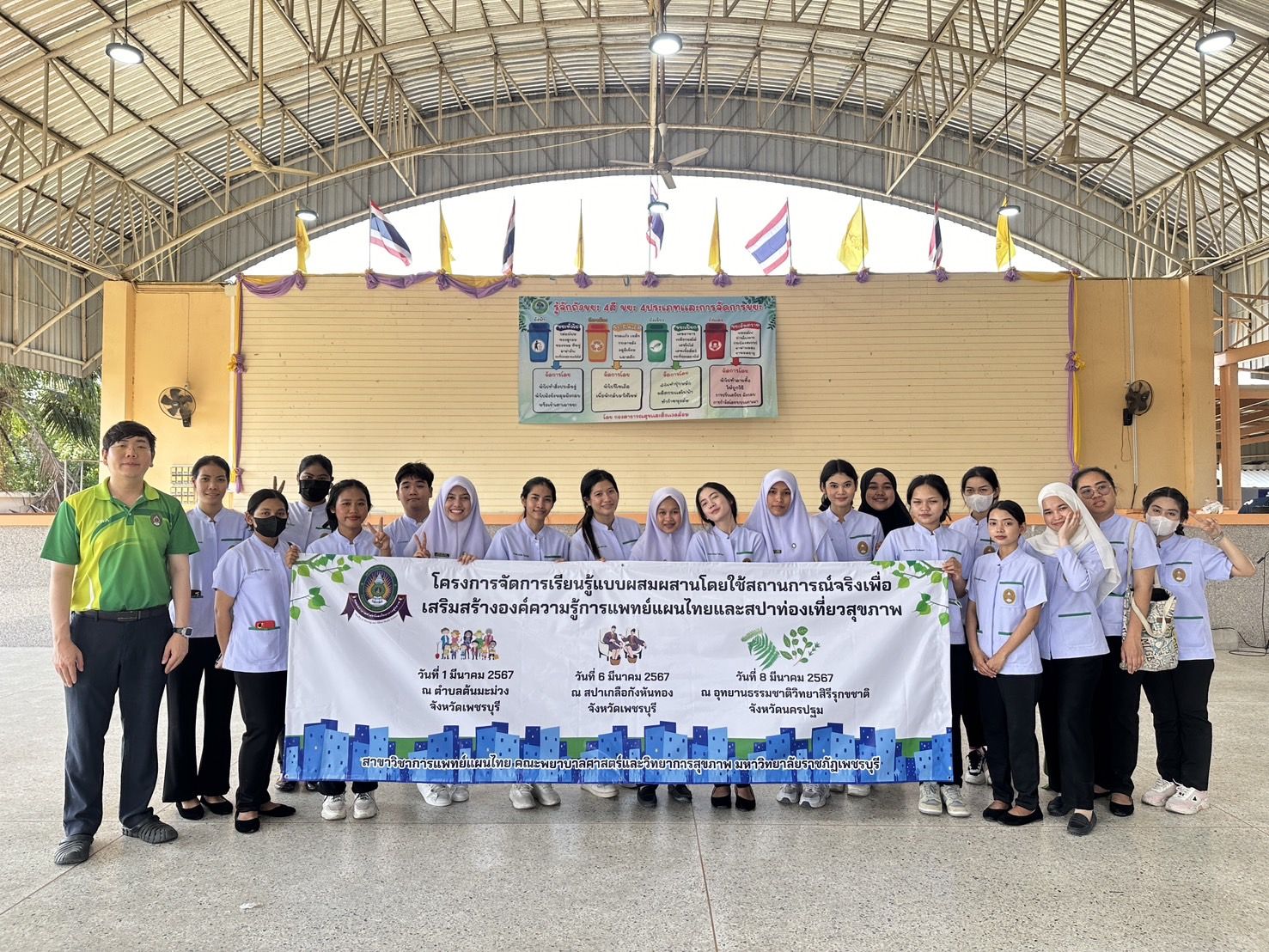 วันที่ 1 มีนาคม 2567 นักเรียนแพทย์แผนไทยชั้นปีที่ 3 ได้ออกบริการวิชาการ ซักประวัติตรวจร่างกายวินิจฉัยโรคทางการแพทย์แพทย์แผนไทย ทำหัตถการ ได้แก่ การนวด ประคบสมุนไพร การแช่เท้าสมุนไพร และให้คำแนะนำ แก่ประชาชนตำบลต้นมะม่วง จังหวัดเพชรบุรี ภายใต้โครงการจัดการเรียนรู้แบบผสมผสานโดยใช้สถานการณ์จริงเพื่อเสริมสร้างองค์ความรู้การแพทย์แผนไทยและสปาท่องเที่ยวสุขภาพ ณ องค์การบริหารส่วนตำบลต้นมะม่วง อำเภอเมือง จังหวัดเพชรบุรี เพื่อให้นักศึกษาได้ฝึกปฏิบัติในชุมชน เกิดการต่อยอดองค์ความรู้ ทักษะทางวิชาการและวิชาชีพ อีกทั้งยังเป็นการบริการวิชาการแก่ประชาชนทั่วไปโดยมีผู้เข้ารับการบริการด้านการแพทย์แผนไทย จำนวน 47 คน