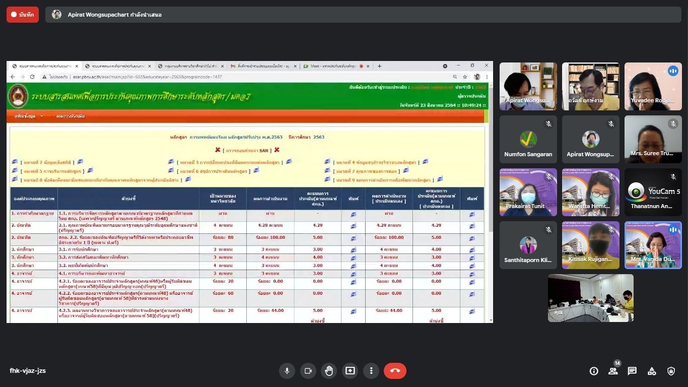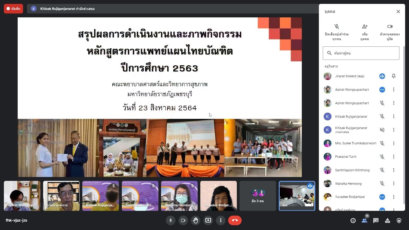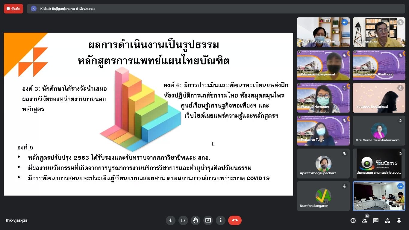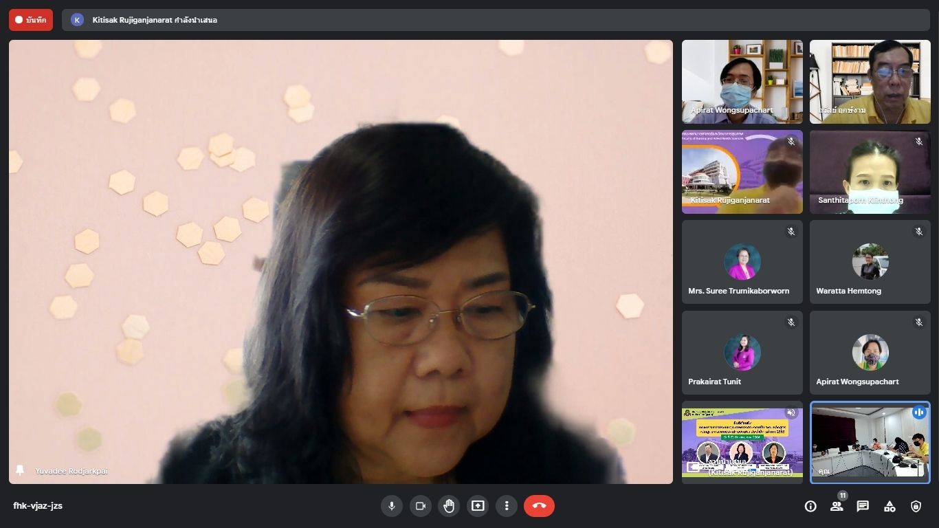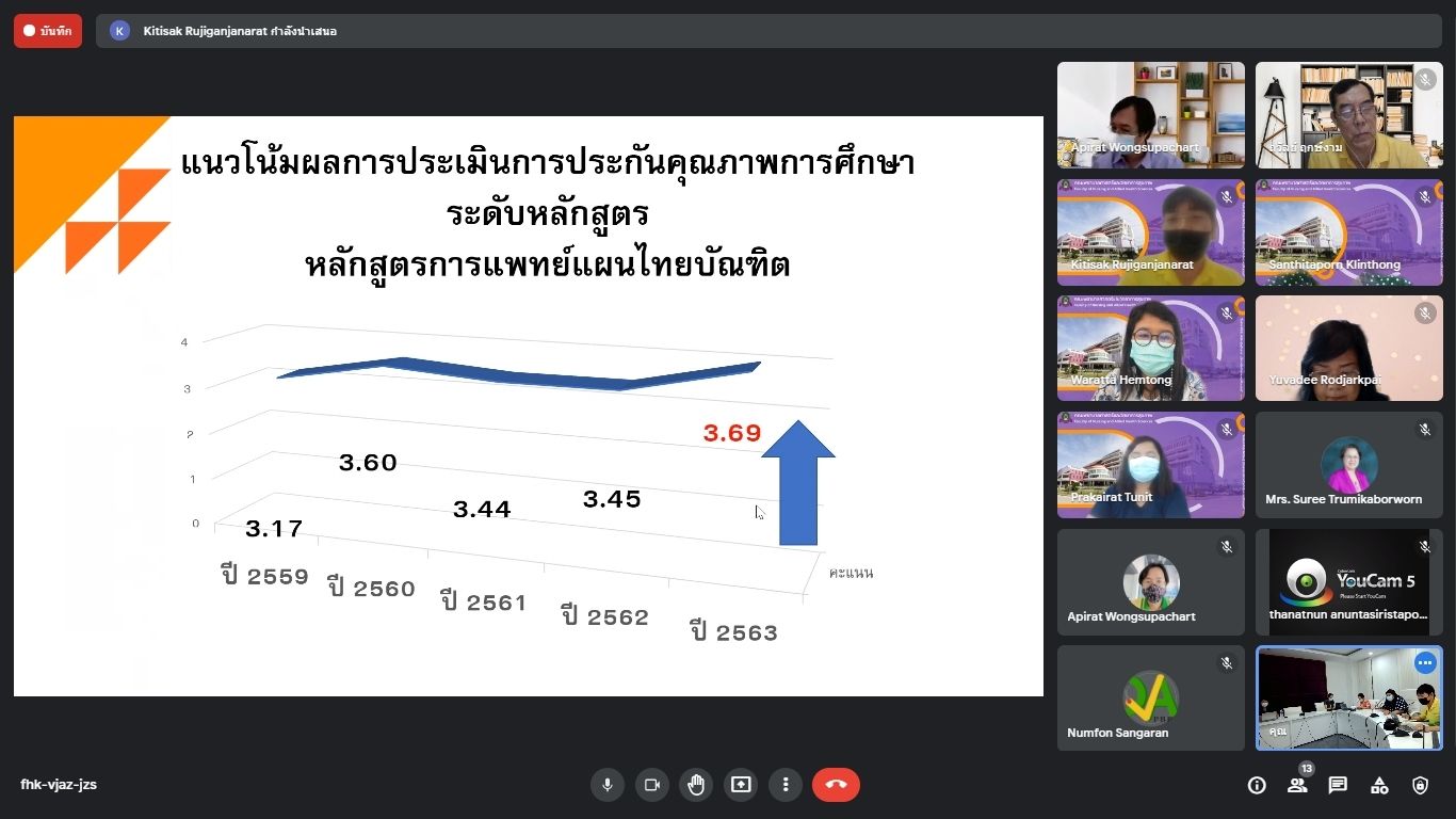 คณะพยาบาลศาสตร์และวิทยาการสุขภาพ โดย ผู้ช่วยศาสตราจารย์ ดร.วนิดา ดุรงค์ฤทธิชัย คณบดีคณะพยาบาลศาสตร์และวิทยาการสุขภาพ และคณาจารย์ ยินดีต้อนรับและขอบพระคุณคณะกรรมการตรวจประเมินประกันคุณภาพการศึกษาภายใน ระดับหลักสูตร หลักสูตรการแพทย์แผนไทยบัณฑิต ประจำปีการศึกษา 2563 วันที่ 23 สิงหาคม 2564 ได้รับเกียรติจาก รองศาสตราจารย์ ดร.ถวัลย์ ฤกษ์งาม รองศาสตราจารย์ ดร.ยุวดี รอดจากภัย และอาจารย์อภิรัตน์ วงศ์ศุภชาติ ประเมินคุณภาพการศึกษาและให้ข้อเสนอแนะต่างๆ ในการพัฒนาคุณภาพการจัดการศึกษาที่มีคุณภาพและได้มาตรฐานอย่างต่อเนื่องของหลักสูตรต่อไป