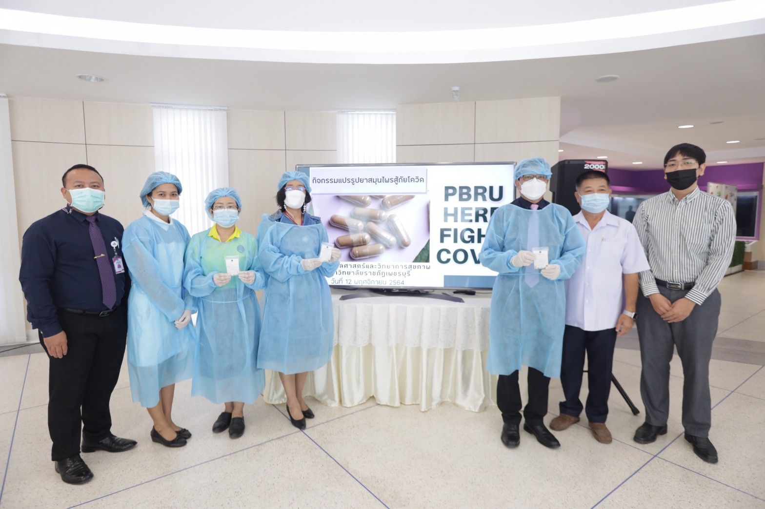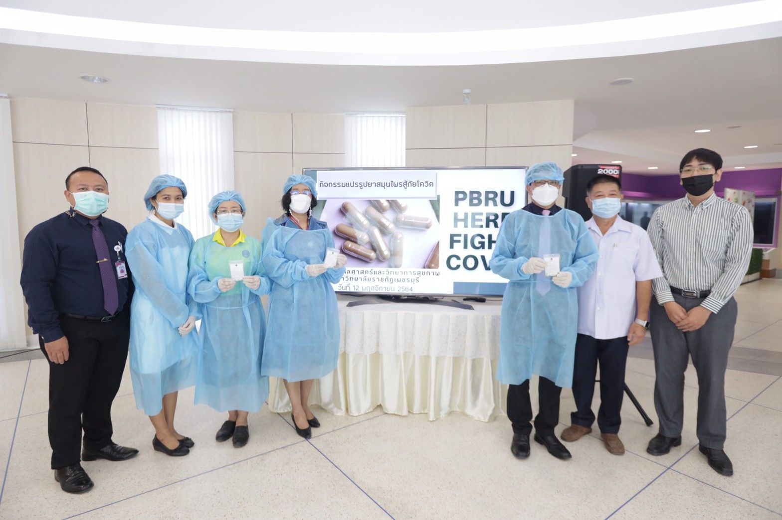 กิจกรรม“PBRU Herb Fight Covid แปรรูปยาสมุนไพรสู้ภัยโควิด” ครั้งนี้จะมีการแปรรูปยาแคปซูลสมุนไพรฟ้าทะลายโจรผง 30 กิโลกรัม และมีการบันทึกวิดีโอสอนการแปรรูปยาแคปซูลสมุนไพร เพื่อใช้ในการเรียนรู้ด้วยตนเองของนักศึกษาและเป็นการบริการวิชาการแก่ประชาชนในชุมชน และโรงพยาบาลในจังหวัดเพชรบุรี ต่อไป