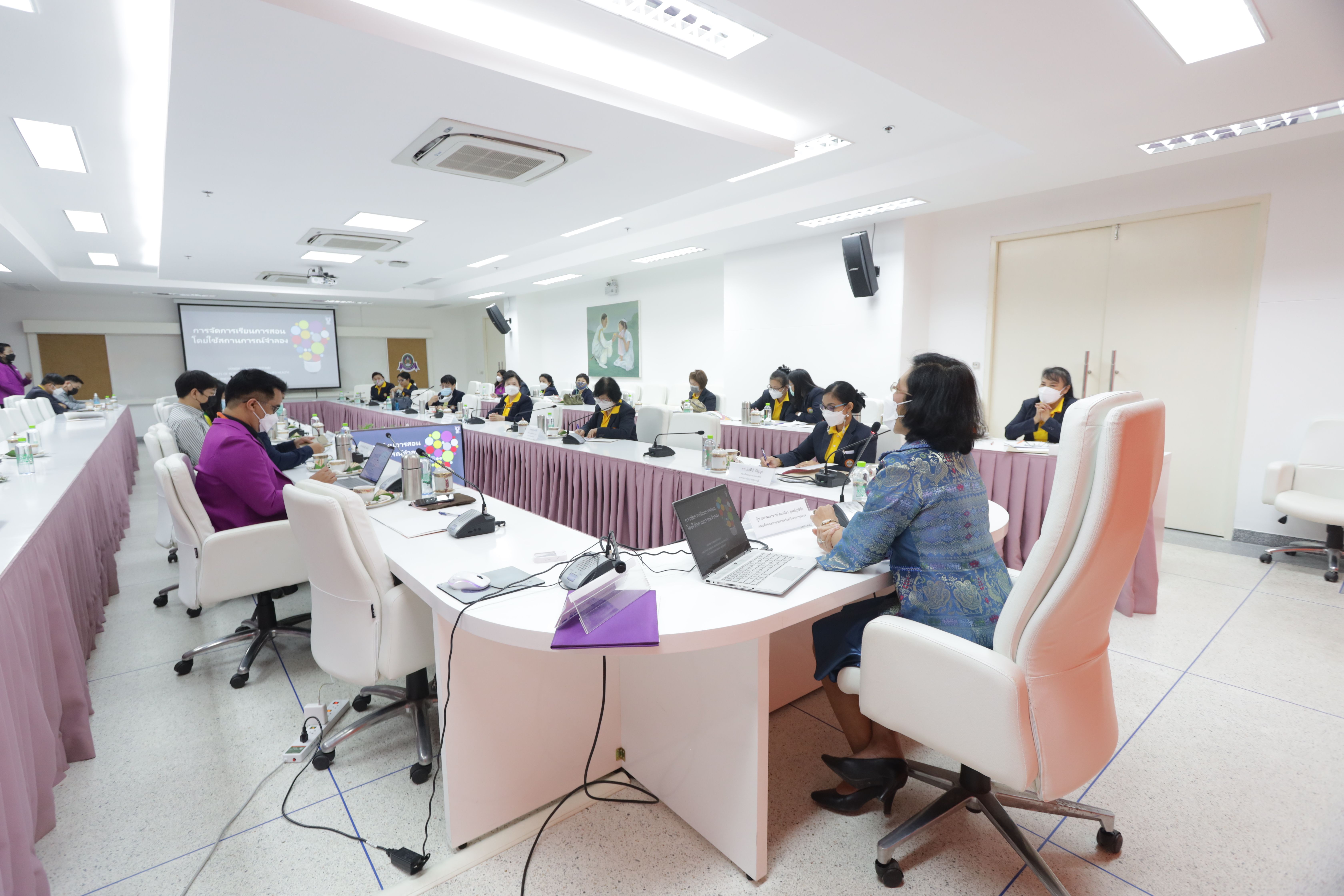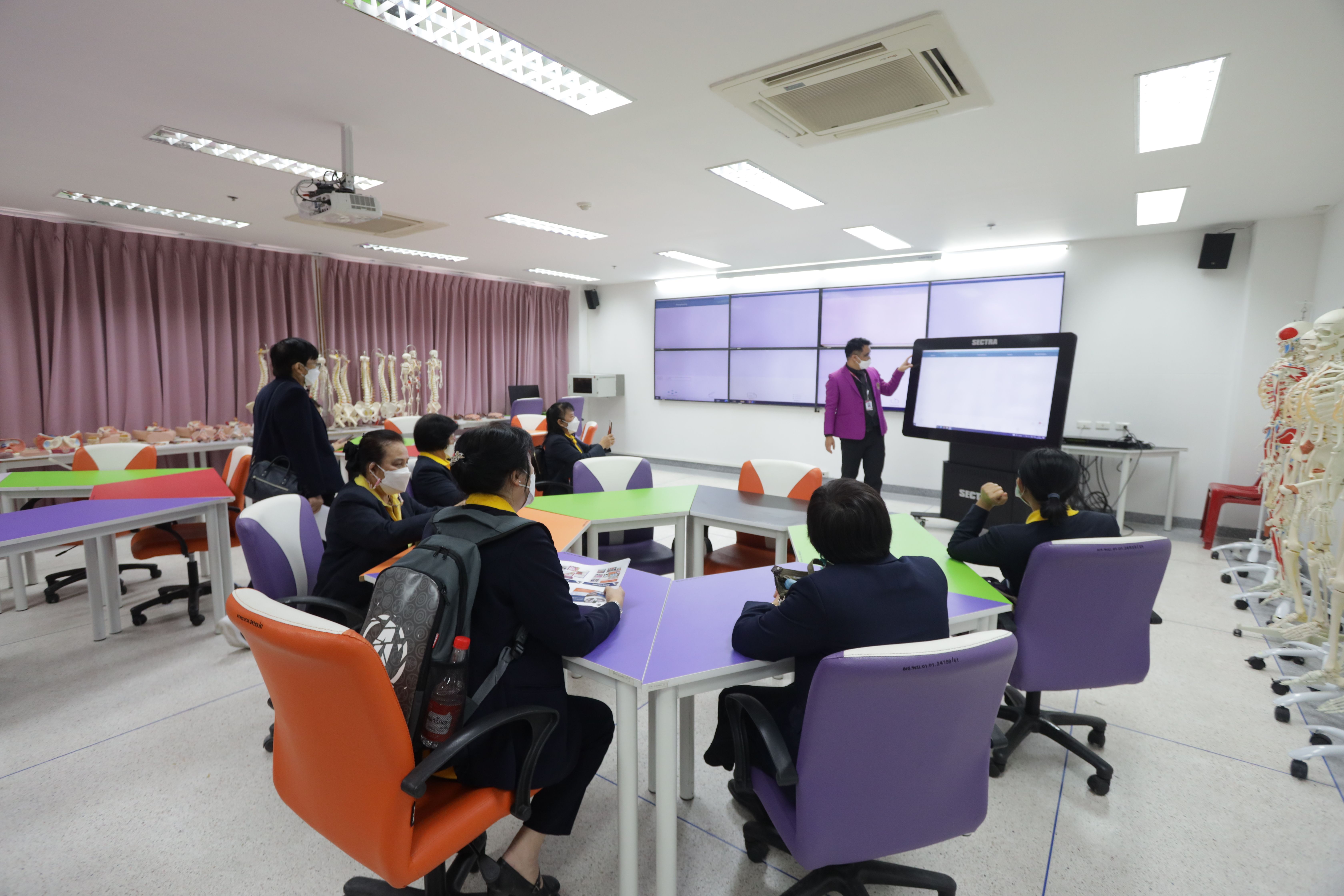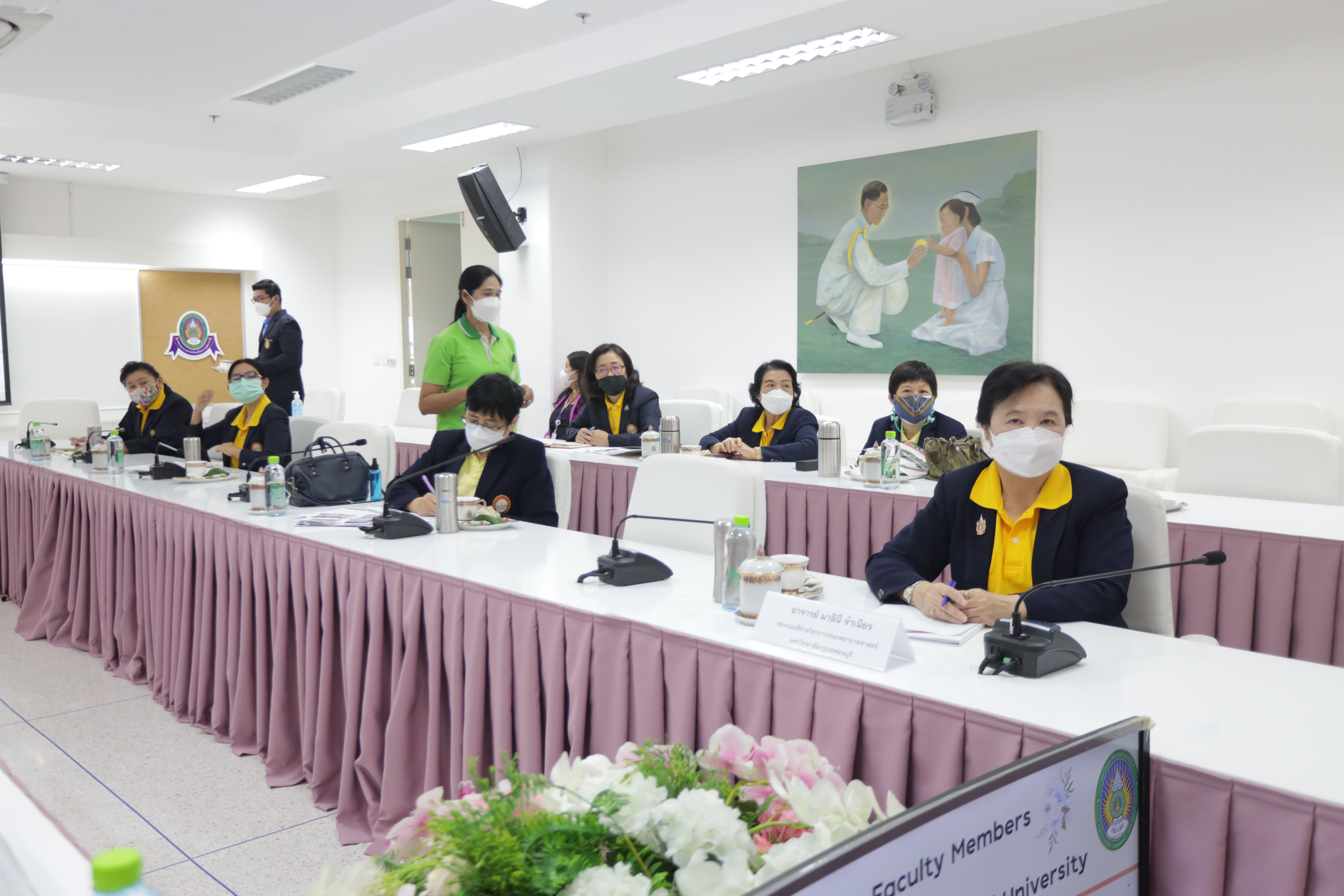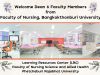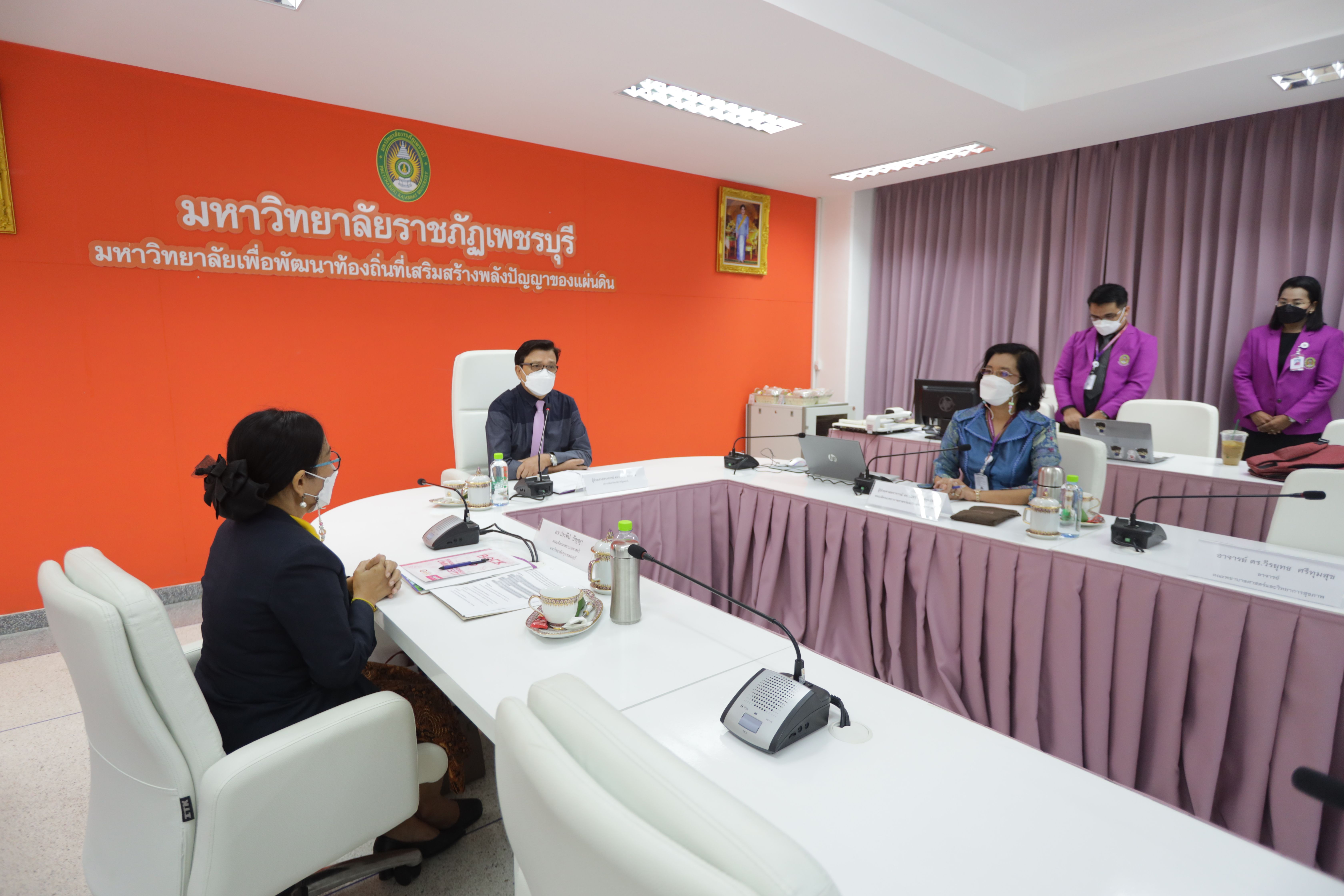 On November 12, 2021, Asst.Prof.Dr.Sanor Klinngam, President of Phetchaburi Rajabhat University with Asst.Prof.Dr.Vanida Durongritthichai, Dean, Faculty of Nursing Science and Allied Health, and Dr.Werayuth Srithumsuk, Head of Learning Resources Center (LRC) welcome Dr. Prateep Panya, Dean, Faculty of Nursing, Bangkokthonburi University with administrators and faculty members for visiting the learning resources center and exchange knowledge regarding a simulation-based learning (SBL) teaching and learning management and SBL online effectively.