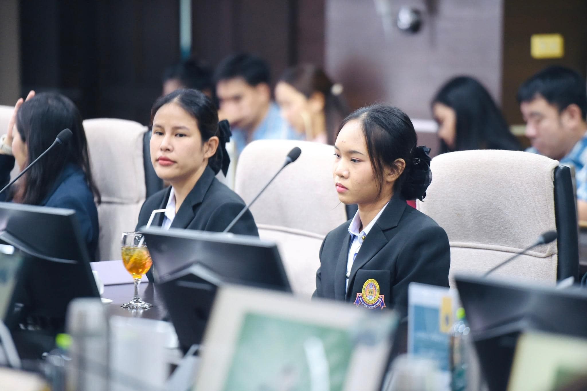 คณะพยาบาลศาสตร์และวิทยาการสุขภาพ เข้าร่วมการนำเสนอกิจกรรมในการสร้างมหาวิทยาลัยแห่งความสุข Happy University นำโดย ผู้ช่วยศาสตราจารย์ เรือเอกหญิง ดร.สุพัตรา นุตรักษ์ คณบดีคณะพยาบาลศาสตร์และวิทยาการสุขภาพ อาจารย์รัชดาวัลย์ จิตรพรกุลวศิน ประธานสาขาสาธารณสุขศาสตร์ อาจารย์กุลวดี เข่งวา อาจารย์ประจำสาขาสาธารณสุขศาสตร์ และนักศึกษาชมรมถันยรักษ์