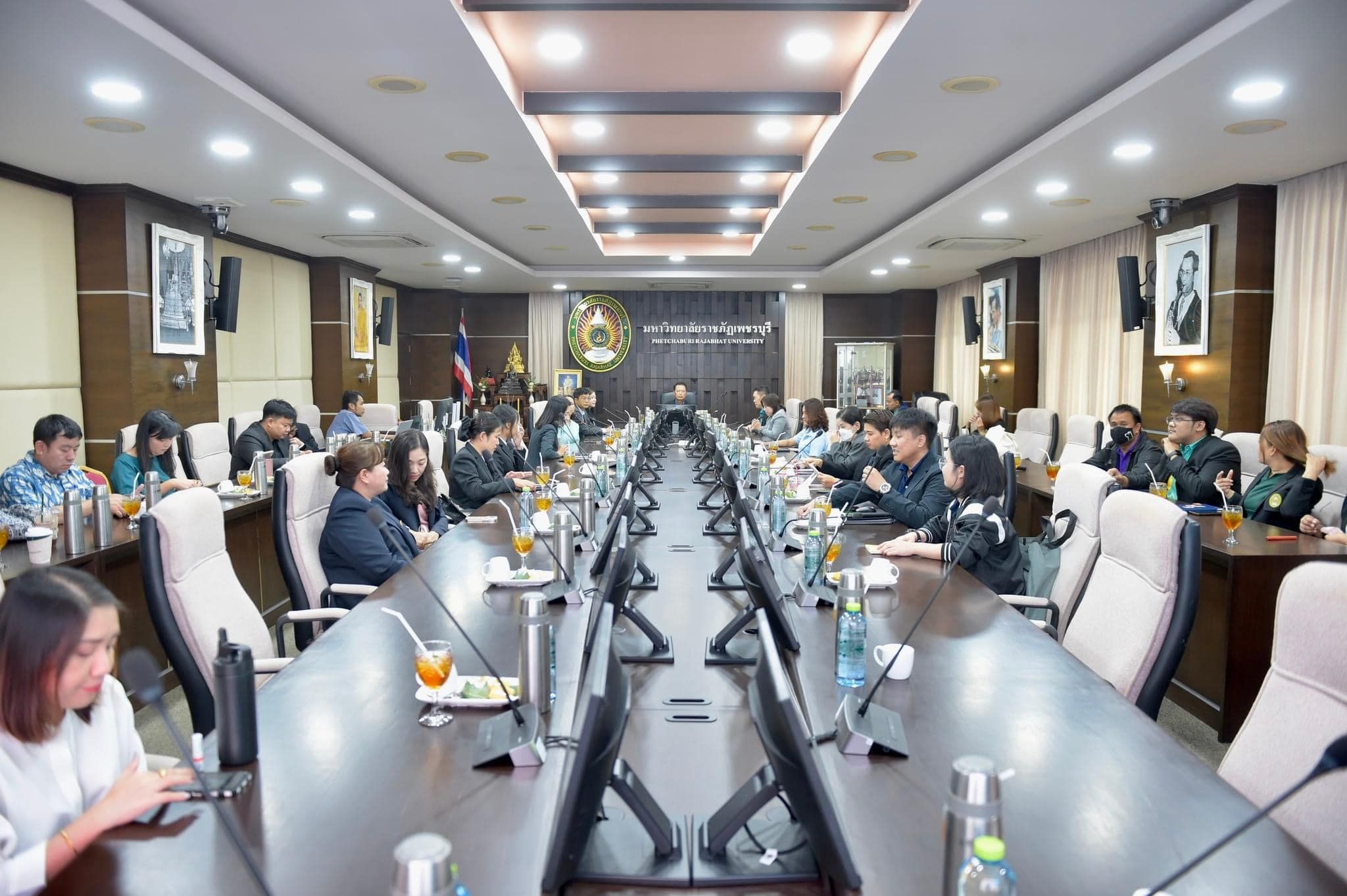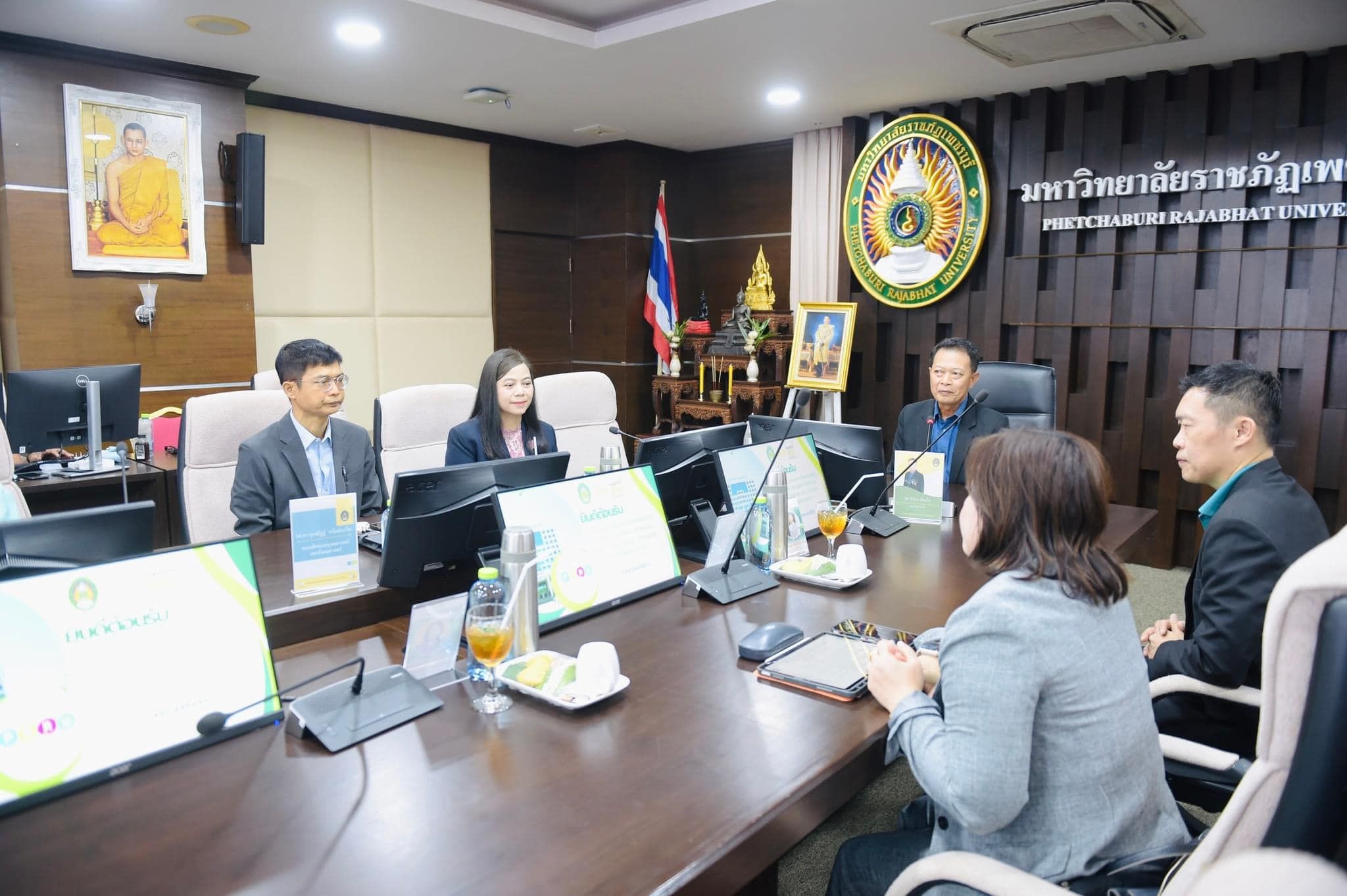 ในวันที่ 31 พฤษภาคม 2567 ณ ห้องประชุมราชภัฏสภา ชั้น 9 อาคารวิทยาภิรมย์ มหาวิทยาลัยราชภัฏเพชรบุรี ผู้ช่วยศาสตราจารย์ ดร.เสนาะ กลิ่นงาม อธิการบดีมหาวิทยาลัยราชภัฏเพชรบุรี ผู้ช่วยศาสตราจารย์วิเชียร เข็มเงิน รองอธิการบดีมหาวิทยาลัยราชภัฏเพชรบุรี พร้อมด้วยคณะผู้บริหารมหาวิทยาลัย ให้การต้อนรับคณะผู้บริหารสำนักงานกองทุนสนับสนุนการเสริมสร้างสุขภาพ (สสส.) นำโดยนายพงษ์ศักดิ์ ธงรัตนะ ผู้อำนวยการสำนักสนับสนุนสุขภาวะองค์กร พร้อมด้วยผู้ช่วยศาสตราจารย์ ดร.ตรรกพร สุขเกษม หัวหน้าโครงการ สร้าง เสริมสุข มหาวิทยาลัยราชภัฏไปสู่สังคมสุขภาวะ และคณะทำงานในการติดตามผลการดำเนินโครงการ สร้าง เสริม สุข มหาวิทยาลัยราชภัฏไปสู่สังคมสุขภาวะพื้นที่ตัวอย่าง มหาวิทยาลัยราชภัฏเพชรบุรี