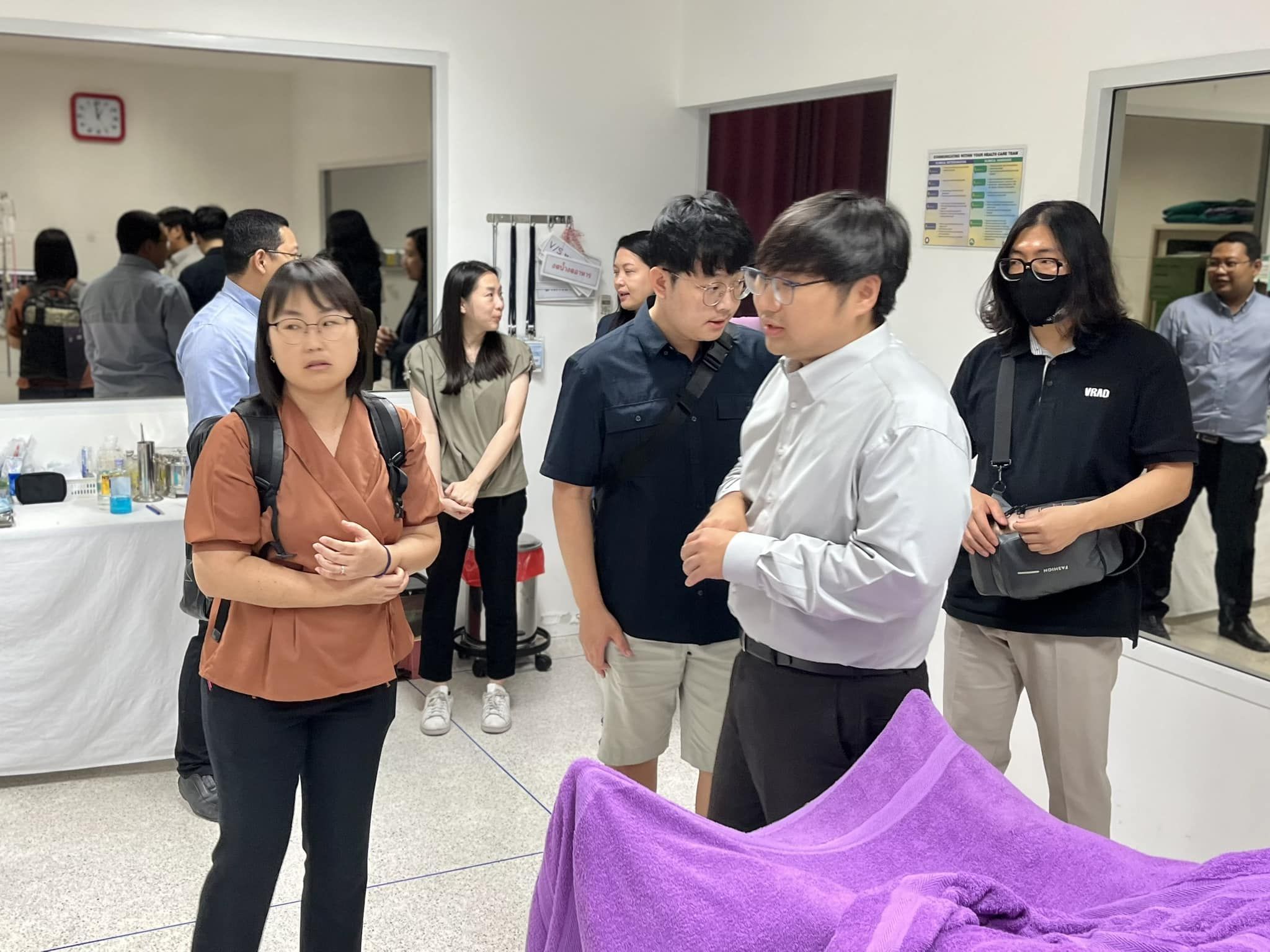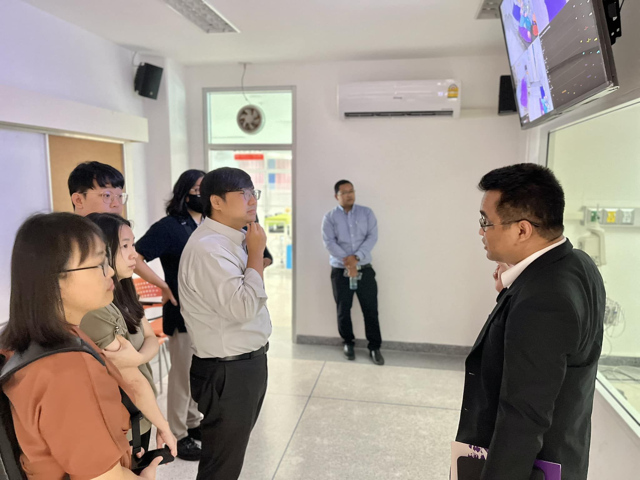 ในวันพุธที่ 28 สิงหาคม 2567 ผู้ช่วยศาสตราจารย์ เรือเอกหญิง ดร.สุพัตรา นุตรักษ์ คณบดีคณะพยาบาลศาสตร์และวิทยาการสุขภาพ พร้อมด้วยคณะผู้บริหาร คณาจารย์ และบุคลากร ให้การต้อนรับ Mr.Lee Heesuk, CEO VRAD Inc. และทีมงาน ในการเยี่ยมชมการจัดการเรียนการสอนด้วยสถานการณ์จำลอง และการใช้เทคโนโลยีดิจิทัลในการเรียนการสอน ณ ศูนย์ SIRCOP อาคารคณะพยาบาลศาสตร์และวิทยาการสุขภาพ