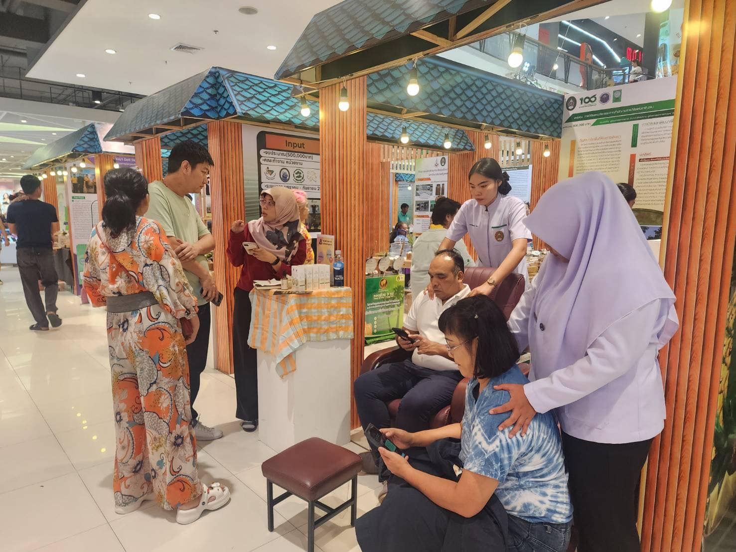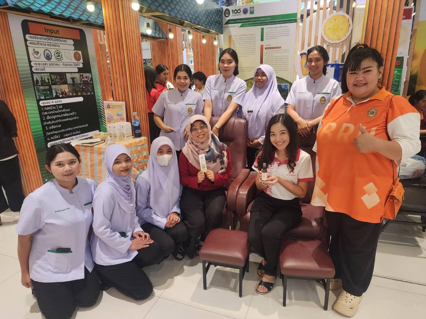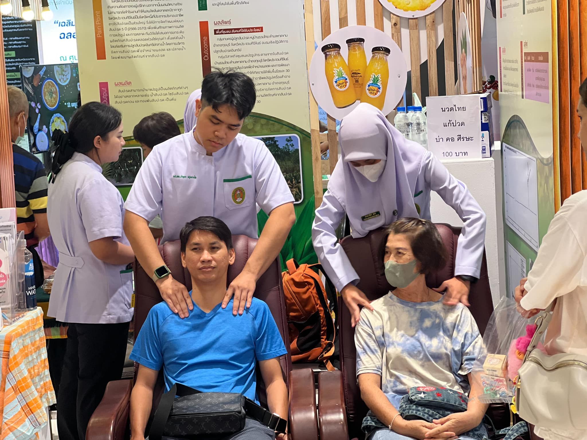 โดย ผู้ช่วยศาสตราจารย์ ดร.วรรณไพร แย้มมา รองคณบดีฝ่ายบริหารนโยบายและแผน อาจารย์ ดร.กิติศักดิ์ รุจิกาญจนรัตน์ ผู้ช่วยคณบดีฝ่ายบริการวิชาการและทำนุบำรุงศิลปวัฒนธรรม ผู้ช่วยศาสตราจารย์ชิดชนก ปานวิเชียร อาจารย์ ดร.เบญจวรรณ ดุนขุนทด อาจารย์รัชดาวัลย์ จิตรพรกุลวศิล อาจารย์พรทิพย์ พาโน อาจารย์ฮาวานี สาคอ อาจารย์สัณฐิตาพร กลิ่นทอง และนักศึกษาแพทย์แผนไทยชั้นปีที่ 3 ได้ดำเนินกิจกรรมการให้บริการนวดเพื่อสุขภาพ สเปรย์ไพลสูตรเย็น และกิจกรรมชมรมถันยรักษ์ (BSE application)