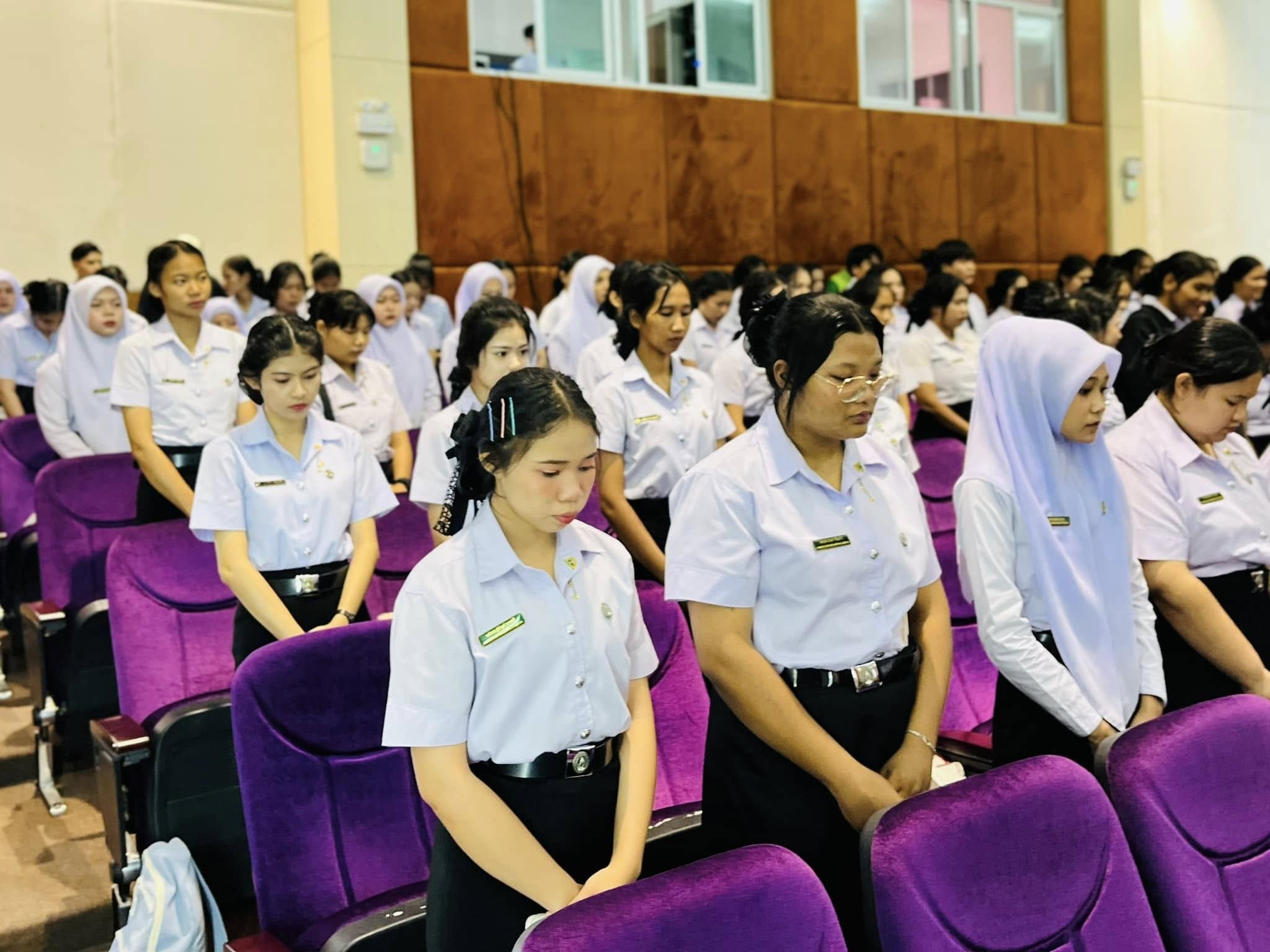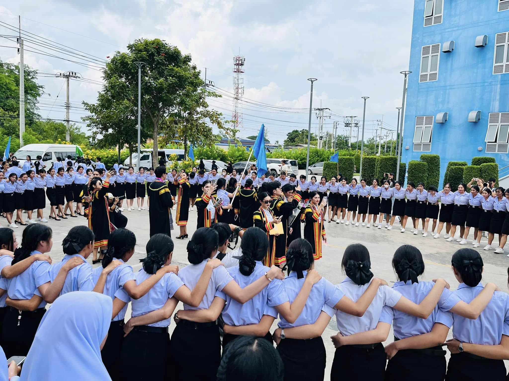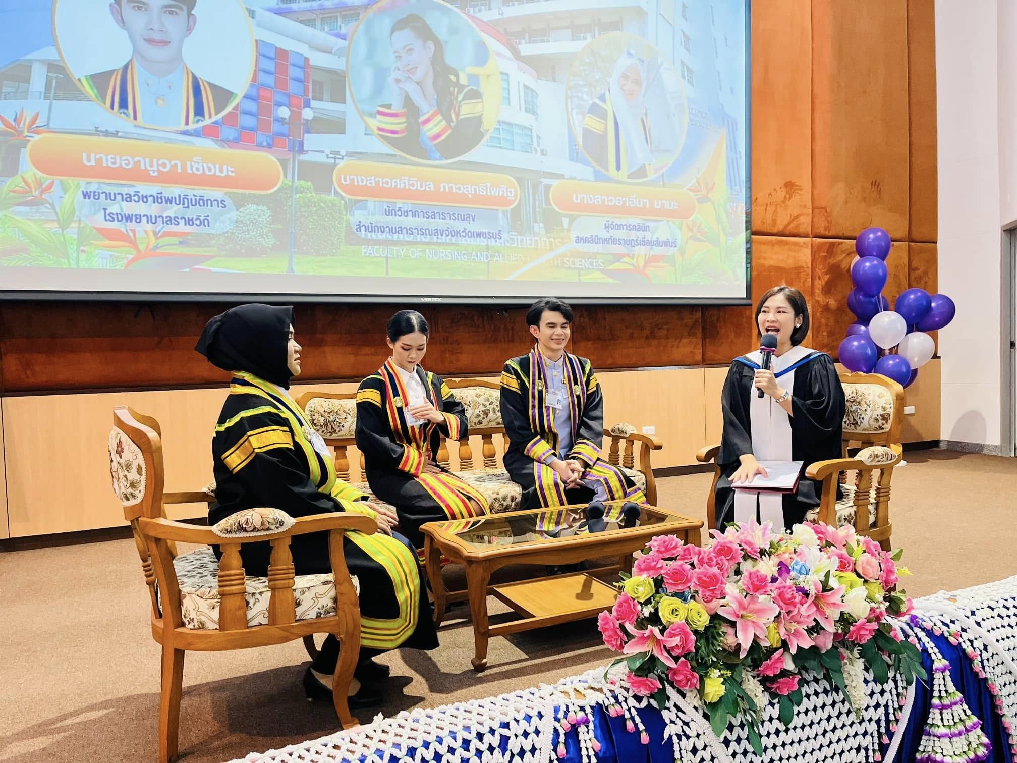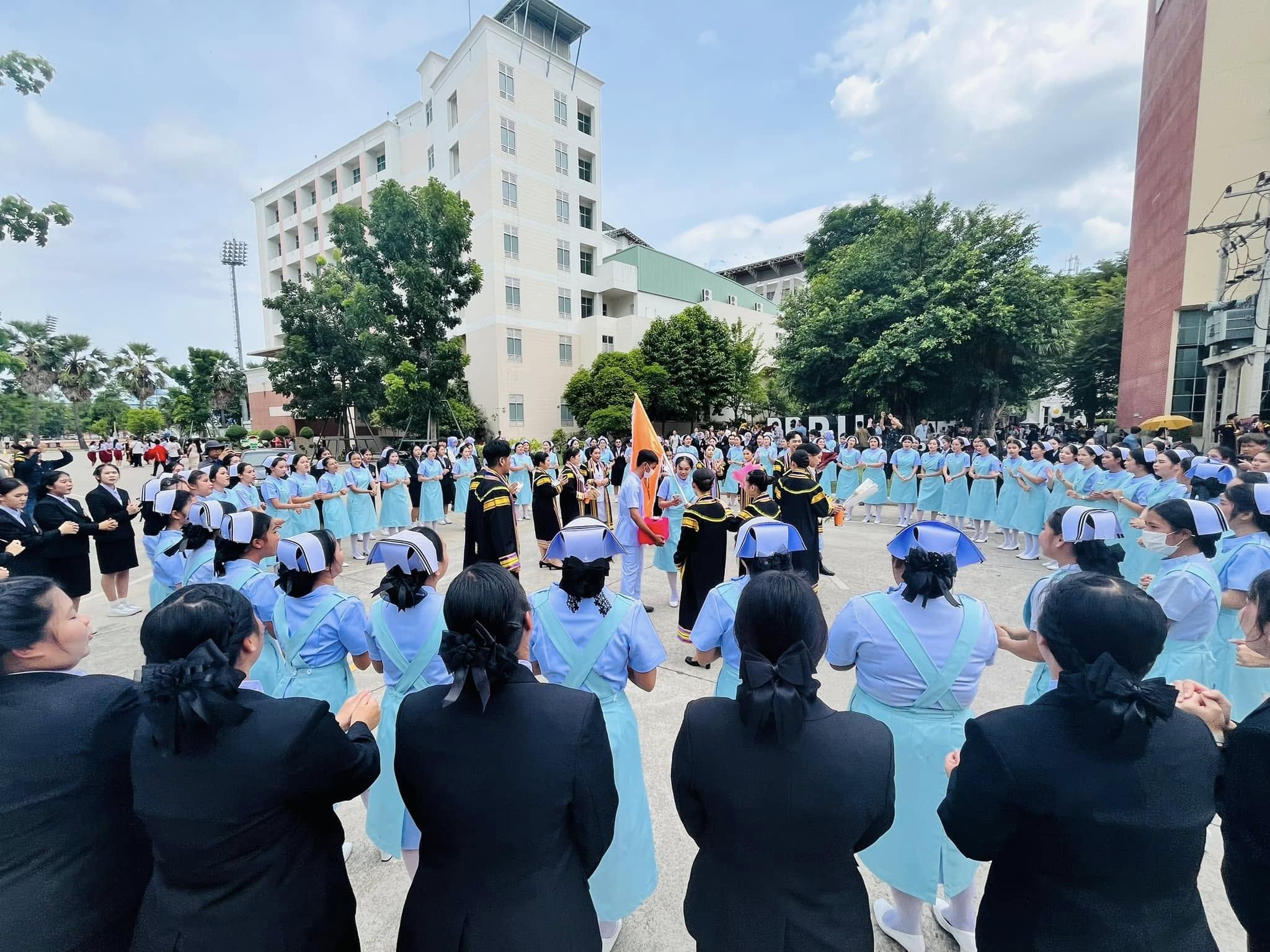🔸 โดยได้รับเกียรติจาก ผู้ช่วยศาสตราจารย์ เรือเอกหญิง ดร.สุพัตรา นุตรักษ์ คณบดีคณะพยาบาลศาสตร์และวิทยาการสุขภาพ เป็นประธานเปิดกิจกรรมและกล่าวให้โอวาท อาจารย์ ดร.นงลักษณ์ กลิ่นพุดตาล ผู้ช่วยคณบดีฝ่ายกิจการและพัฒนานักศึกษา เป็นผู้กล่าวรายงานโดยมีบัณฑิตผู้สำเร็จการศึกษาปีการศึกษา 2565 และนักศึกษาคณะพยาบาลศาสตร์และวิทยาการสุขภาพเข้าร่วมกิจกรรม