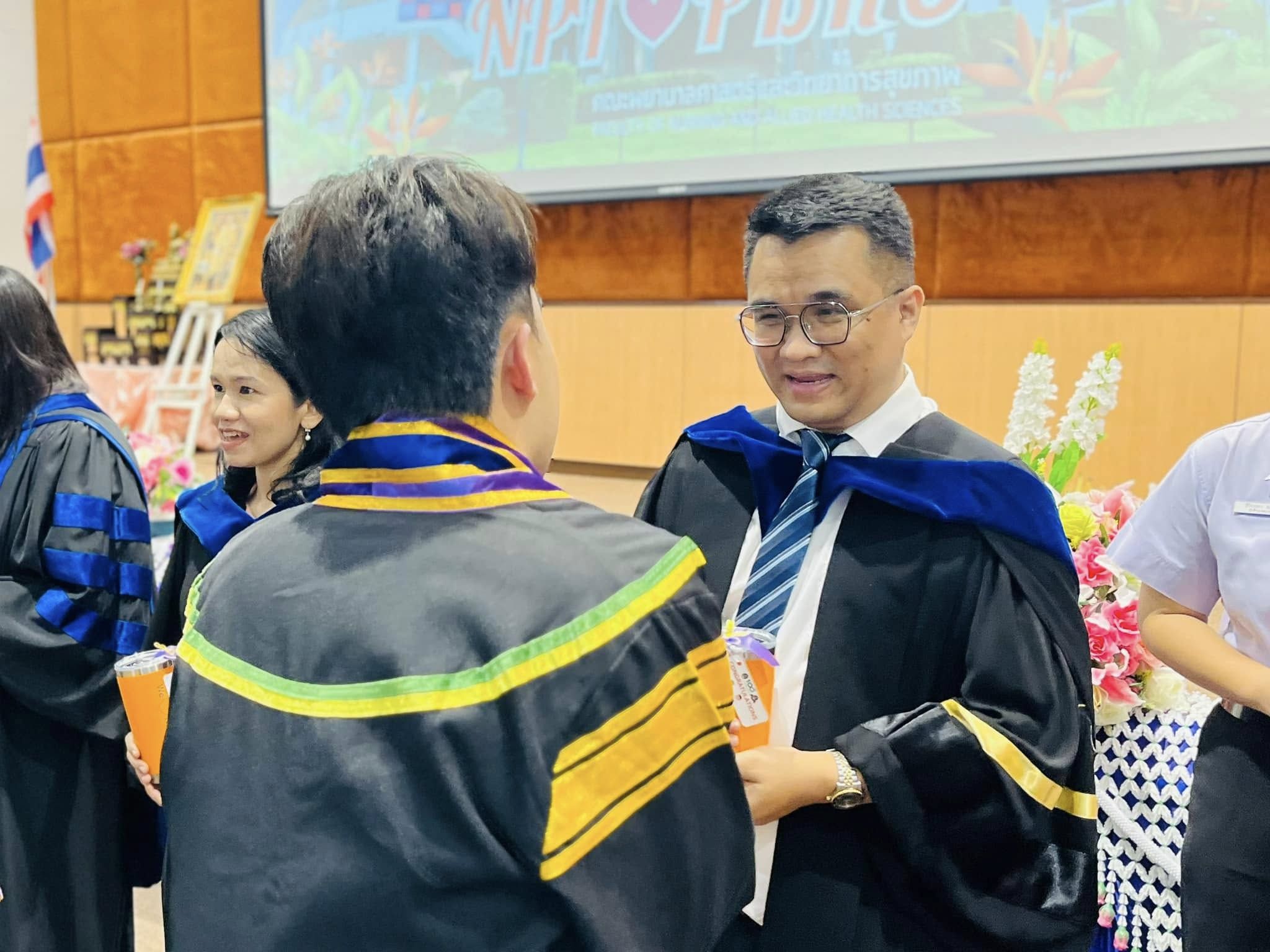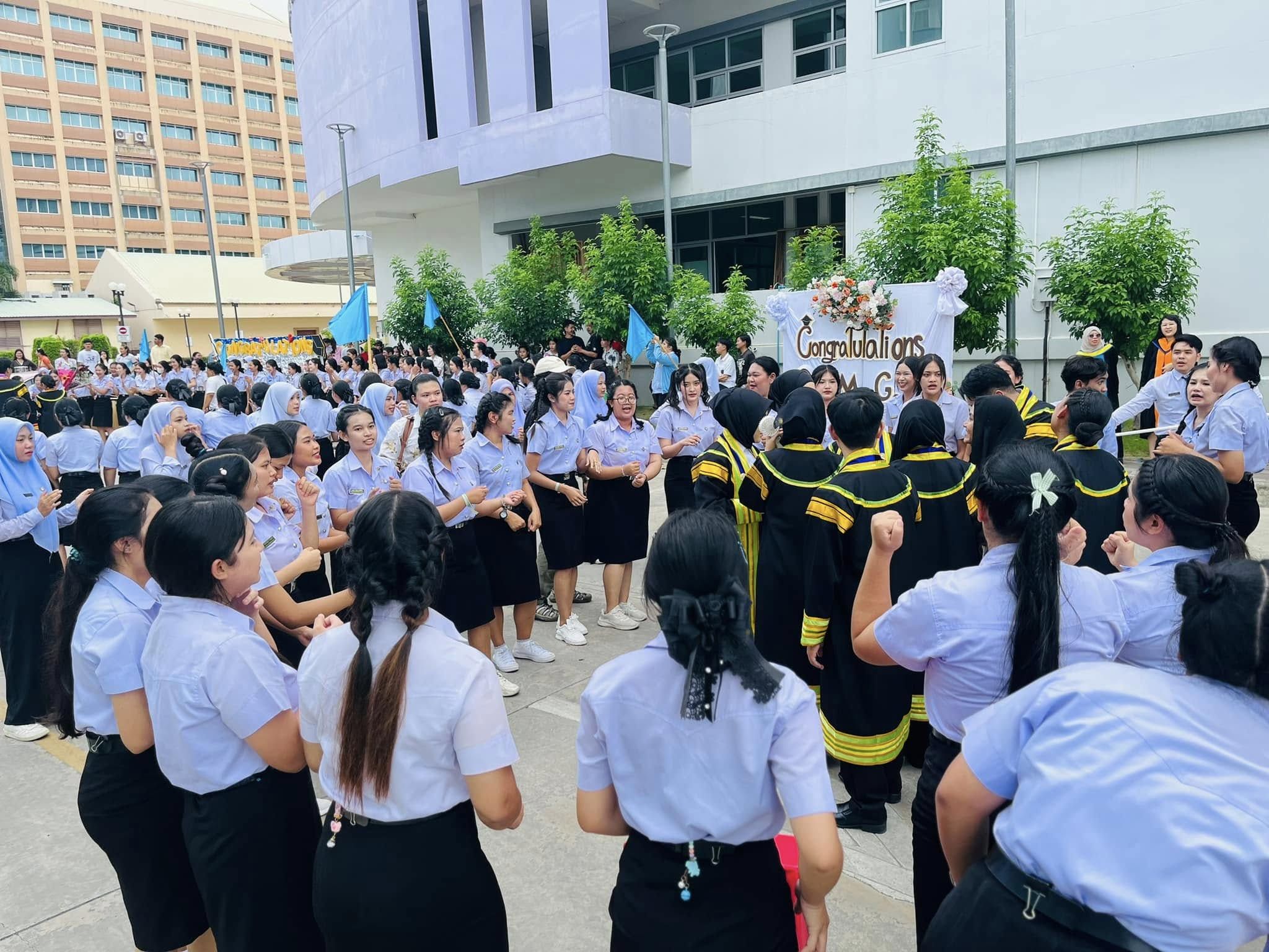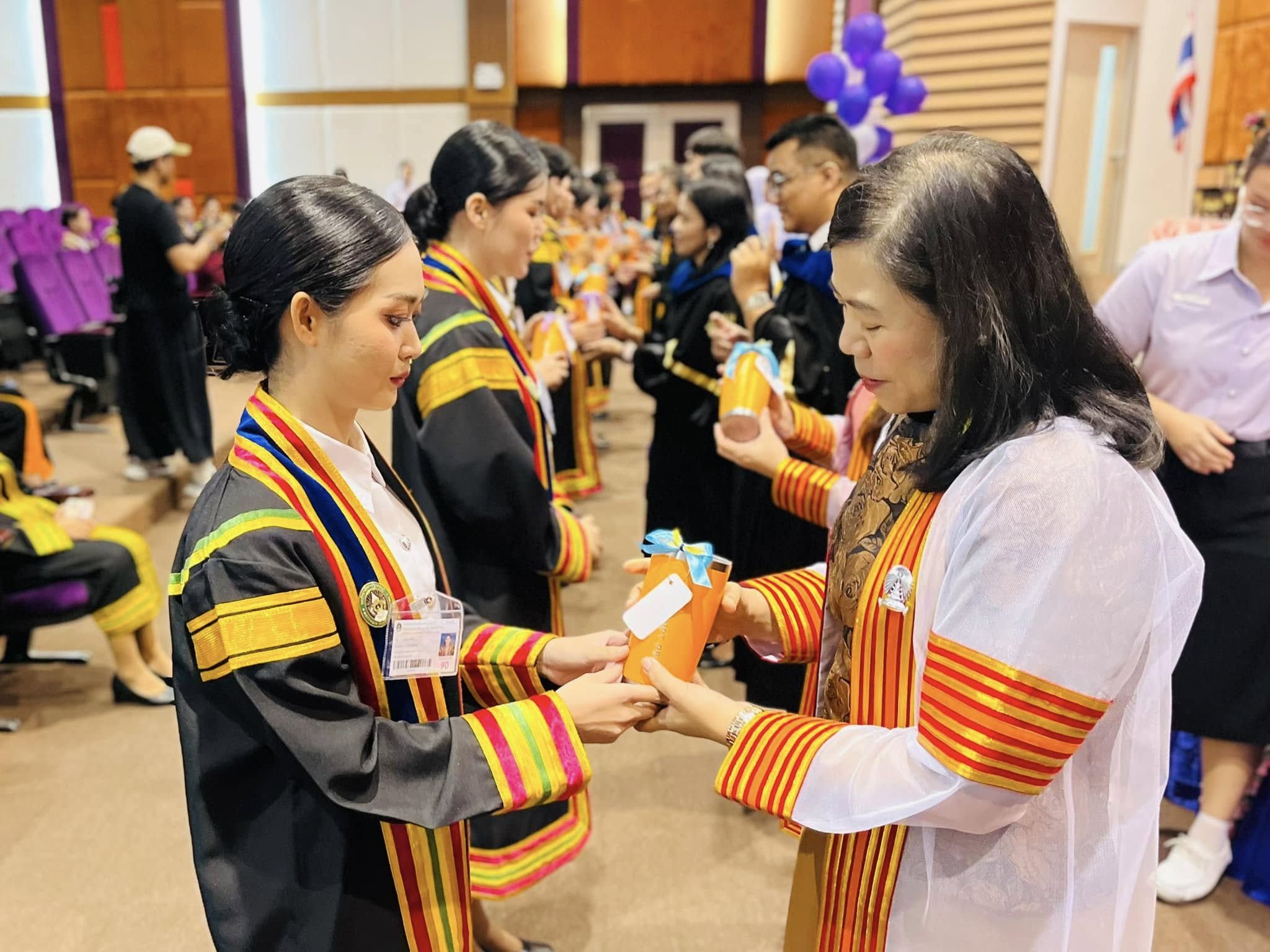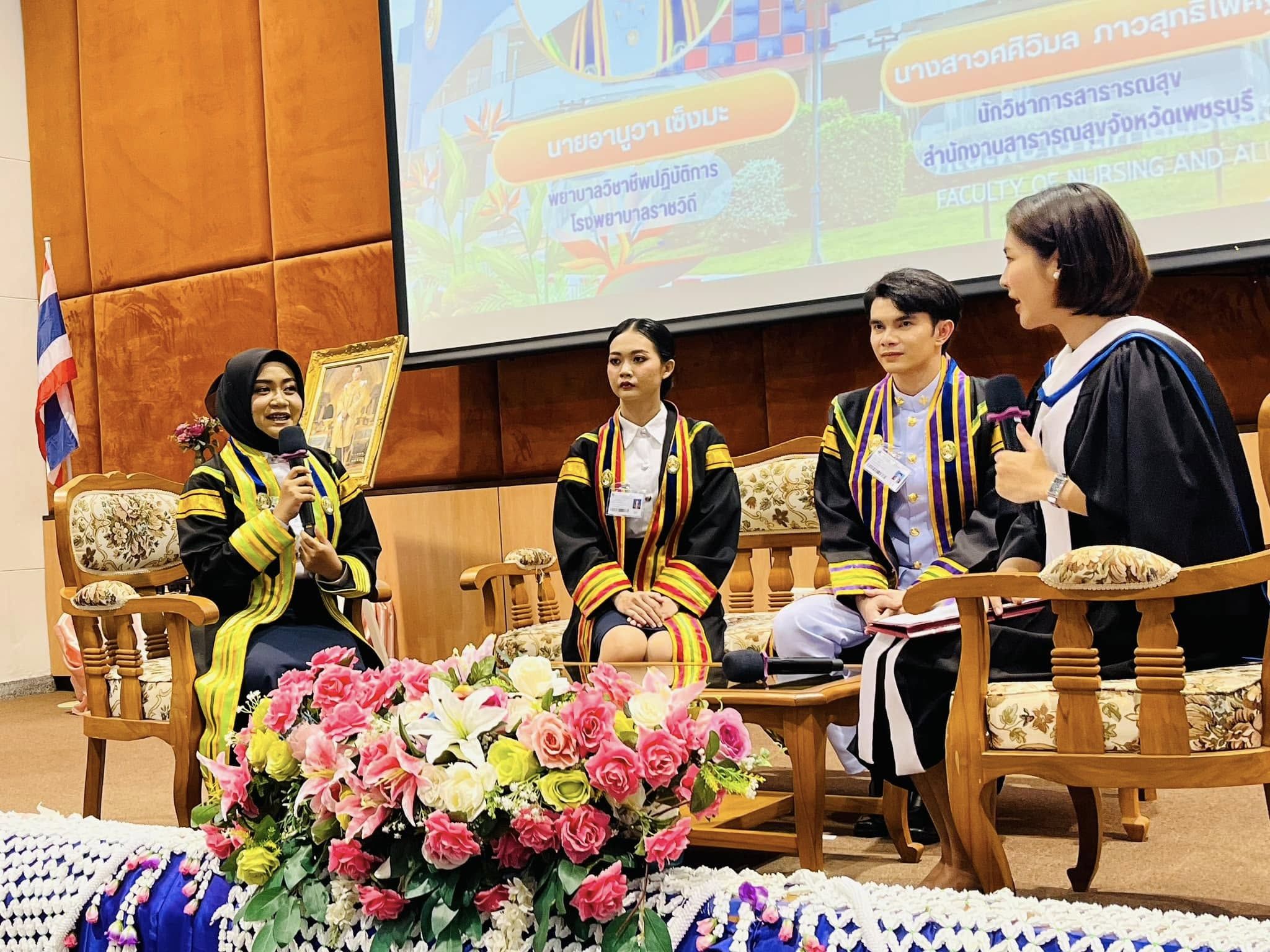 🔸 โดยได้รับเกียรติจาก ผู้ช่วยศาสตราจารย์ เรือเอกหญิง ดร.สุพัตรา นุตรักษ์ คณบดีคณะพยาบาลศาสตร์และวิทยาการสุขภาพ เป็นประธานเปิดกิจกรรมและกล่าวให้โอวาท อาจารย์ ดร.นงลักษณ์ กลิ่นพุดตาล ผู้ช่วยคณบดีฝ่ายกิจการและพัฒนานักศึกษา เป็นผู้กล่าวรายงานโดยมีบัณฑิตผู้สำเร็จการศึกษาปีการศึกษา 2565 และนักศึกษาคณะพยาบาลศาสตร์และวิทยาการสุขภาพเข้าร่วมกิจกรรม