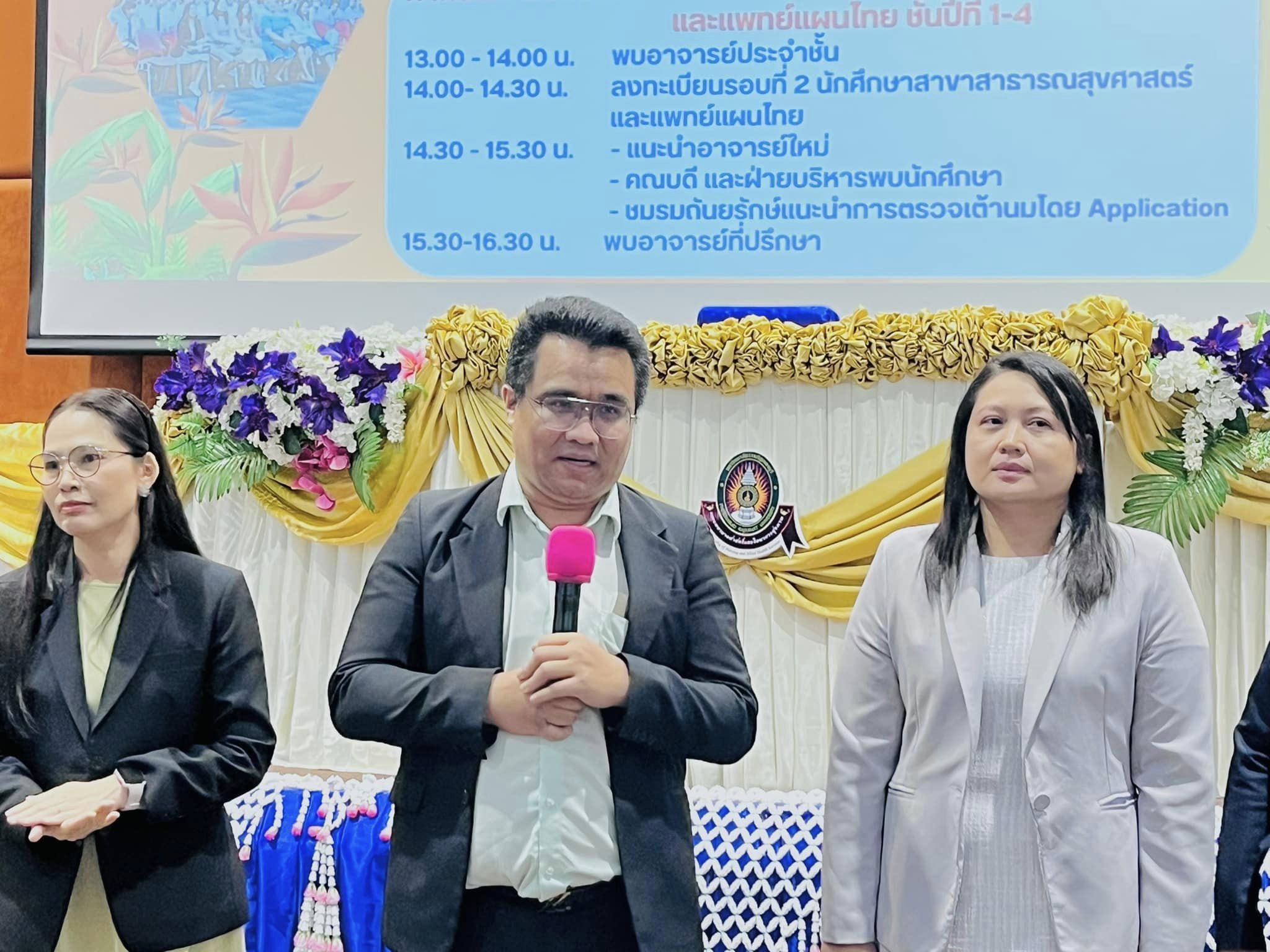 🔸โดยได้รับเกียรติจาก ผู้ช่วยศาสตราจารย์ เรือเอกหญิง ดร.สุพัตรา นุตรักษ์ คณบดีคณะพยาบาลศาสตร์และวิทยาการสุขภาพ เป็นประธานเปิดกิจกรรมและให้โอวาทกับนักศึกษา คณะผู้บริหาร คณาจารย์ และนักศึกษาคณะพยาบาลฯ 3 สาขา ได้แก่ สาขาพยาบาลศาสตร์ สาขาสาธารณสุขศาสตร์ สาขาการแพทย์แผนไทย เข้าร่วมกิจกรรม