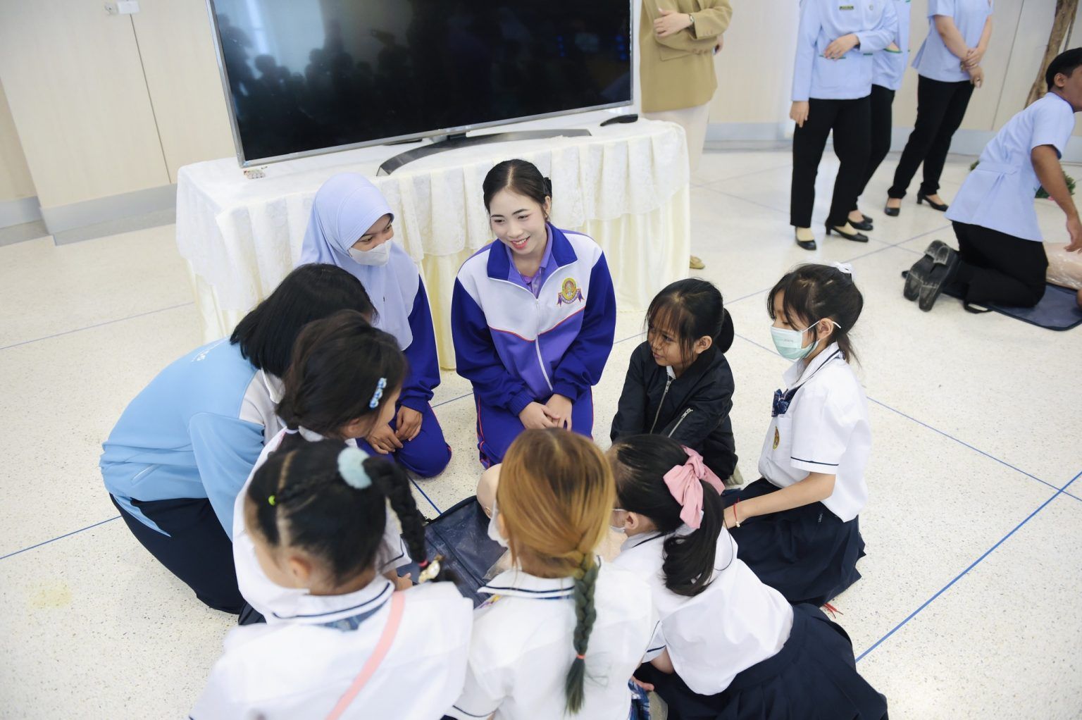 ผู้ช่วยศาสตราจารย์ เรือเอกหญิง ดร. สุพัตรา นุตรักษ์ คณบดีคณะพยาบาลศาสตร์และวิทยาการสุขภาพ เผยว่า “เนื่องในโอกาสวันเด็กแห่งชาติ ประจำปี 2568 คณะพยาบาลศาสตร์และวิทยาการสุขภาพ ได้ตระหนักถึงความสำคัญของการส่งเสริมสุขภาพและพัฒนาการของเด็ก จึงได้จัดกิจกรรมในครั้งนี้ขึ้น ภายใต้โครงการส่งเสริมสุขภาพประชาชนทุกช่วงวัยของชุมชนหนองโสนและชุมชนในจังหวัดเพชรบุรีด้วยนวัตกรรมด้านวิทยาการสุขภาพ โดยมีวัตถุประสงค์เพื่อส่งเสริมให้เด็ก ๆ ได้เรียนรู้เกี่ยวกับการดูแลสุขภาพผ่านกิจกรรมที่สร้างสรรค์และสนุกสนาน อีกทั้งยังเป็นการเปิดโอกาสให้นักศึกษาจากสาขาวิชาพยาบาลศาสตร์ สาขาวิชาสาธารณสุขศาสตร์และสาขาวิชาการแพทย์แผนไทย ได้บูรณาการความรู้และฝึกทักษะการสื่อสารกับเด็ก ภายใต้การดูแลของคณาจารย์ผู้เชี่ยวชาญ