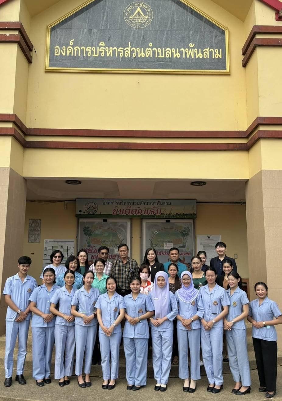 ในโอกาสนี้ คณะพยาบาลศาสตร์และวิทยาการสุขภาพ ขอขอบพระคุณ ท่านนายกฯ คณะผู้บริหารและบุคลากรขององค์การบริหารส่วนตำบลนาพันสามทุกท่าน ที่กรุณาให้ความอนุเคราะห์ ศูนย์พัฒนาเด็กเล็กวัดนาพรม อบต.นาพันสาม เป็นแหล่งฝึกประสบการณ์วิชาชีพ ในรายวิชาปฏิบัติการพยาบาลเด็กและวัยรุ่น สำหรับนักศึกษาหลักสูตรพยาบาลศาสตรบัณฑิตชั้นปีที่ 3 เพื่อการพัฒนาสมรรถนะตามมาตรฐานของวิชาชีพต่อไป
