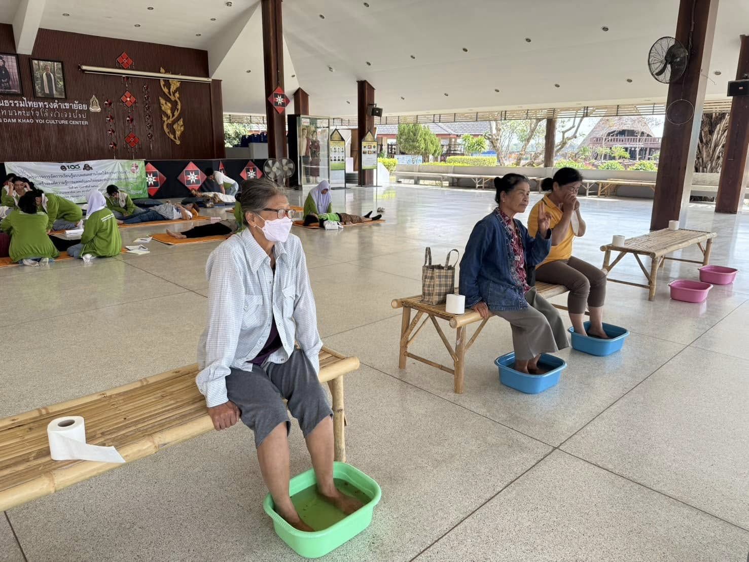ผู้ช่วยศาสตราจารย์ ดร.กิติศักดิ์ รุจิกาญจนรัตน์ ผู้ช่วยคณบดีฝ่ายบริการวิชาการและทำนุบำรุงศิลปวัฒนธรรม นำนักศึกษาสาขาการแพทย์แผนไทย ชั้นปีที่ 3 ดำเนินกิจกรรมการซักประวัติ ตรวจร่างกาย การนวดรักษา การให้คำแนะนำทางการแพทย์แผนไทย การประคบสมุนไพร และการแช่เท้าด้วยสมุนไพร ให้กับประชาชนตำบลเขาย้อย จำนวน 35 คน ณ ศูนย์วัฒนธรรมไทยทรงดำเขาย้อย และได้รับเกียรติจาก คุณอรอนงค์ ศิริชัย นายกเทศมนตรีตำบลเขาย้อย และคณะผู้บริหารเทศบาลตำบลเขาย้อย ให้การต้อนรับและร่วมเข้ารับบริการ
