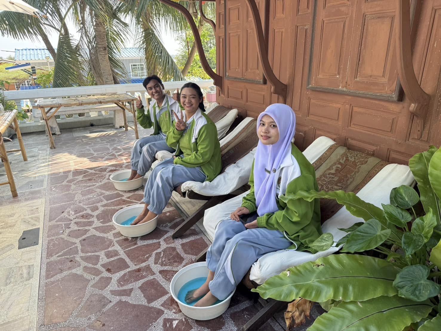 จากนั้น อาจารย์และนักศึกษา เข้ารับการเรียนรู้ด้านสปาและการท่องเที่ยวสุขภาพ ณ สปากังหันทอง อำเภอบ้านแหลม จังหวัดเพชรบุรี โดยได้เข้ารับฟังการบรรยาย สาธิต และปฏิบัติเกี่ยวกับสปา ได้แก่ สปาหน้า สปาผิวกาย สปาเท้า การผลิตเกลือแช่เท้า ผลิตภัณฑ์สปา และทักษะการเป็นผู้ประกอบการด้านสปา ซึ่งจะช่วยเสริมสร้างประสบการณ์การเรียนรู้ด้านการแพทย์แผนไทยและสปาเพื่อสุขภาพให้กับนักศึกษาต่อไป