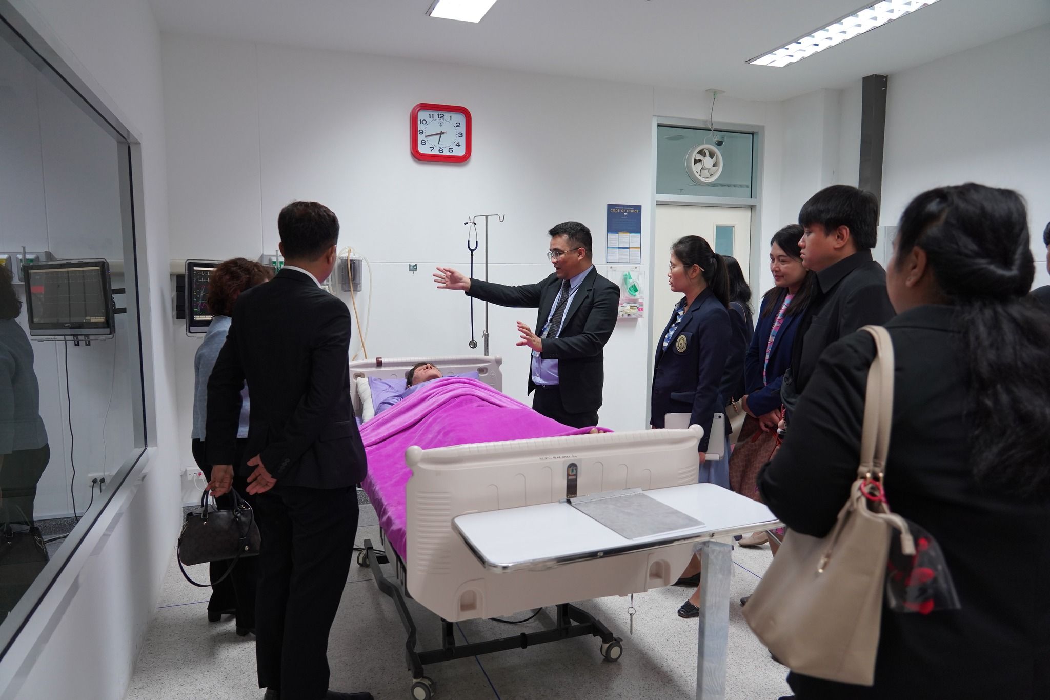 การตรวจเยี่ยมครั้งนี้มีวัตถุประสงค์เพื่อเยี่ยมชมผลการดำเนินงานและให้ข้อเสนอแนะเพื่อการปรับปรุงพัฒนาในอนาคต นอกจากนี้ยังได้เยี่ยมชม ศูนย์ SIRCOP ชั้น 6-7 และศูนย์วิทยาศาสตร์สุขภาพ (คลินิกการแพทย์แผนไทย) ซึ่งคณะตรวจเยี่ยมได้เข้ารับการสาธิตการนวดคอ บ่า ไหล่ อีกด้วย