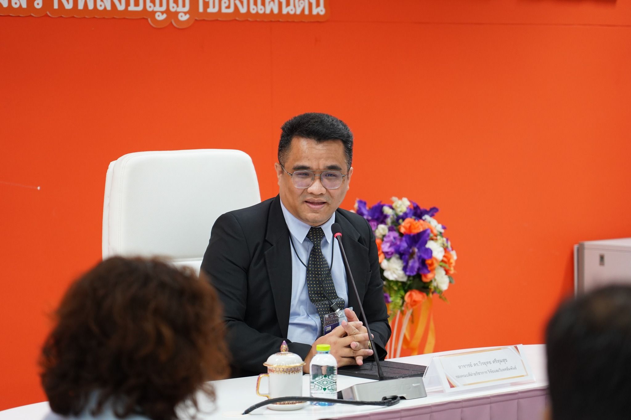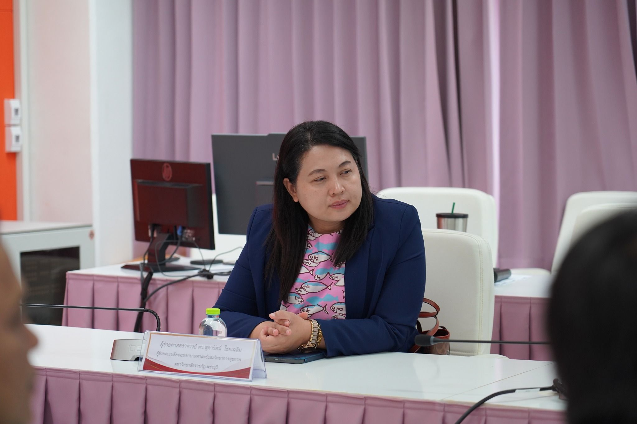 โดยผู้ช่วยศาสตราจารย์ เรือเอกหญิง ดร.สุพัตรา นุตรักษ์ คณบดีคณะพยาบาลศาสตร์และวิทยาการสุขภาพ มอบหมายให้ อาจารย์ ดร.วีรยุทธ ศรีทุมสุข รองคณบดีฝ่ายวิชาการ วิจัย และวิเทศสัมพันธ์ กล่าวต้อนรับและนำเสนอผลการดำเนินงานของ ศูนย์ SIRCOP