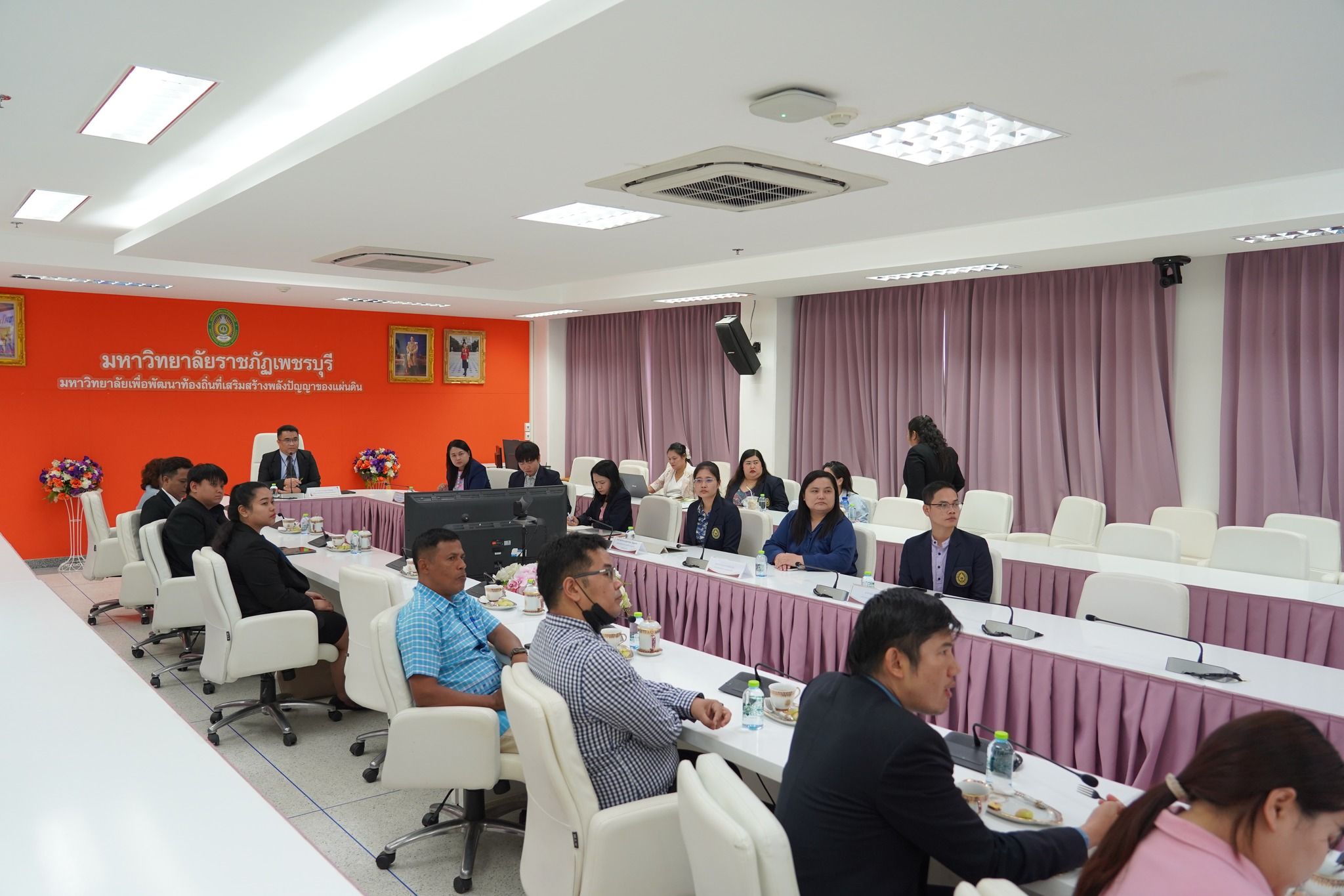 ทั้งนี้ ผู้บริหารระดับคณะได้ร่วมต้อนรับและกล่าวผลการดำเนินงานของแต่ละฝ่ายงานให้กับคณะตรวจเยี่ยมฯ ซึ่งประกอบด้วย นางสาวปิยนันท์ อินทุภูติ ผู้อำนวยการส่วนงบประมาณมหาวิทยาลัยราชภัฏและสถาบันวิทยาลัยชุมชน นายยุทธศักดิ์ ทองใหญ่ นายกิตติกร สุขเจริญ และนางสาวออมพร ถึงศีล สำนักงบประมาณ