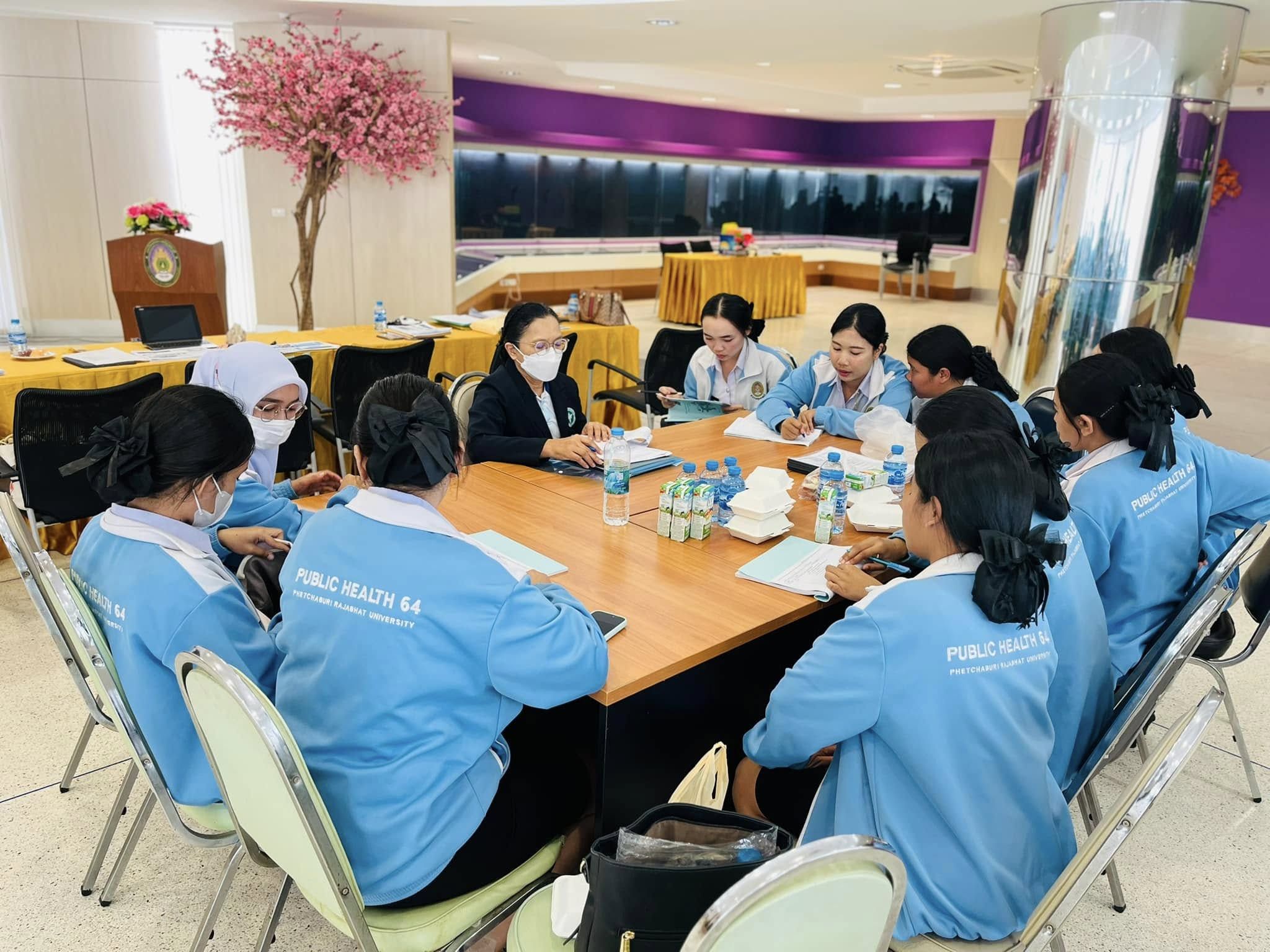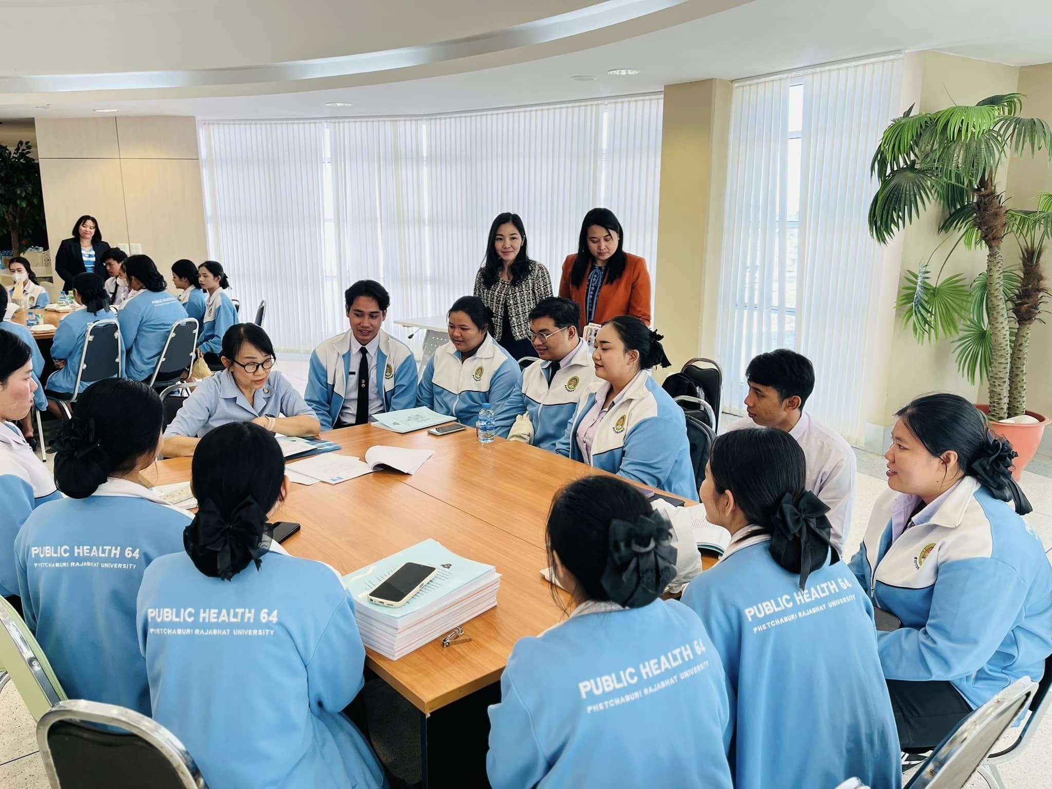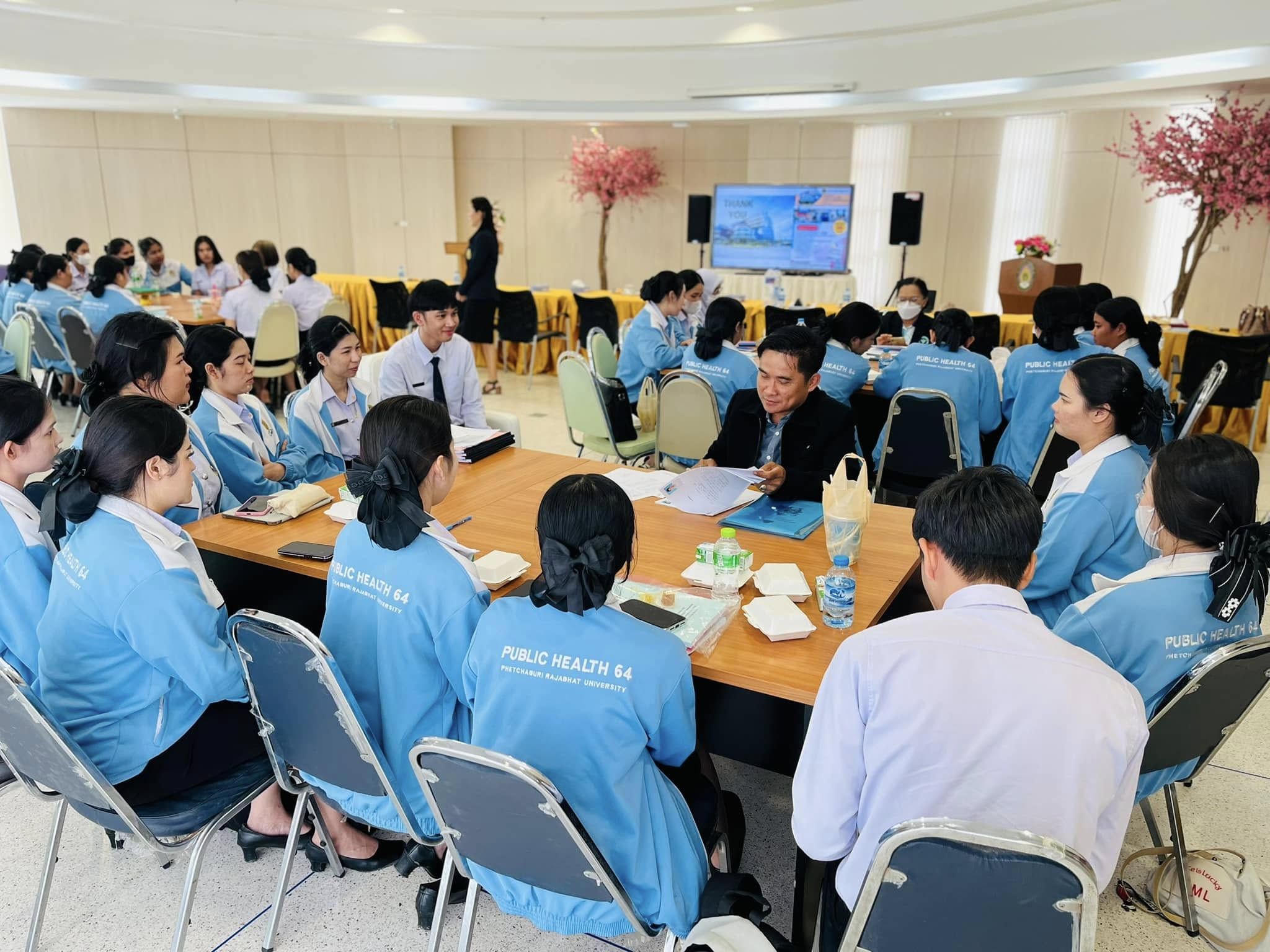 โดยมีการนำเสนอผลการฝึกประสบการณ์วิชาชีพฯและแลกเปลี่ยนเรียนรู้ ระหว่างนักศึกษาแต่ละกลุ่ม อาจารย์พี่เลี้ยงแหล่งฝึกและอาจารย์นิเทศ จากโรงพยาบาลส่งเสริมสุขภาพตำบลหาดเจ้าสำราญ โรงพยาบาลส่งเสริมสุขภาพตำบลหนองพลับ โรงพยาบาลส่งเสริมสุขภาพตำบลสมอพลือ โรงพยาบาลส่งเสริมสุขภาพตำบลต้นมะม่วง โรงพยาบาลส่งเสริมสุขภาพตำบลบ้านลาด และโรงพยาบาลส่งเสริมสุขภาพตำบลไร่ส้ม