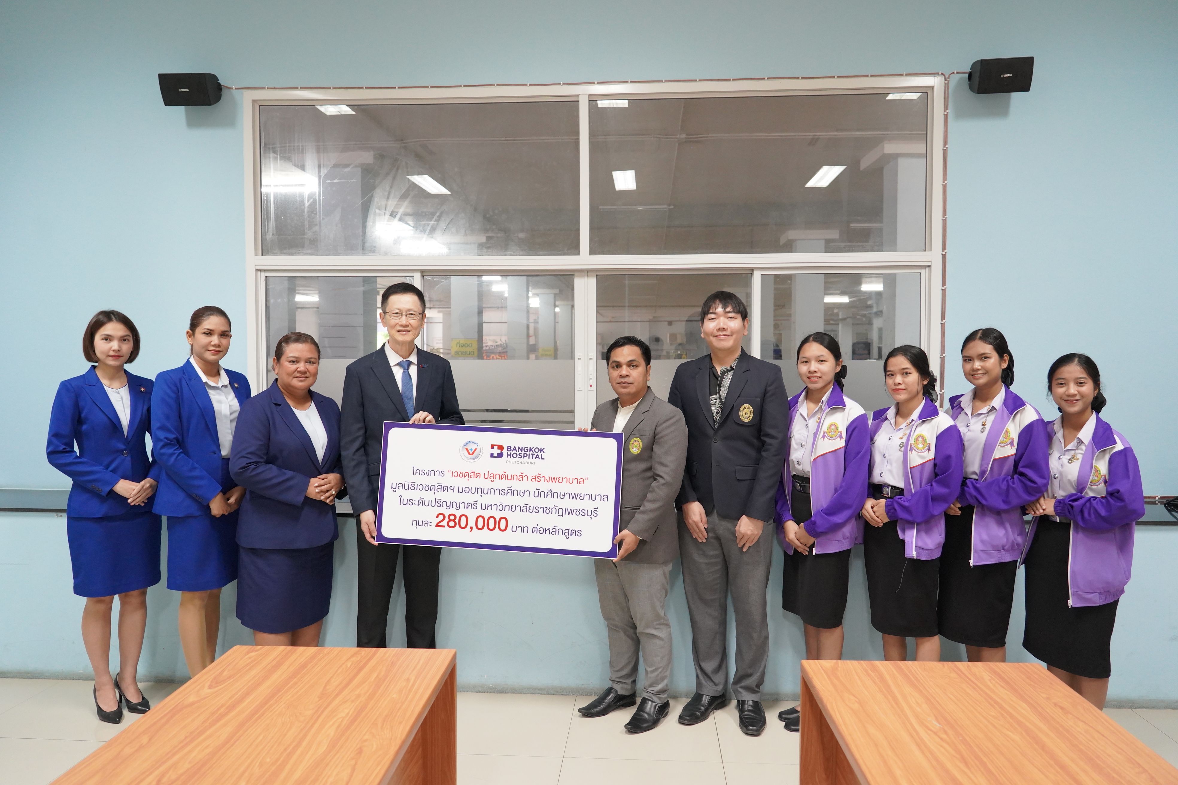 คณะพยาบาลศาสตร์และวิทยาการสุขภาพ มหาวิทยาลัยราชภัฏเพชรบุรี ให้การต้อนรับ นายแพทย์วีระศักดิ์ พงษ์พัฒนพันธุ์ ผู้อำนวยการโรงพยาบาลกรุงเทพหัวหิน และคณะ ในโอกาสเดินทางมามอบทุนการศึกษาให้แก่นักศึกษาหลักสูตรพยาบาลศาสตรบัณฑิต ชั้นปีที่ 3 ภายใต้โครงการ “มูลนิธิเวชดุสิตฯ ปลูกต้นกล้า สร้างพยาบาล”