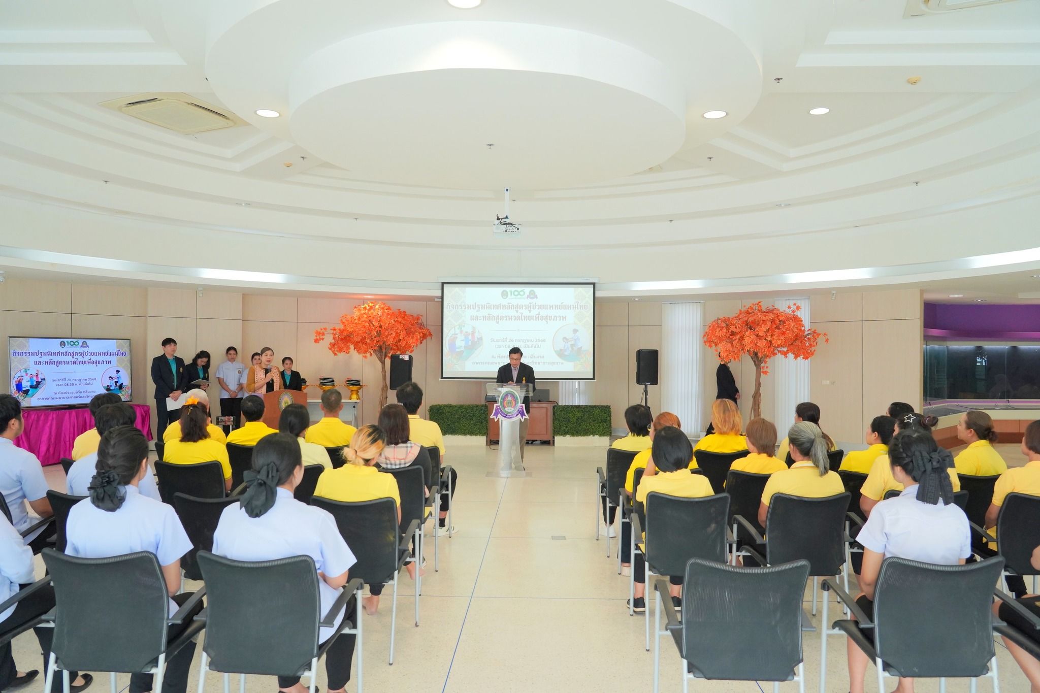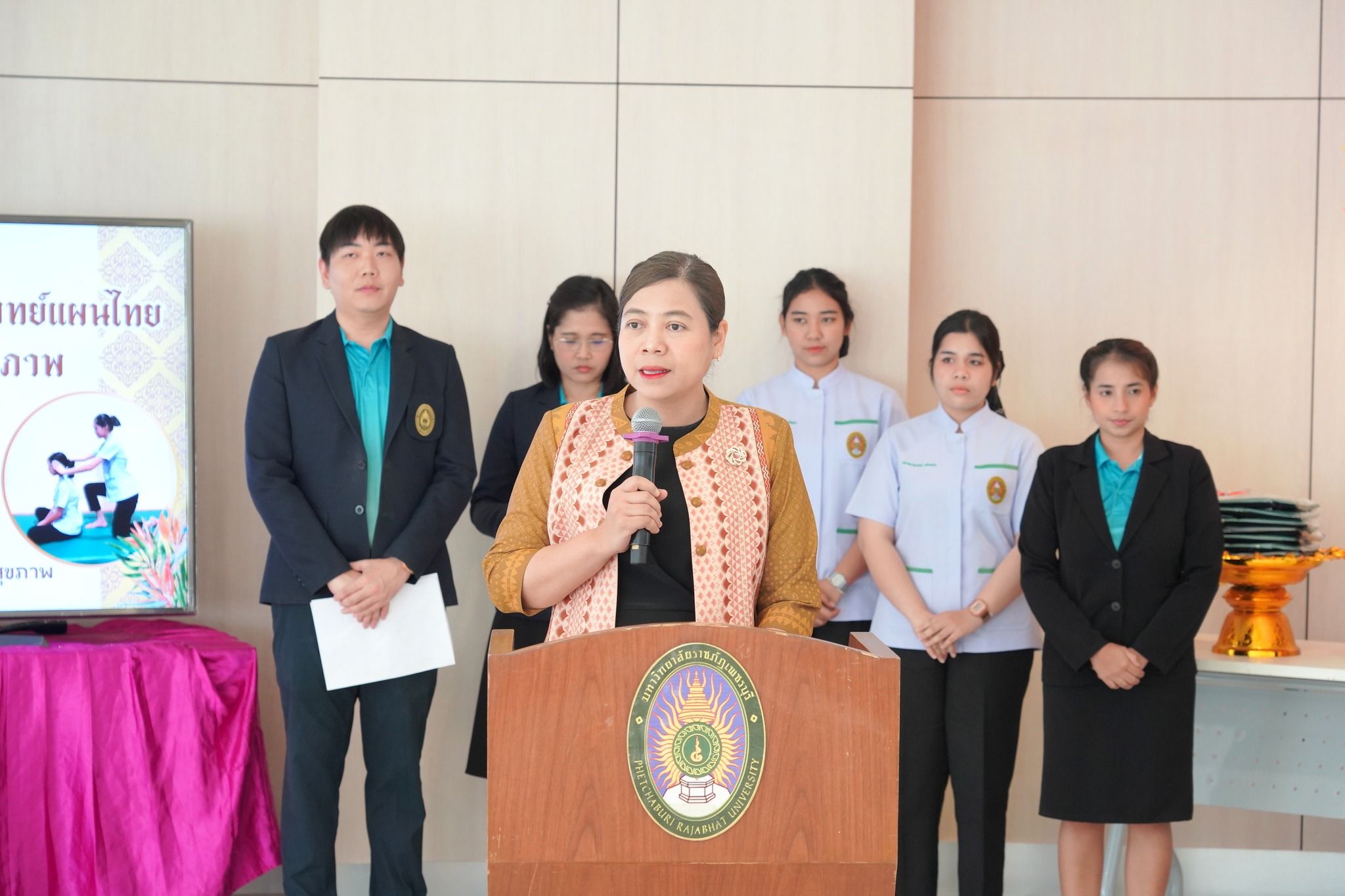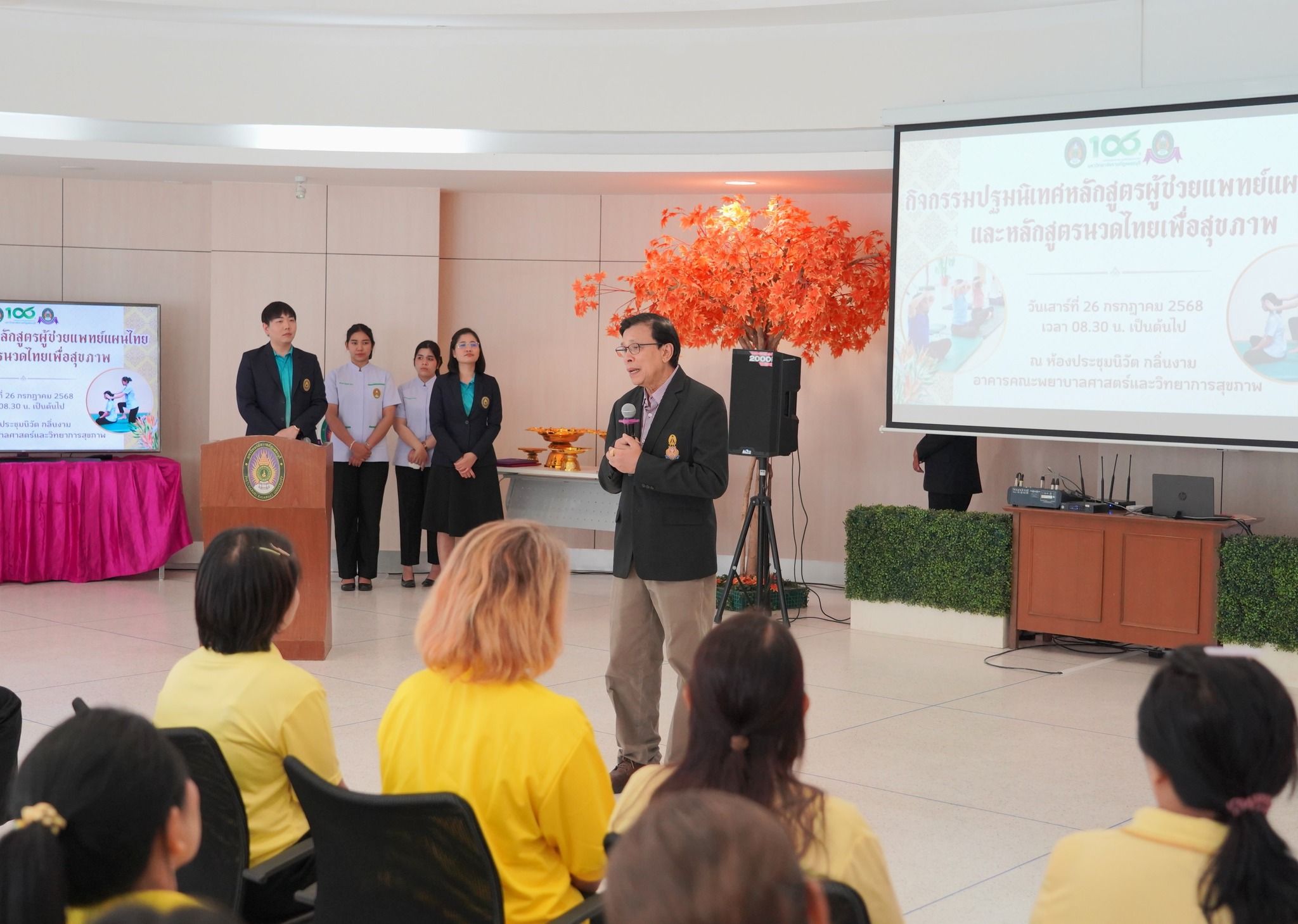 โดยได้รับเกียรติจาก ผู้ช่วยศาสตราจารย์ ดร.เสนาะ กลิ่นงาม อธิการบดีมหาวิทยาลัยราชภัฏเพชรบุรี เป็นประธานในพิธีเปิดกิจกรรม และ ผู้ช่วยศาสตราจารย์ เรือเอกหญิง ดร.สุพัตรา นุตรักษ์ คณบดีคณะพยาบาลศาสตร์และวิทยาการสุขภาพ เป็นผู้กล่าวรายงาน โดยมีผู้เข้าร่วมกิจกรรมทั้งสิ้น 70 คน ประกอบด้วยผู้บริหาร คณาจารย์ ผู้เข้ารับการอบรม และนักศึกษาคณะพยาบาลศาสตร์และวิทยาการสุขภาพ ทั้ง 3 สาขาวิชา