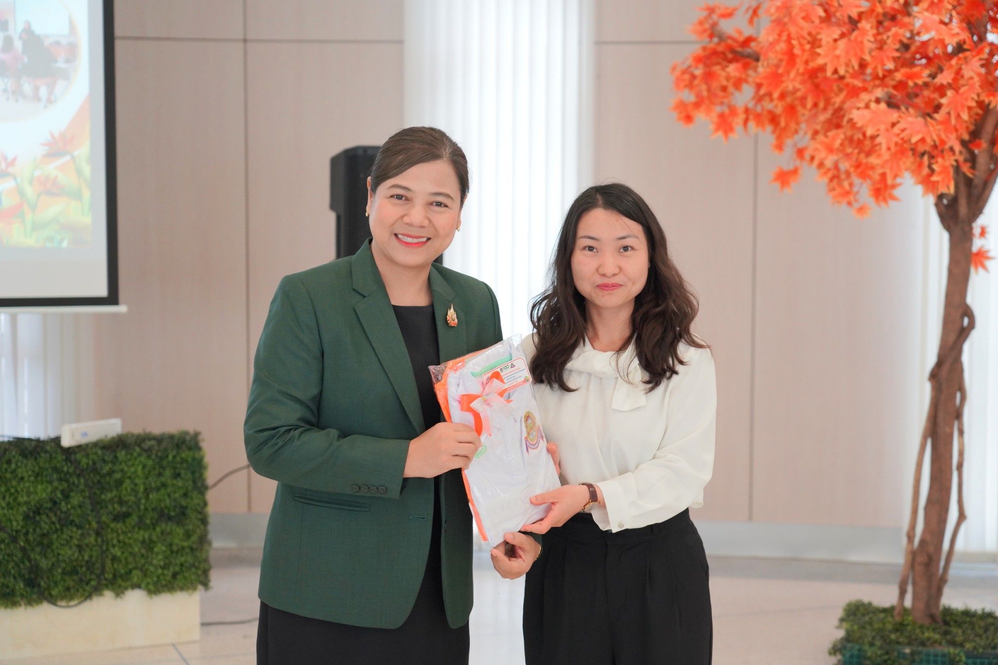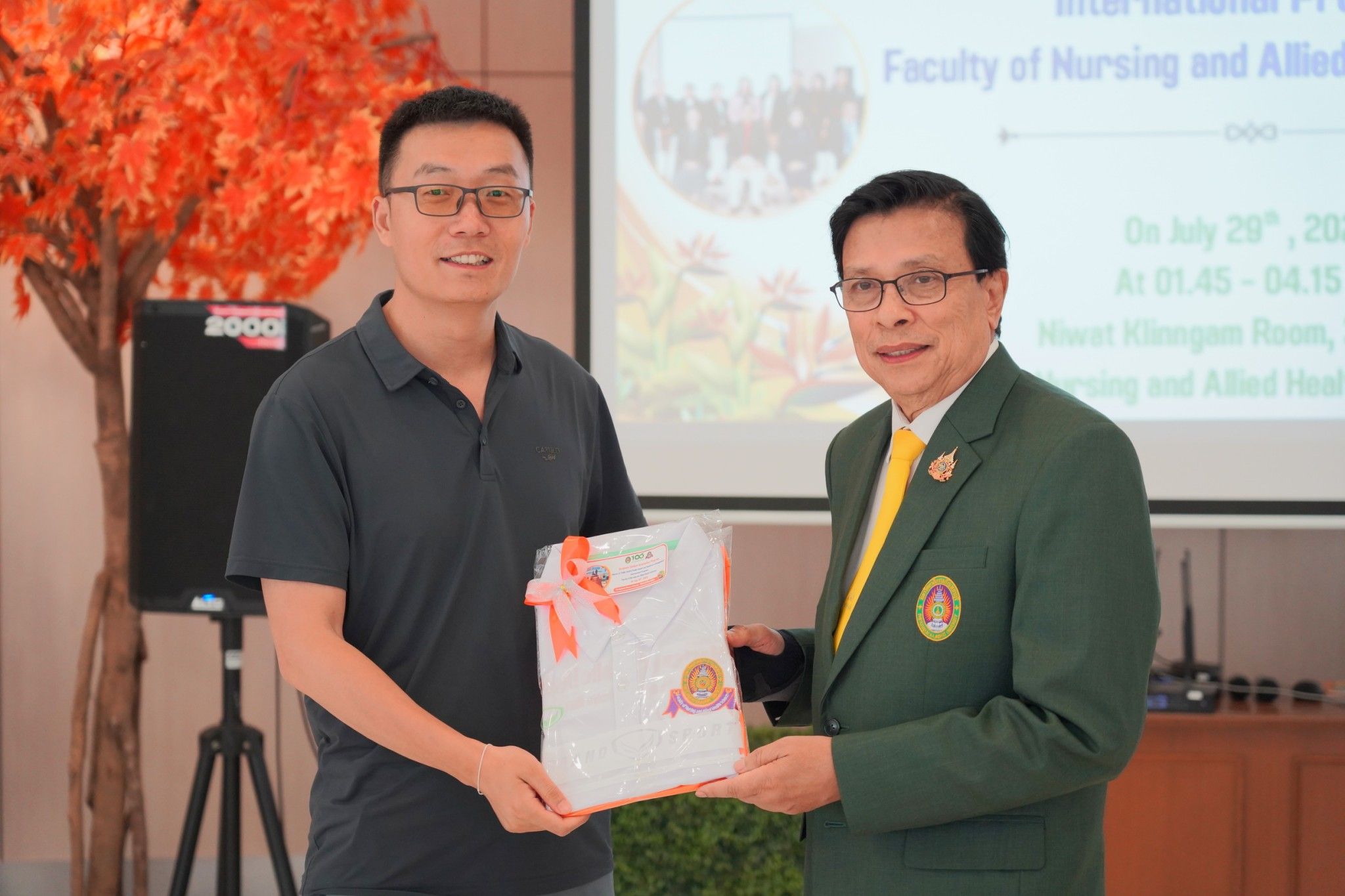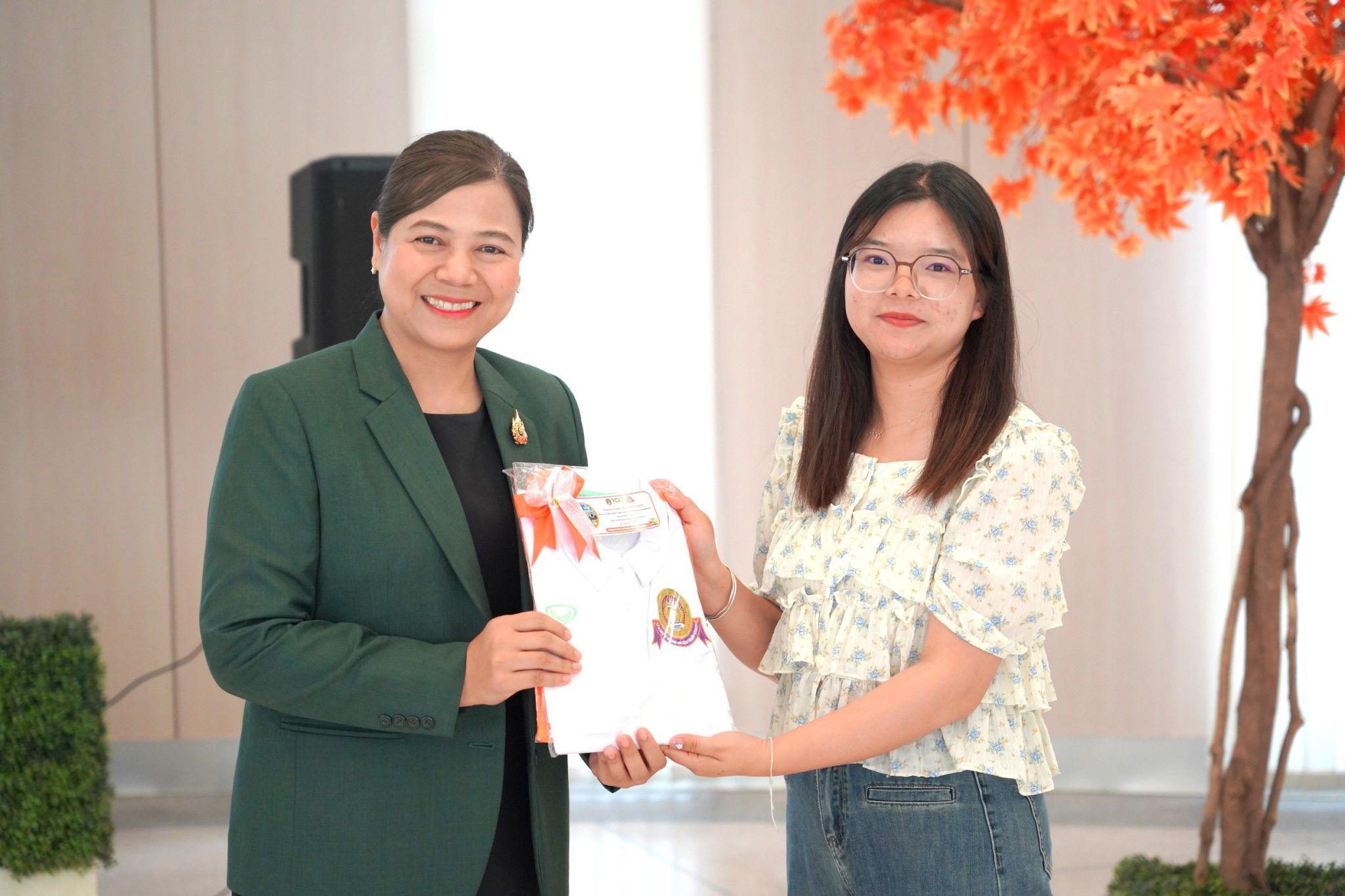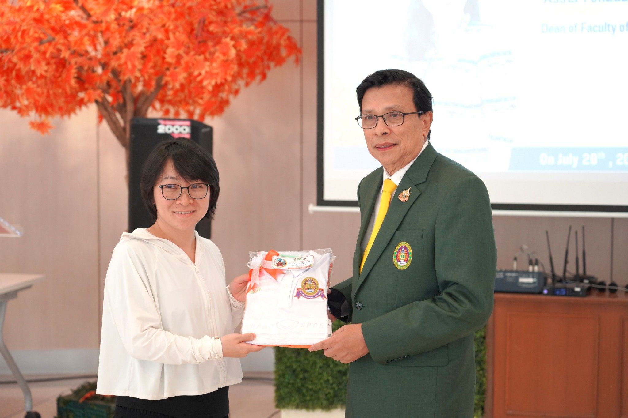 ในโอกาสนี้ท่านอธิการบดีและท่านคณบดีให้เกียรติมอบเสื้อที่ระลึกแก่นักศึกษาใหม่ที่เข้าร่วมกิจกรรมปฐมนิเทศในครั้งนี้
