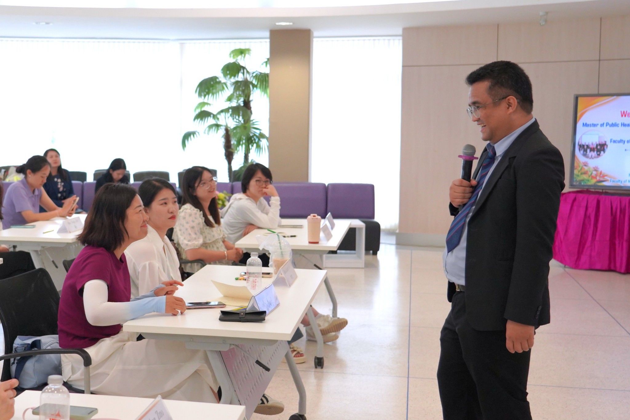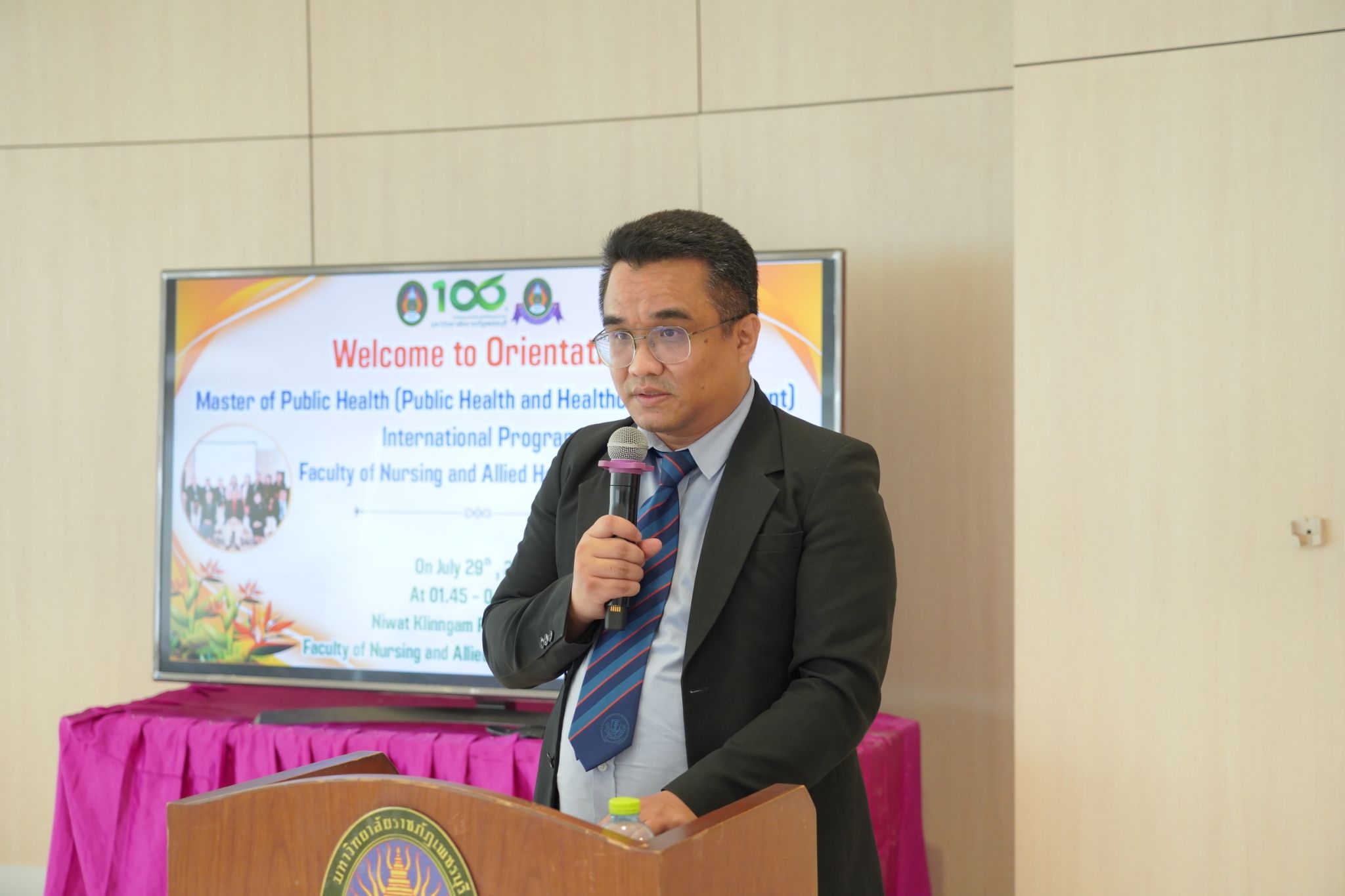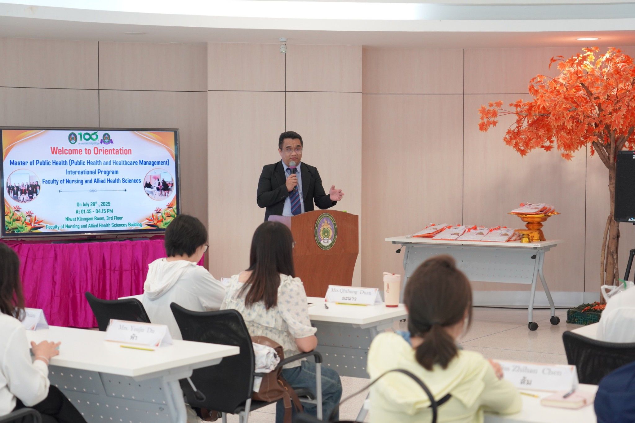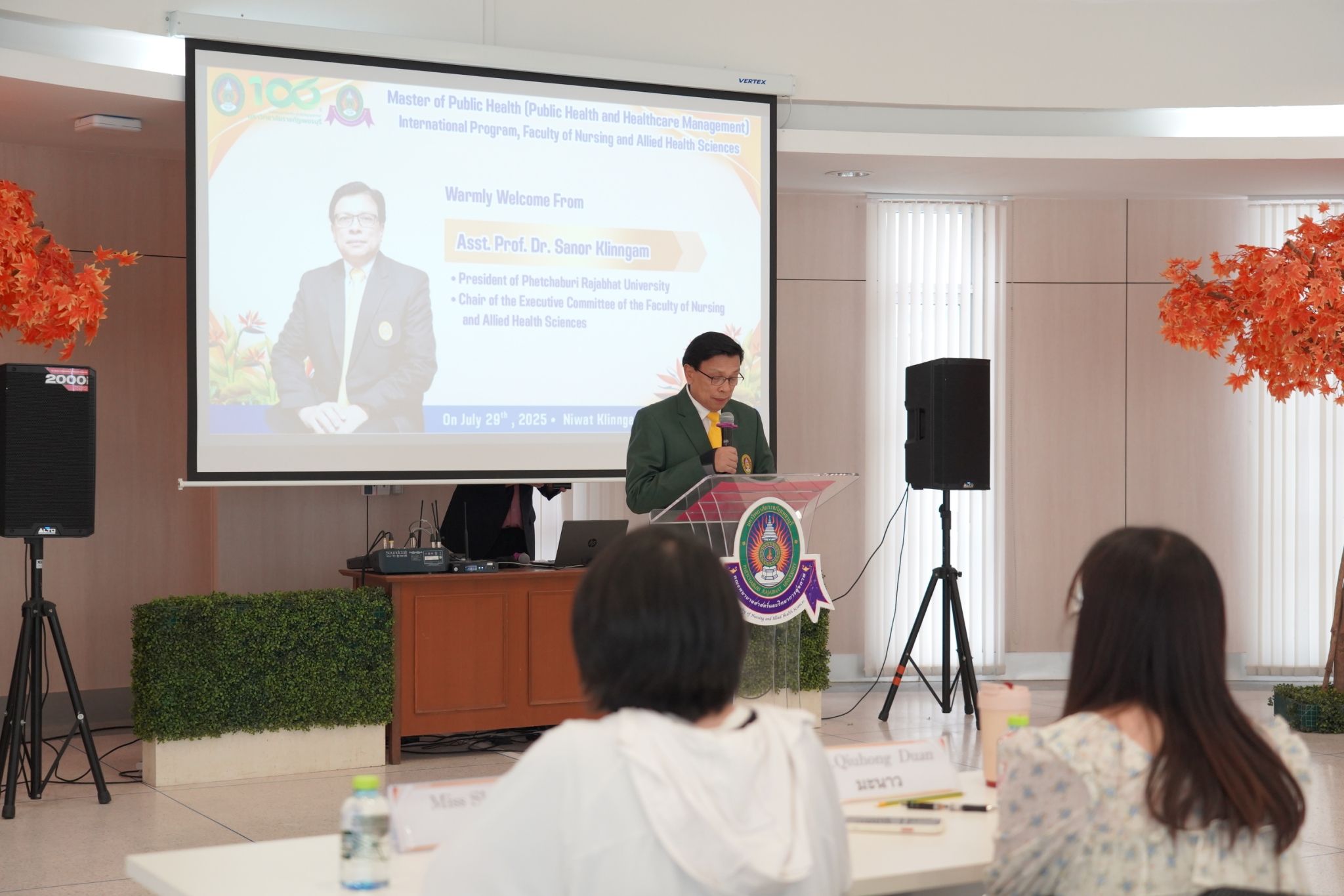 The event was honored by Asst. Prof. Dr. Sanor Klinngam, President of Phetchaburi Rajabhat University, who delivered a welcome address to the new students of the Master of Public Health Program in Public Health and Healthcare Management (International Program), New Curriculum 2024.