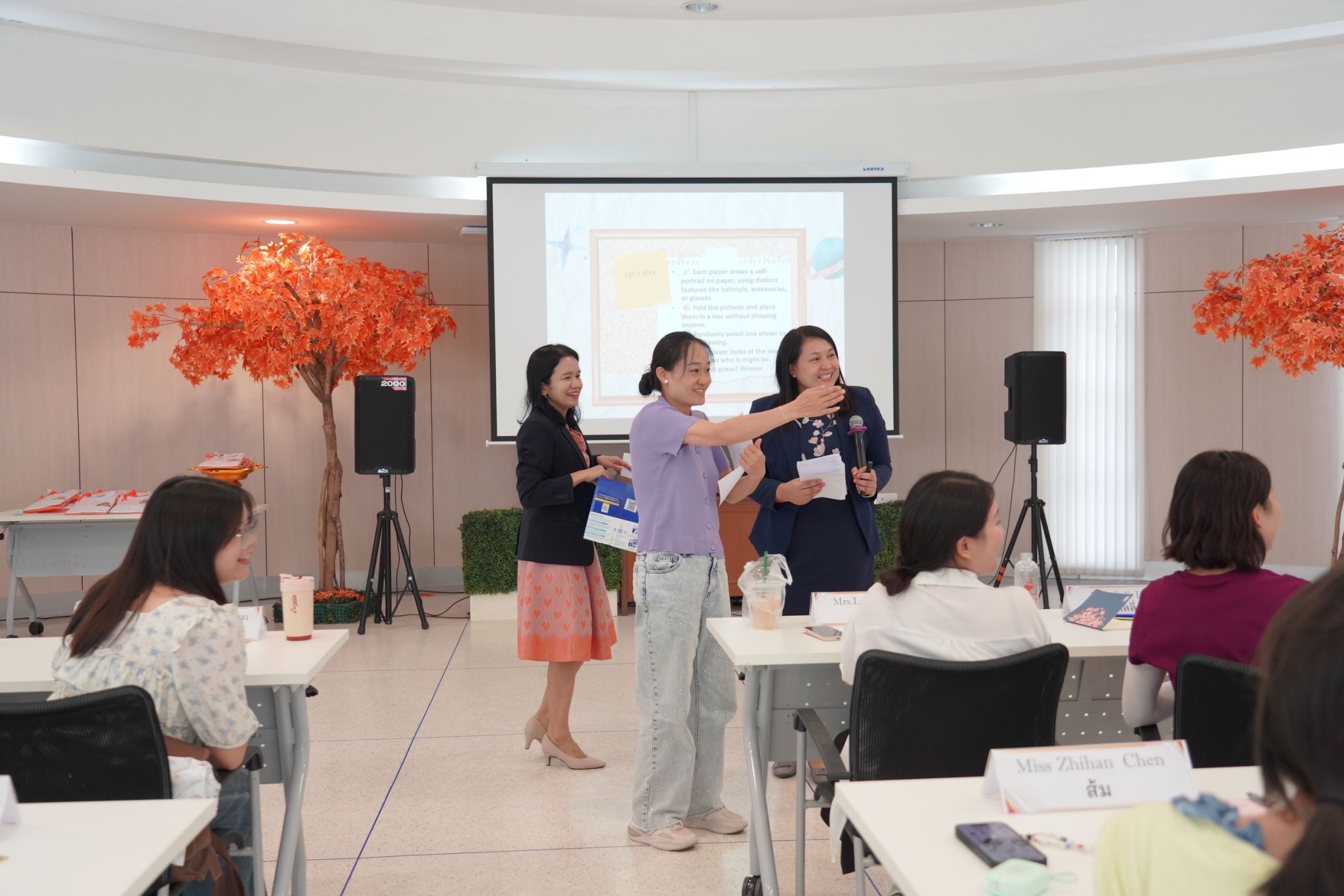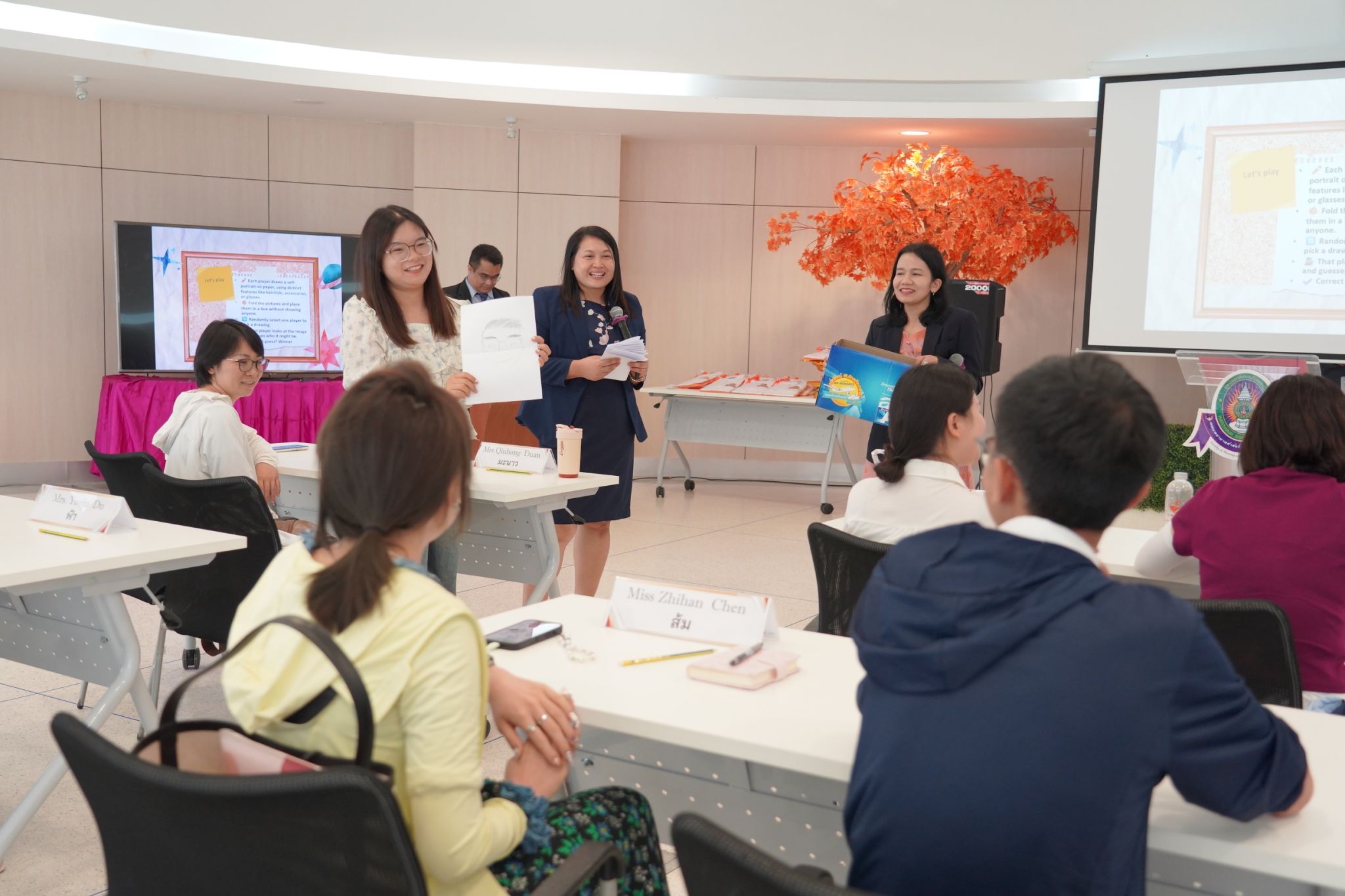 Ice-breaking activities led by Asst. Prof. Dr. Sudarat Chaichalerm, Associate Dean for Educational Quality Assurance and Enhancement of Quality of Life in Allied Health Sciences, and Dr. Nonglak Klinputtan, Assistant Dean for Student Affairs and Development