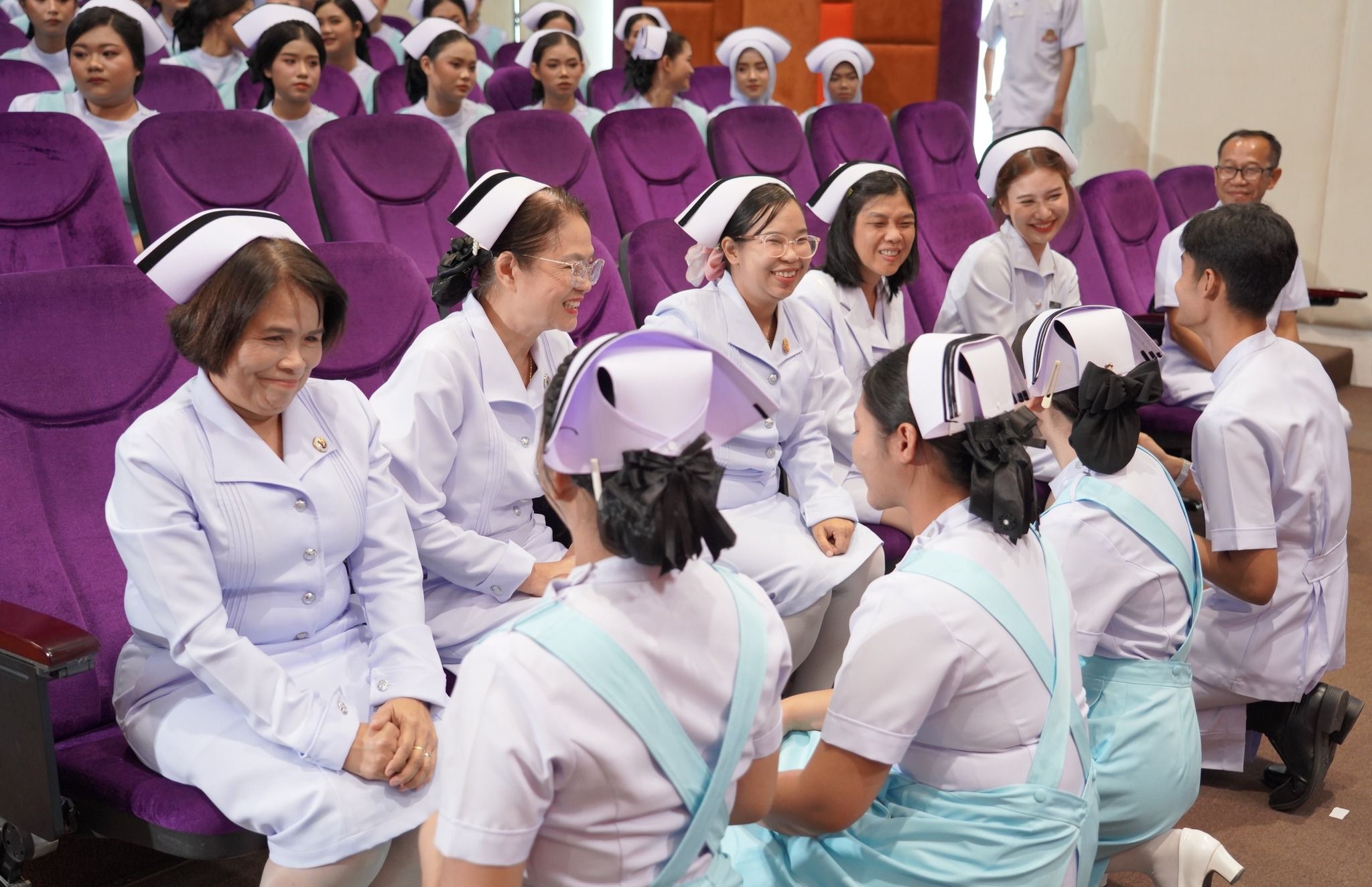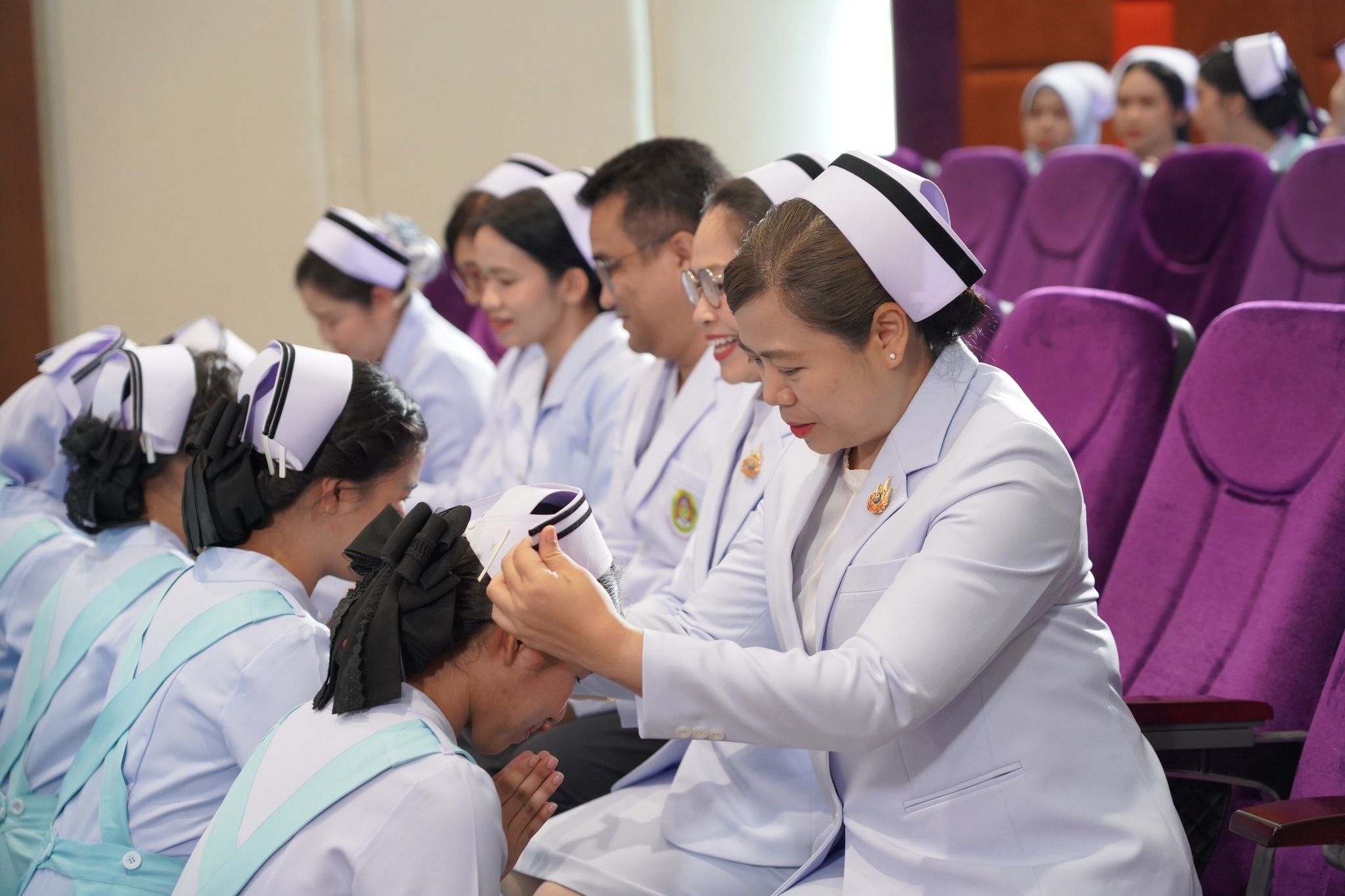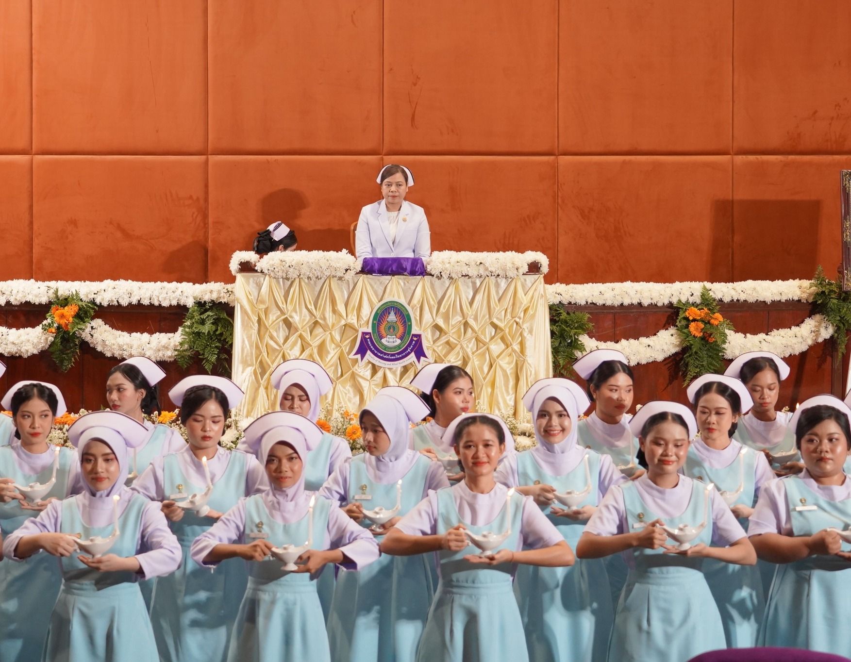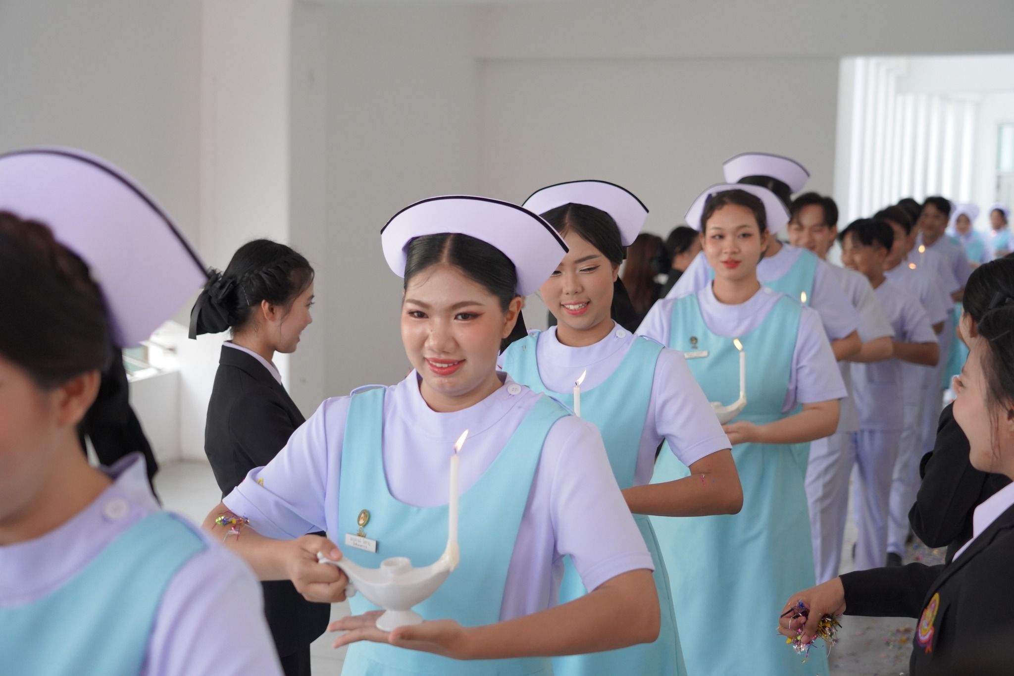 คณะพยาบาลศาสตร์และวิทยาการสุขภาพ จัดกิจกรรม “พิธีรับหมวก เสื้อกาวน์ ขีดเข็มเลื่อนชั้นปี และพิธีจุดแสงประทีป ประจำปีการศึกษา 2568” ให้แก่นักศึกษาทั้ง 3 สาขาวิชา ได้แก่ สาขาวิชาพยาบาลศาสตร์ สาขาวิชาสาธารณสุขศาสตร์ และสาขาวิชาการแพทย์แผนไทย
