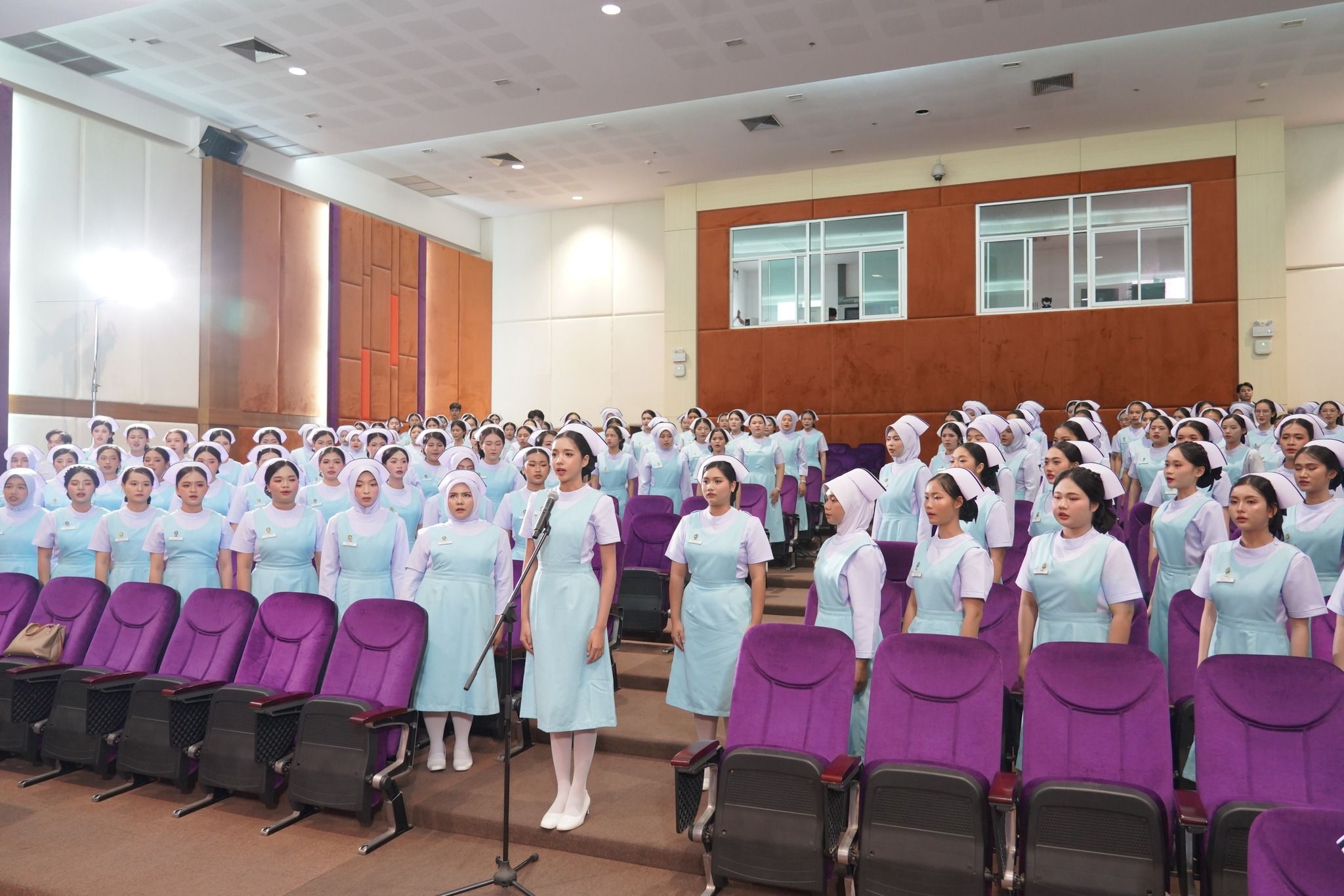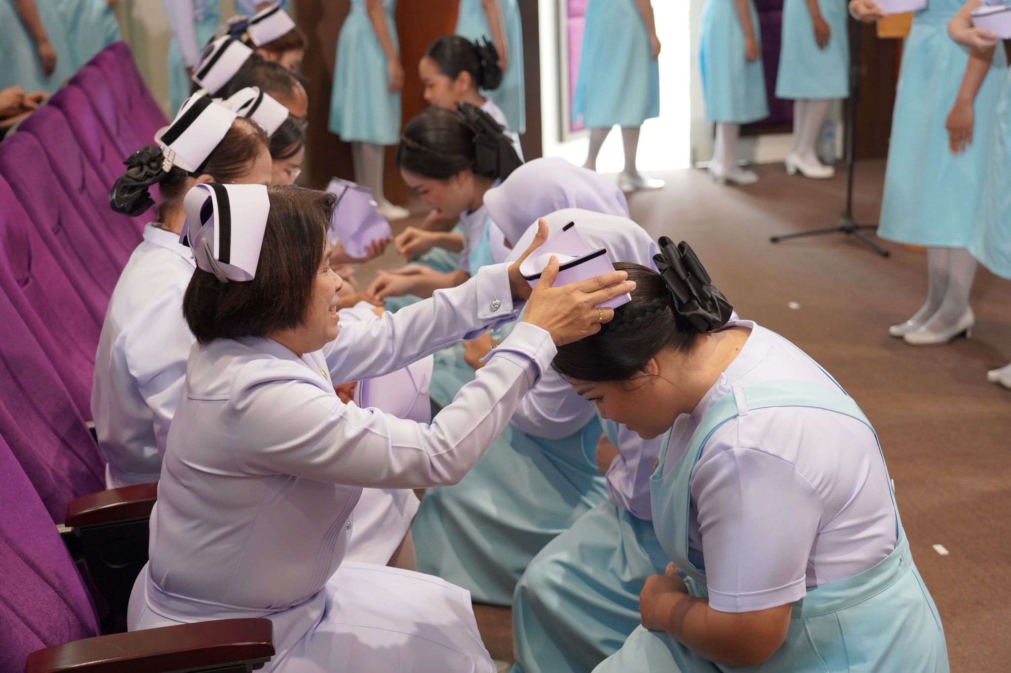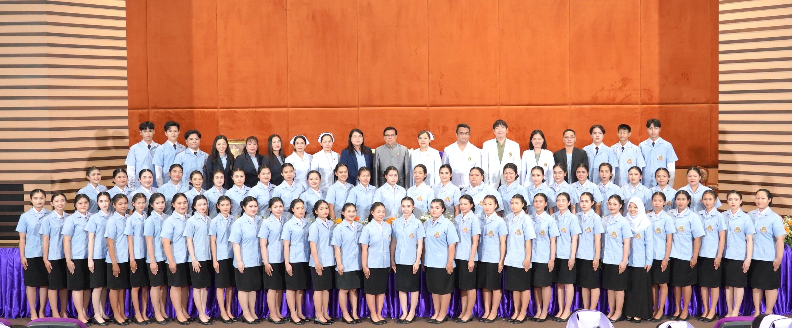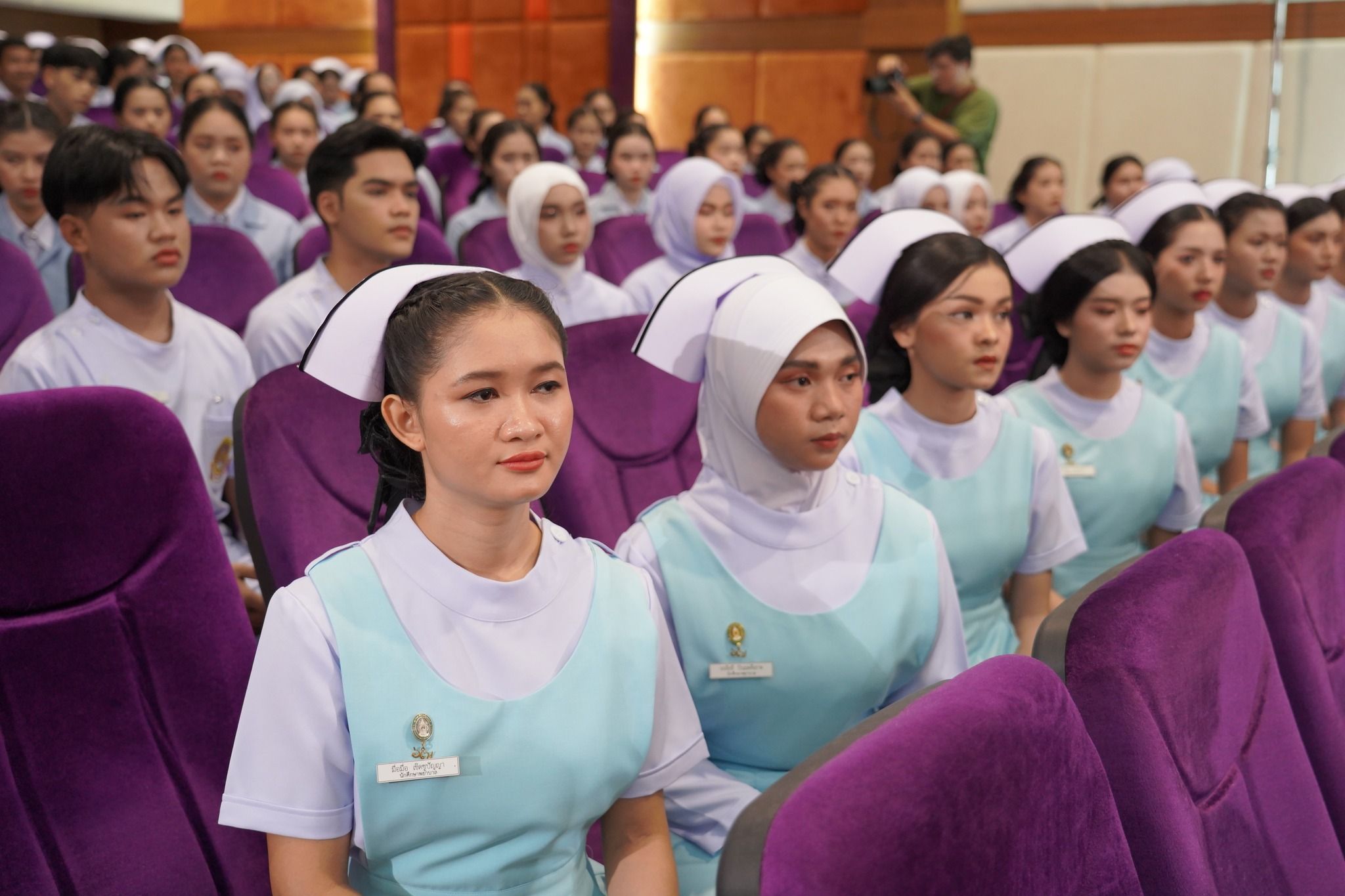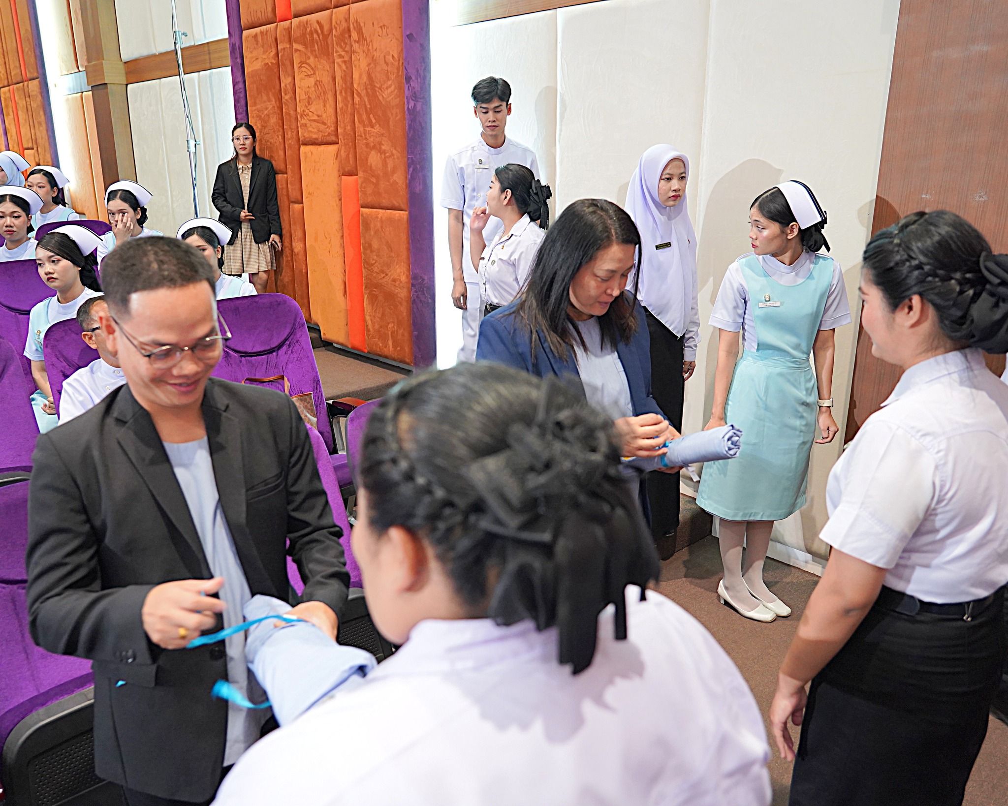คณะพยาบาลศาสตร์และวิทยาการสุขภาพ จัดกิจกรรม “พิธีรับหมวก เสื้อกาวน์ ขีดเข็มเลื่อนชั้นปี และพิธีจุดแสงประทีป ประจำปีการศึกษา 2568” ให้แก่นักศึกษาทั้ง 3 สาขาวิชา ได้แก่ สาขาวิชาพยาบาลศาสตร์ สาขาวิชาสาธารณสุขศาสตร์ และสาขาวิชาการแพทย์แผนไทย