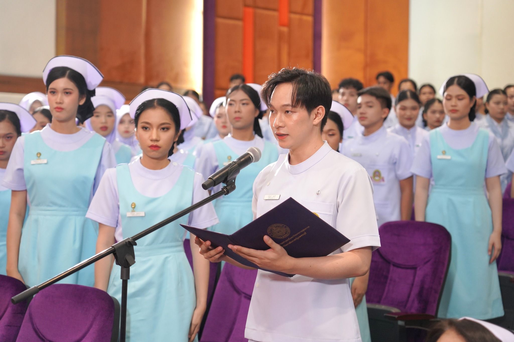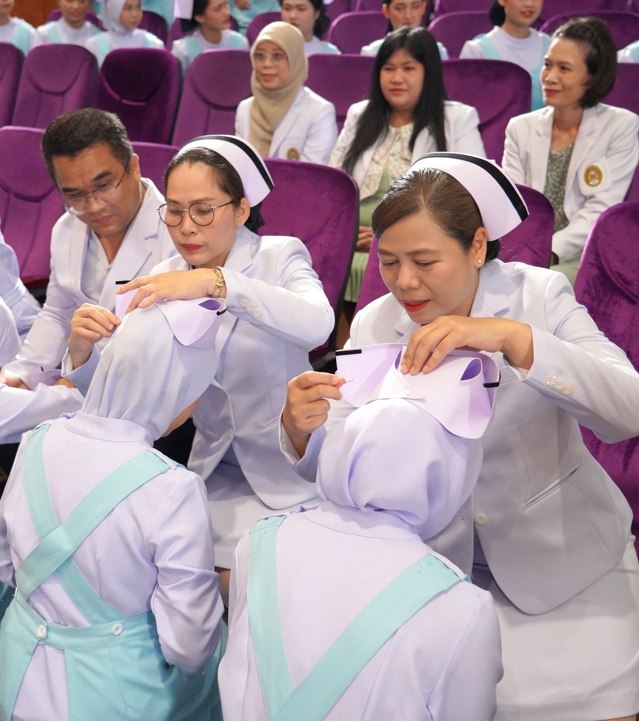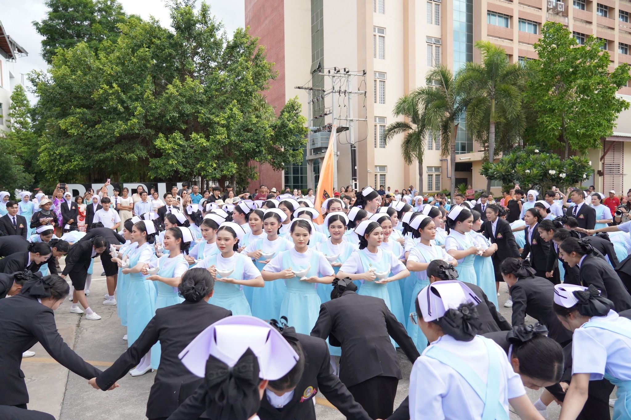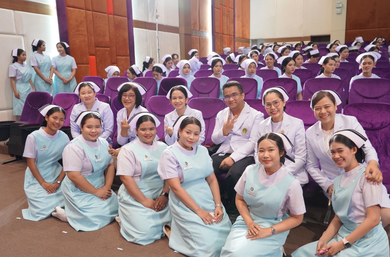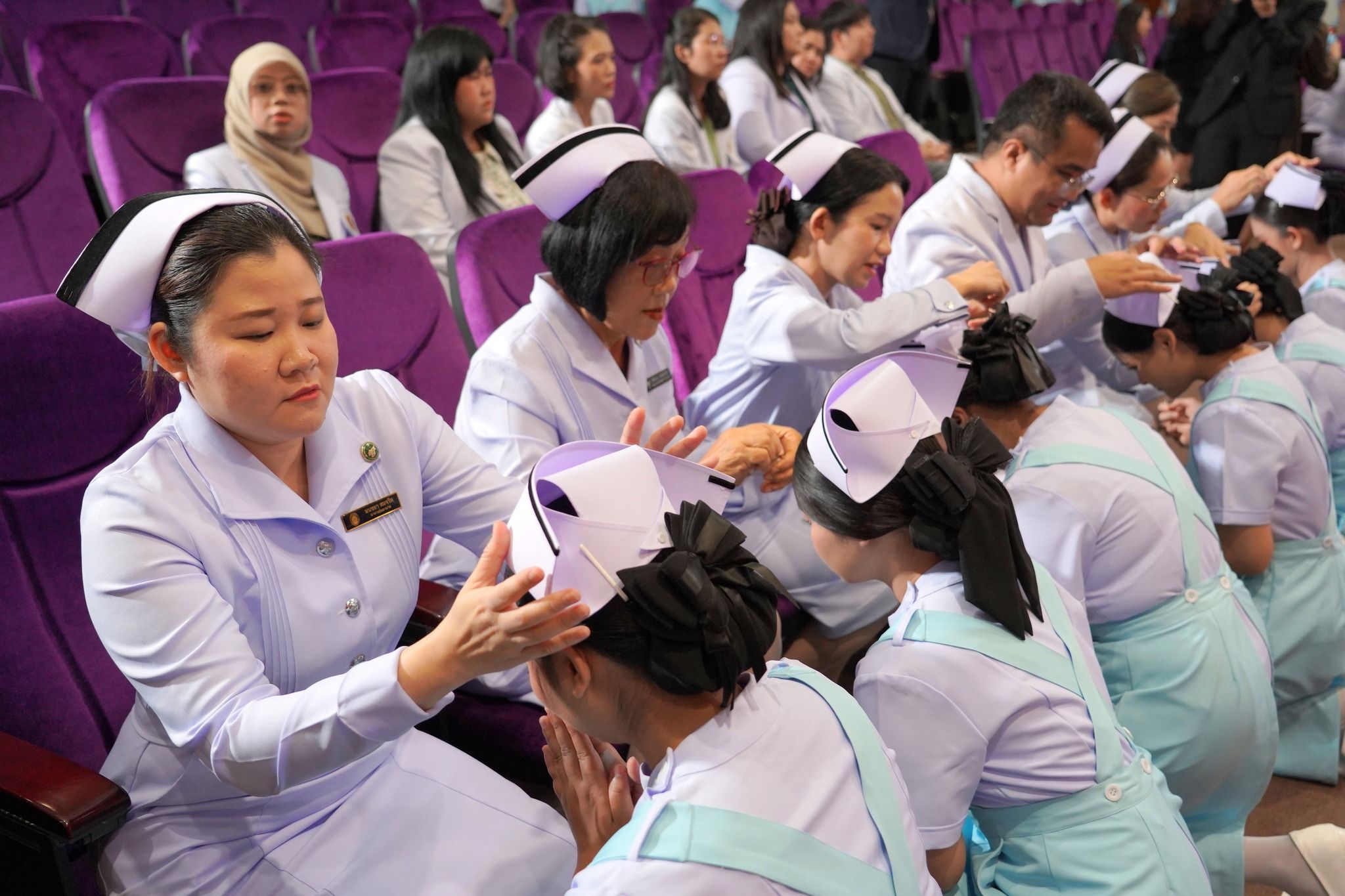 คณะพยาบาลศาสตร์และวิทยาการสุขภาพ จัดกิจกรรม “พิธีรับหมวก เสื้อกาวน์ ขีดเข็มเลื่อนชั้นปี และพิธีจุดแสงประทีป ประจำปีการศึกษา 2568” ให้แก่นักศึกษาทั้ง 3 สาขาวิชา ได้แก่ สาขาวิชาพยาบาลศาสตร์ สาขาวิชาสาธารณสุขศาสตร์ และสาขาวิชาการแพทย์แผนไทย