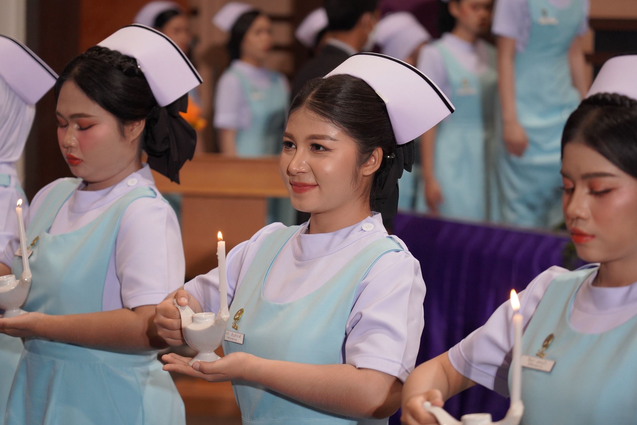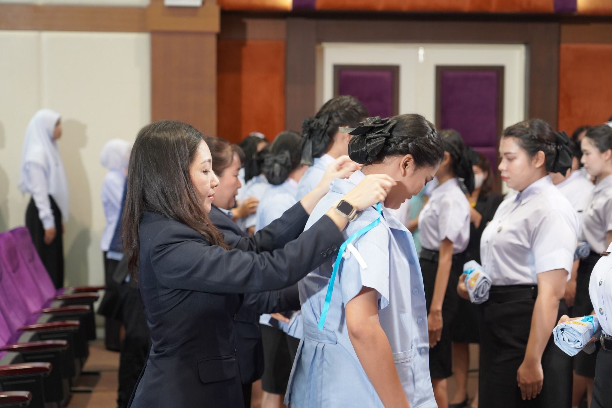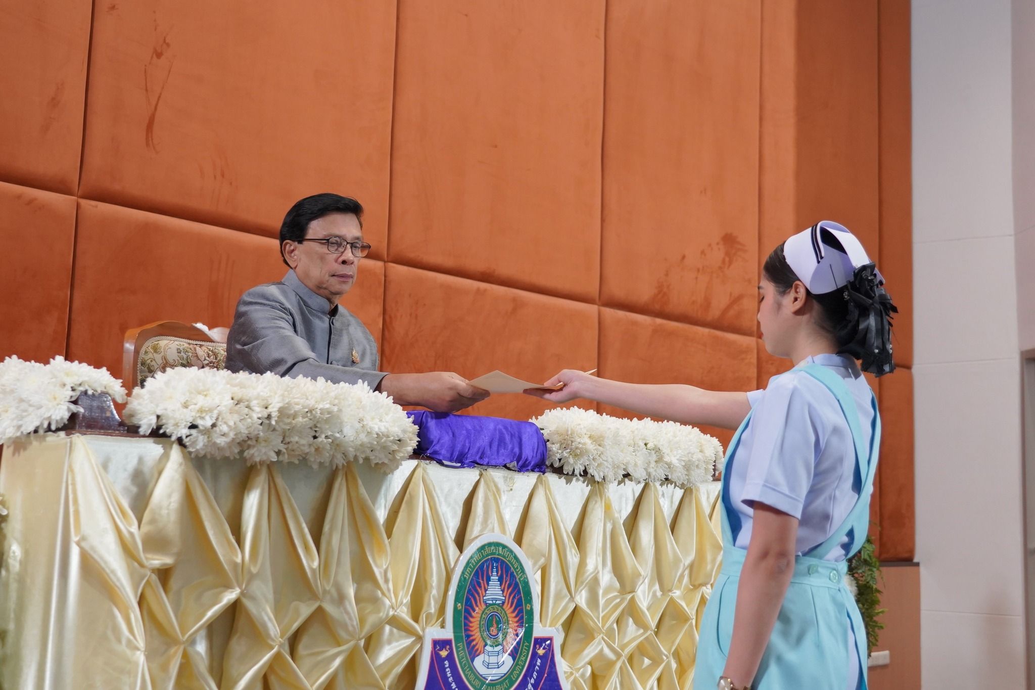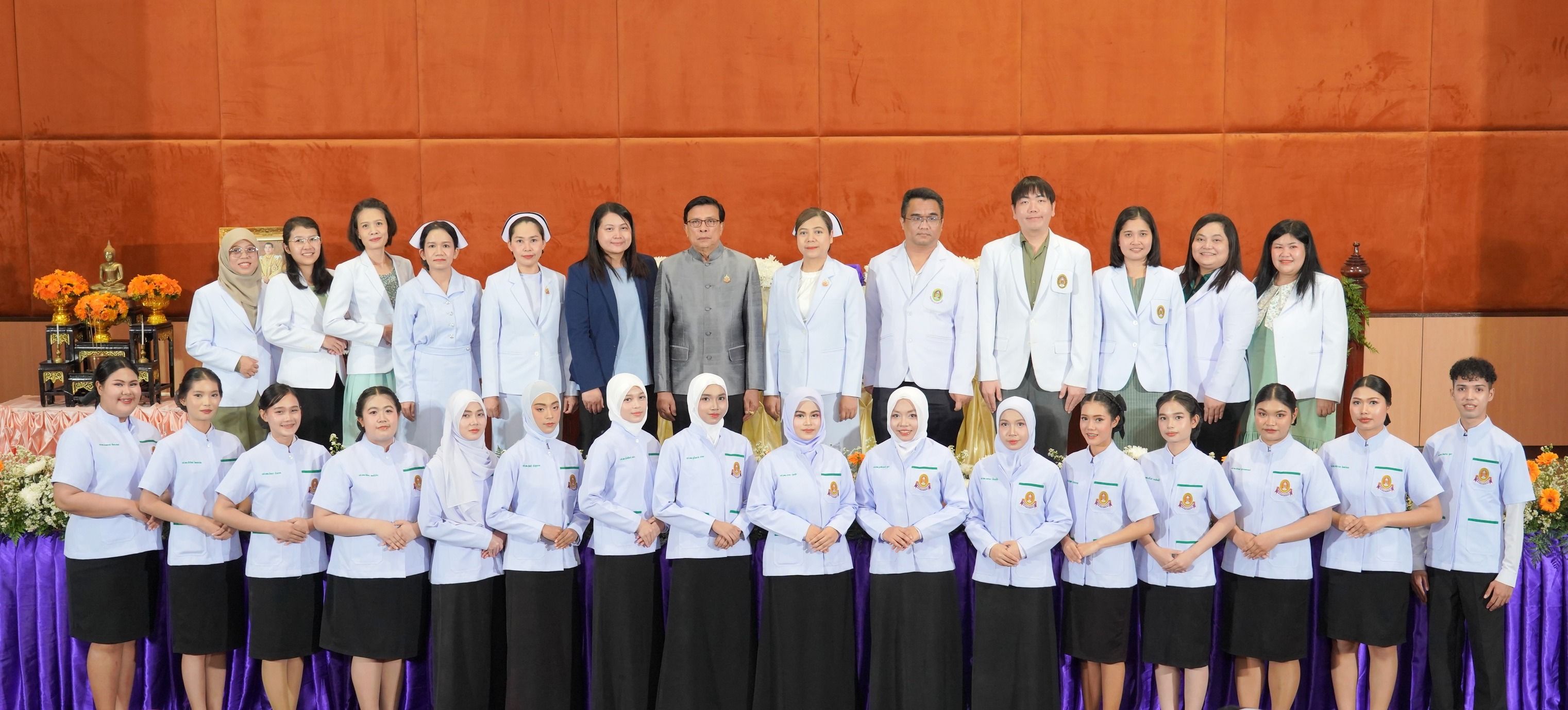 คณะพยาบาลศาสตร์และวิทยาการสุขภาพ จัดกิจกรรม “พิธีรับหมวก เสื้อกาวน์ ขีดเข็มเลื่อนชั้นปี และพิธีจุดแสงประทีป ประจำปีการศึกษา 2568” ให้แก่นักศึกษาทั้ง 3 สาขาวิชา ได้แก่ สาขาวิชาพยาบาลศาสตร์ สาขาวิชาสาธารณสุขศาสตร์ และสาขาวิชาการแพทย์แผนไทย