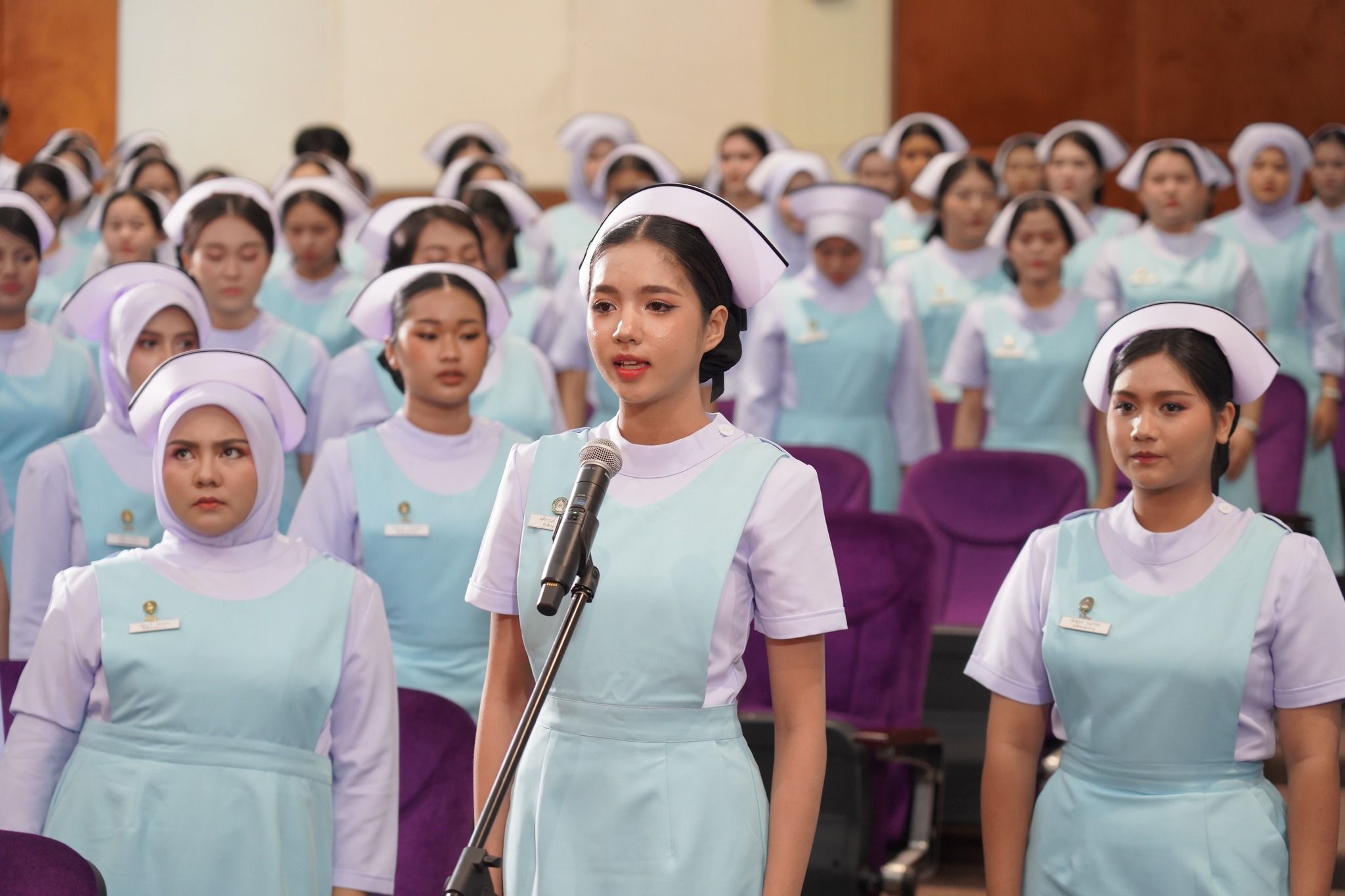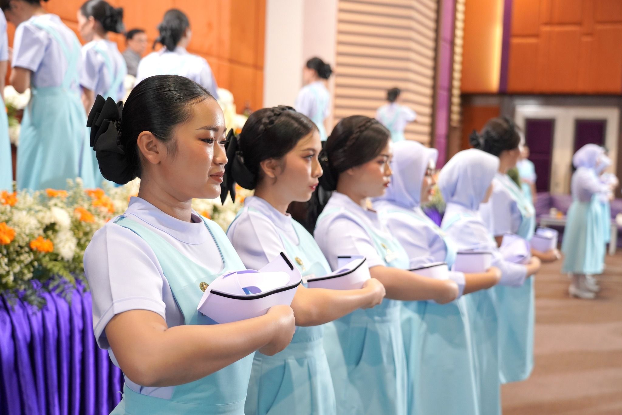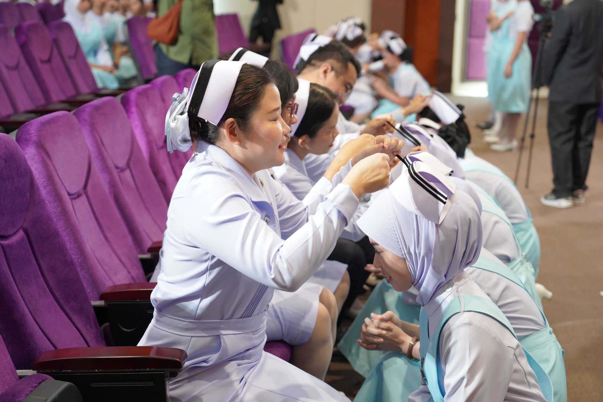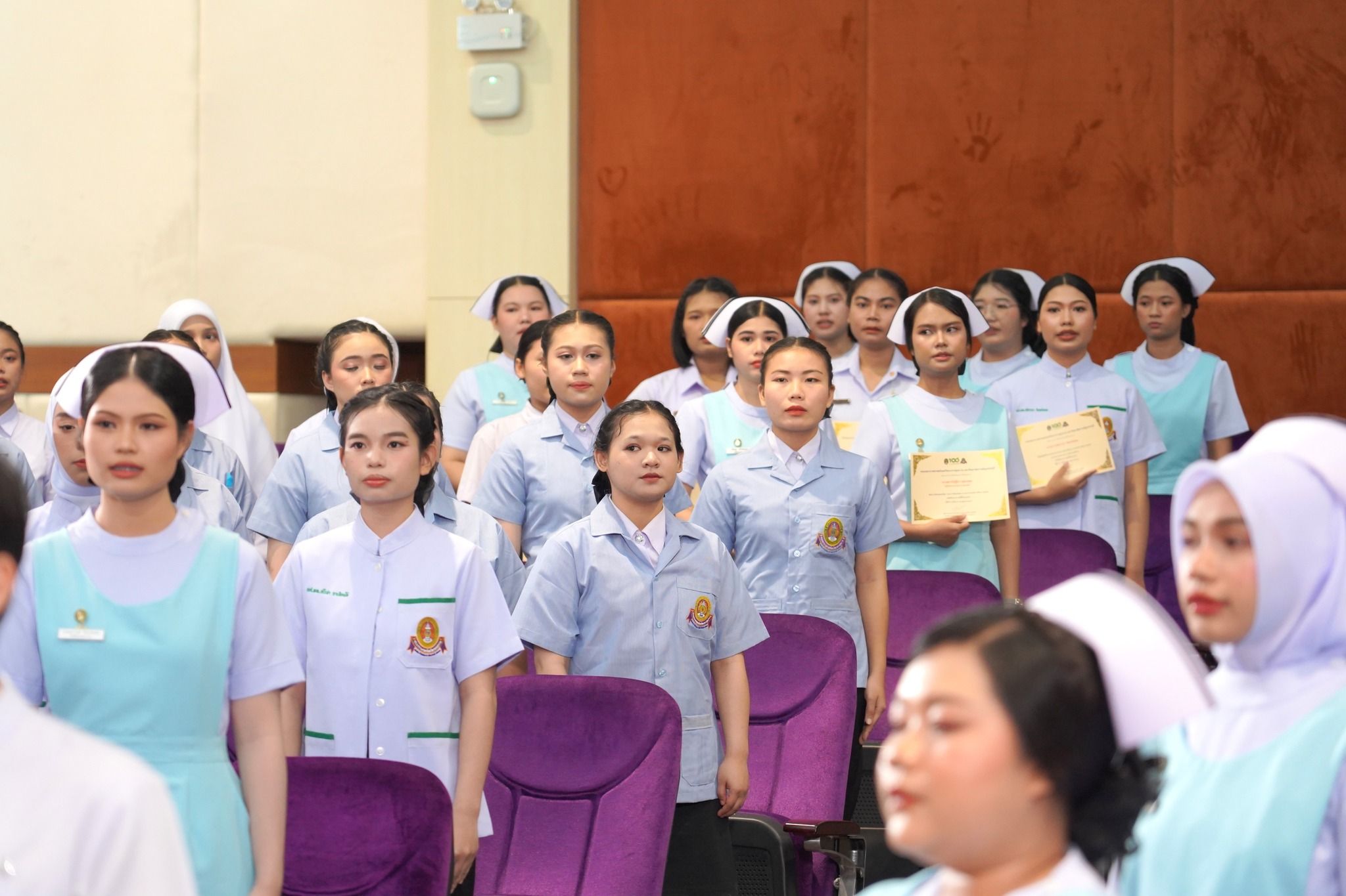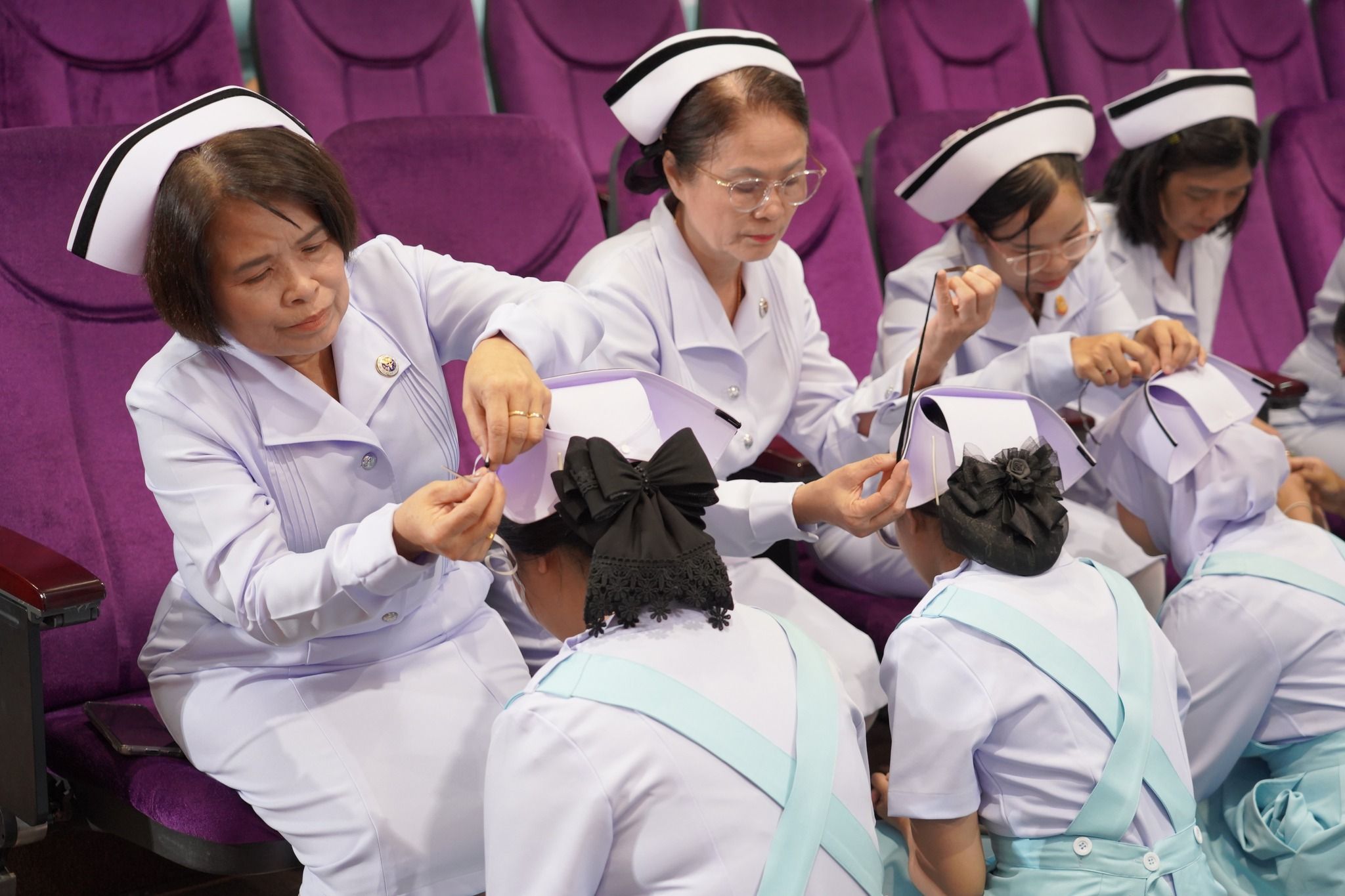 คณะพยาบาลศาสตร์และวิทยาการสุขภาพ จัดกิจกรรม “พิธีรับหมวก เสื้อกาวน์ ขีดเข็มเลื่อนชั้นปี และพิธีจุดแสงประทีป ประจำปีการศึกษา 2568” ให้แก่นักศึกษาทั้ง 3 สาขาวิชา ได้แก่ สาขาวิชาพยาบาลศาสตร์ สาขาวิชาสาธารณสุขศาสตร์ และสาขาวิชาการแพทย์แผนไทย