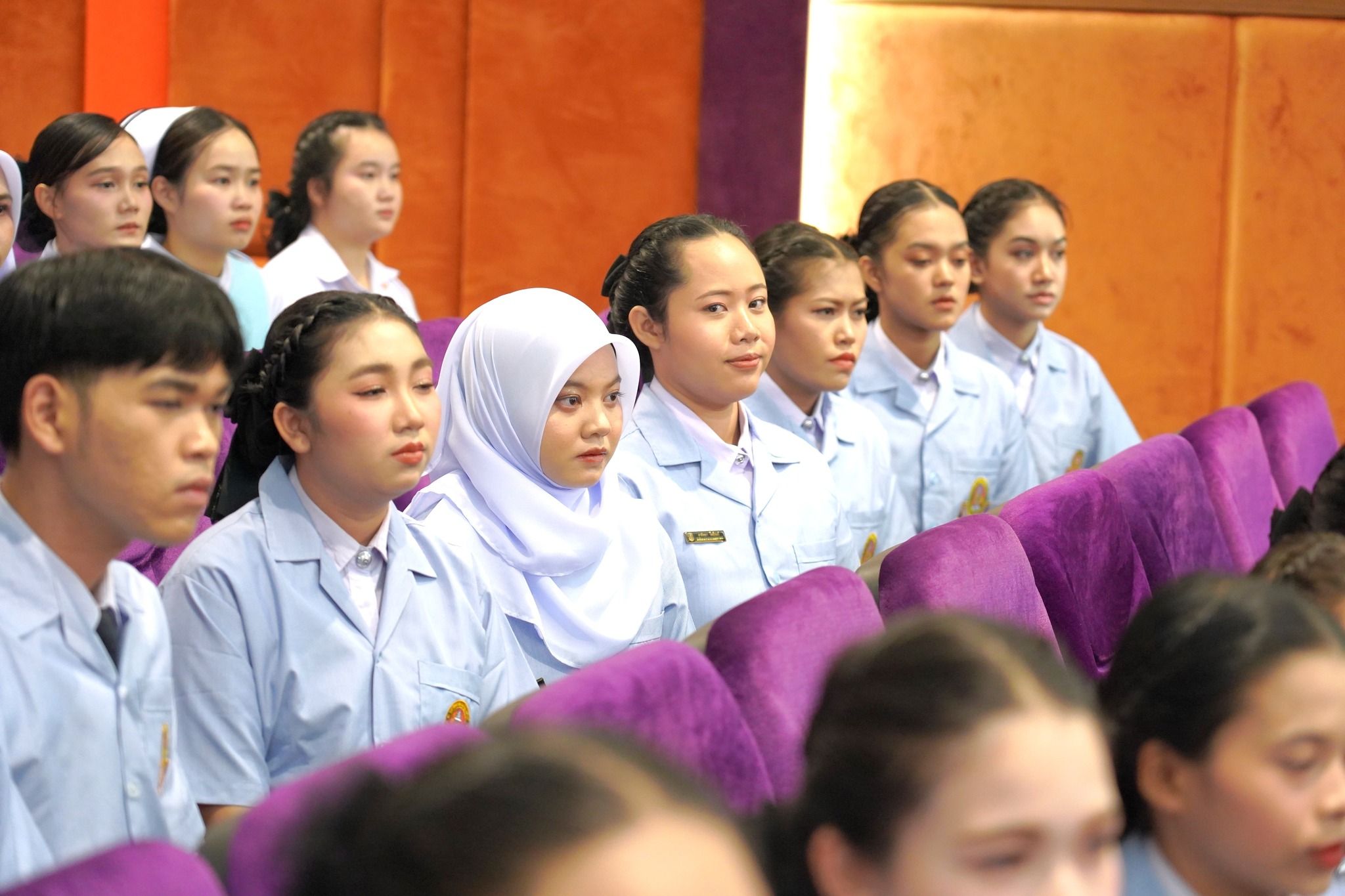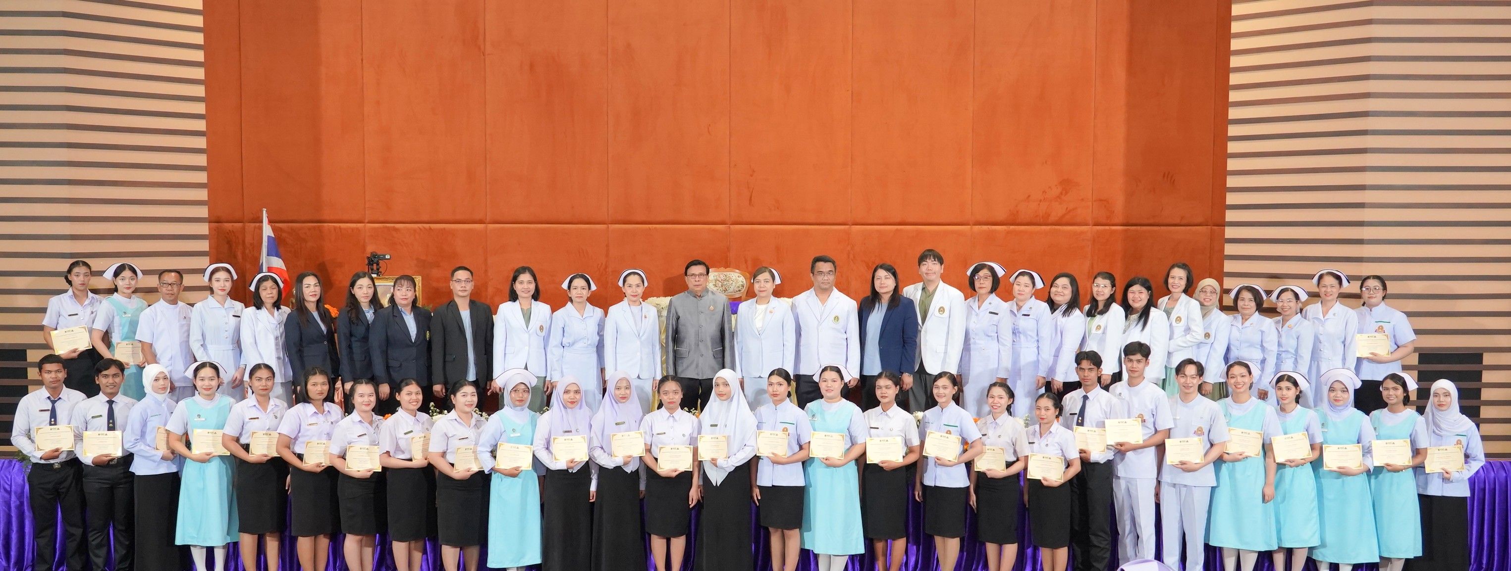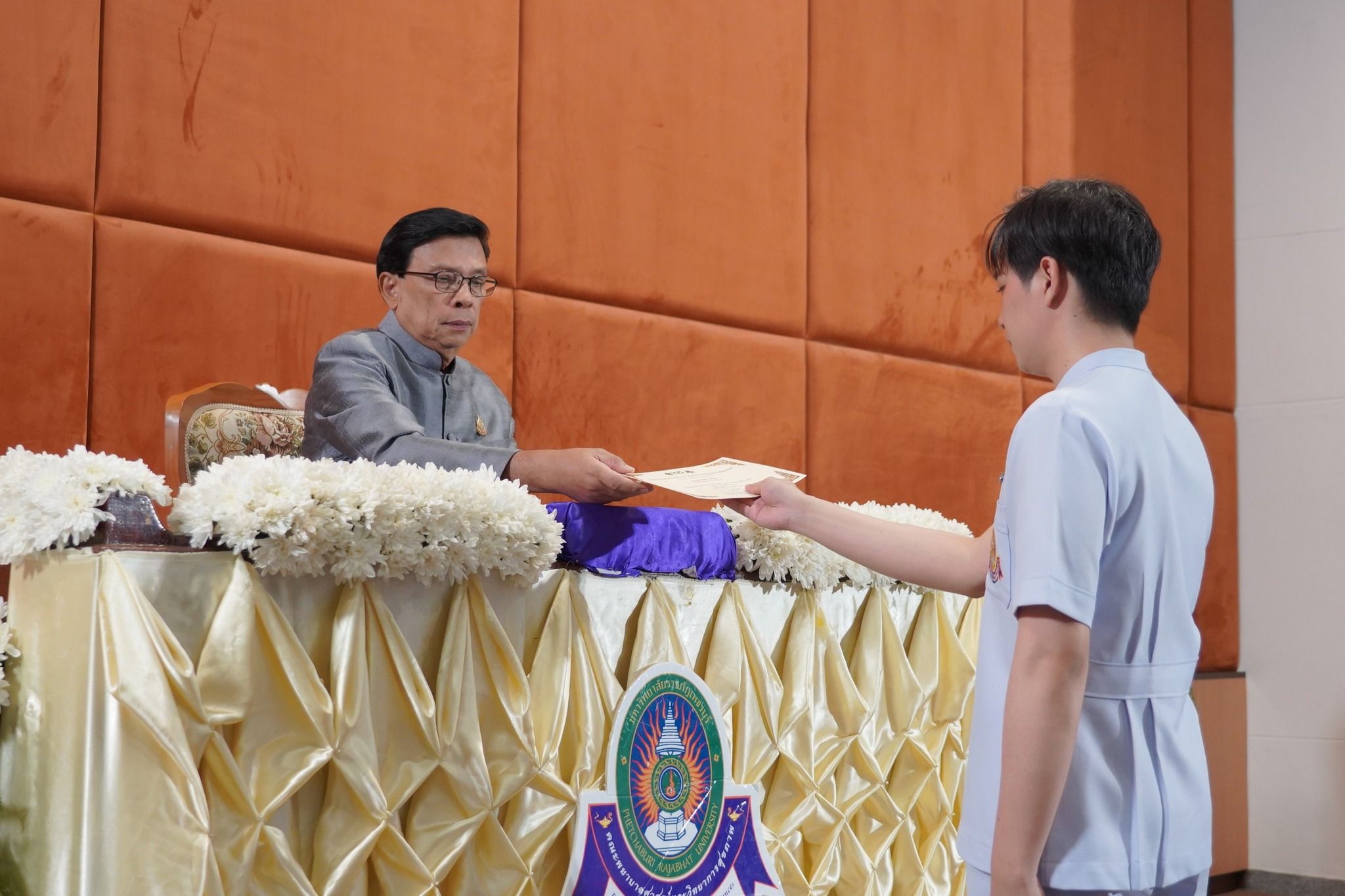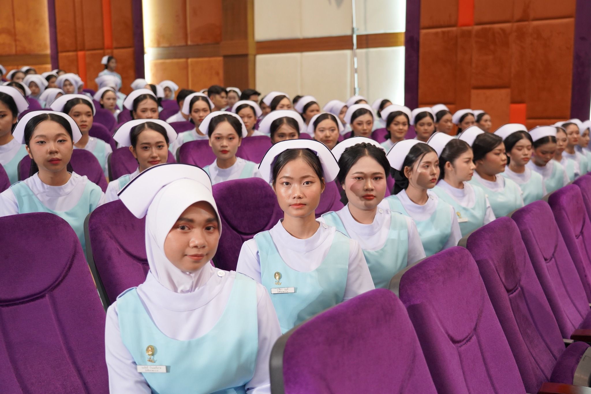 คณะพยาบาลศาสตร์และวิทยาการสุขภาพ จัดกิจกรรม “พิธีรับหมวก เสื้อกาวน์ ขีดเข็มเลื่อนชั้นปี และพิธีจุดแสงประทีป ประจำปีการศึกษา 2568” ให้แก่นักศึกษาทั้ง 3 สาขาวิชา ได้แก่ สาขาวิชาพยาบาลศาสตร์ สาขาวิชาสาธารณสุขศาสตร์ และสาขาวิชาการแพทย์แผนไทย
