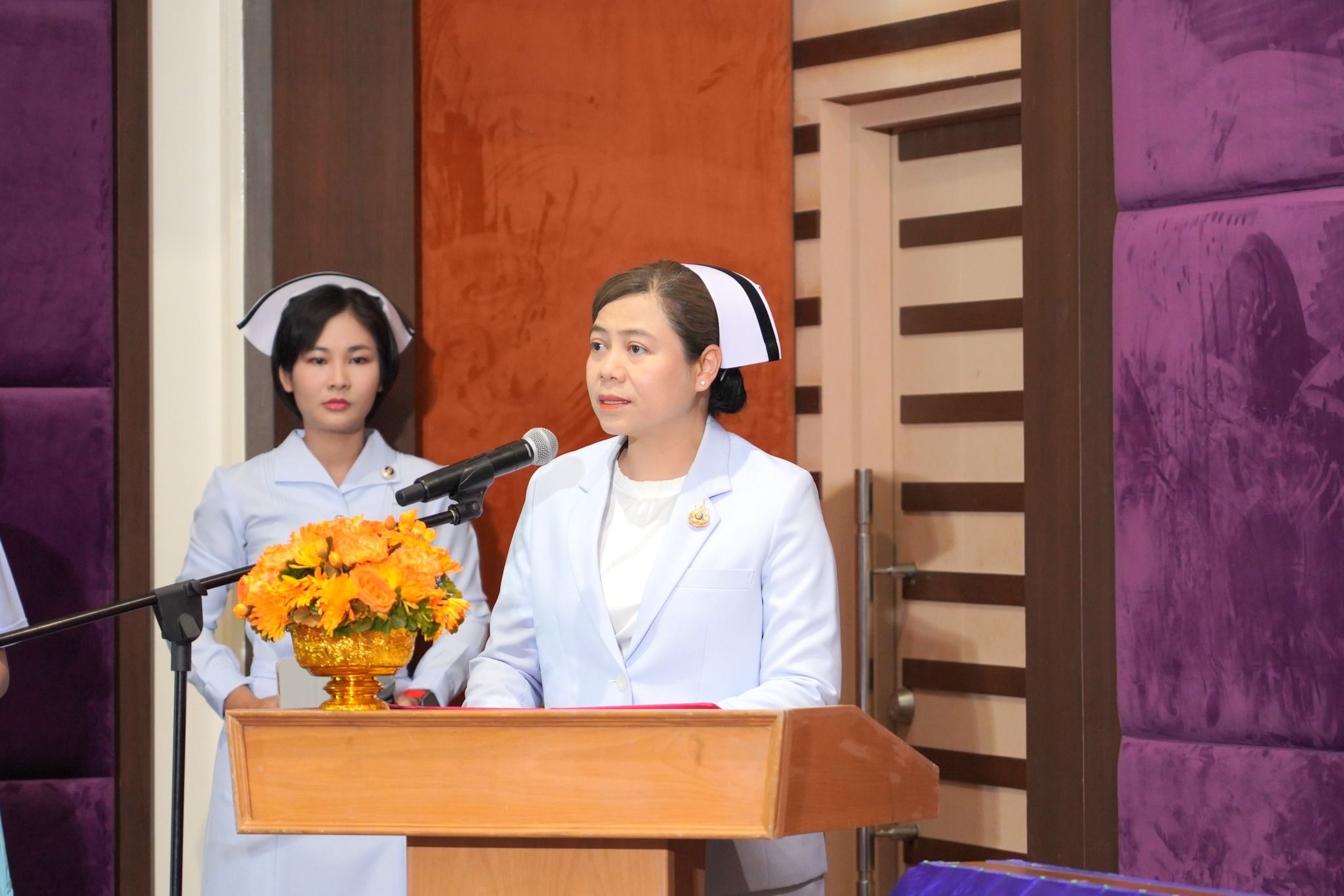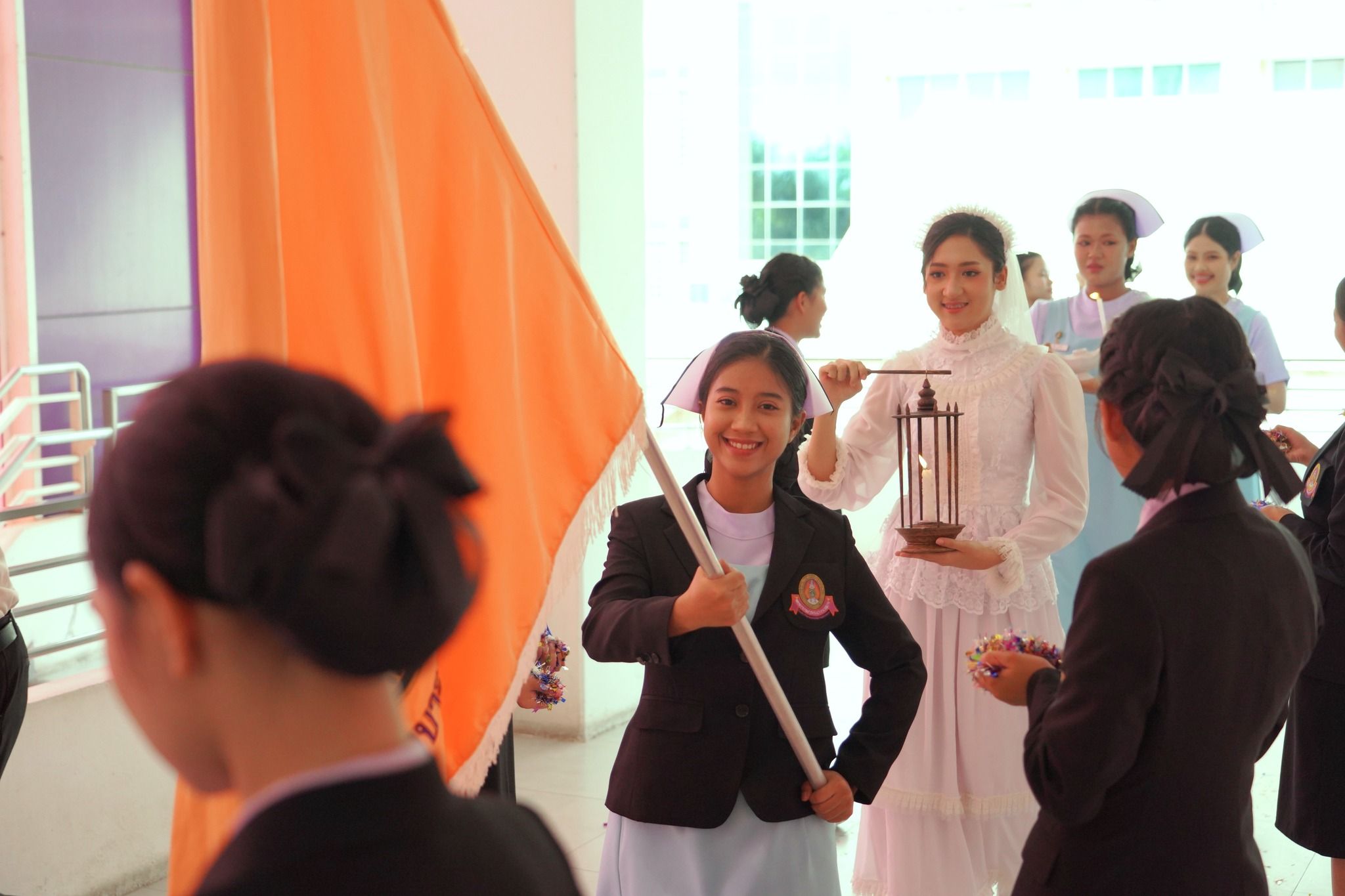 ในการนี้ ผู้ช่วยศาสตราจารย์ เรือเอกหญิง ดร.สุพัตรา นุตรักษ์ คณบดีคณะพยาบาลศาสตร์และวิทยาการสุขภาพ ให้เกียรติเป็นผู้มอบ “ตะเกียงไนติงเกล” แก่นักศึกษาหลักสูตรพยาบาลศาสตรบัณฑิต รุ่นที่ 11 พร้อมทั้งกล่าวให้โอวาทแก่นักศึกษา โดยมีวัตถุประสงค์ของกิจกรรมเพื่อให้นักศึกษาตระหนักถึงหน้าที่และความรับผิดชอบในการดูแลผู้ป่วยอย่างเต็มกำลังความสามารถ ด้วยความรู้ ความเข้าใจ และหัวใจแห่งความเป็นมนุษย์ ซึ่งสะท้อนอัตลักษณ์ของคณะ ได้แก่ “ซื่อสัตย์ มีวินัย ใฝ่เรียนรู้ บริการด้วยใจเอื้ออาทร และจิตใจความเป็นมนุษย์”
