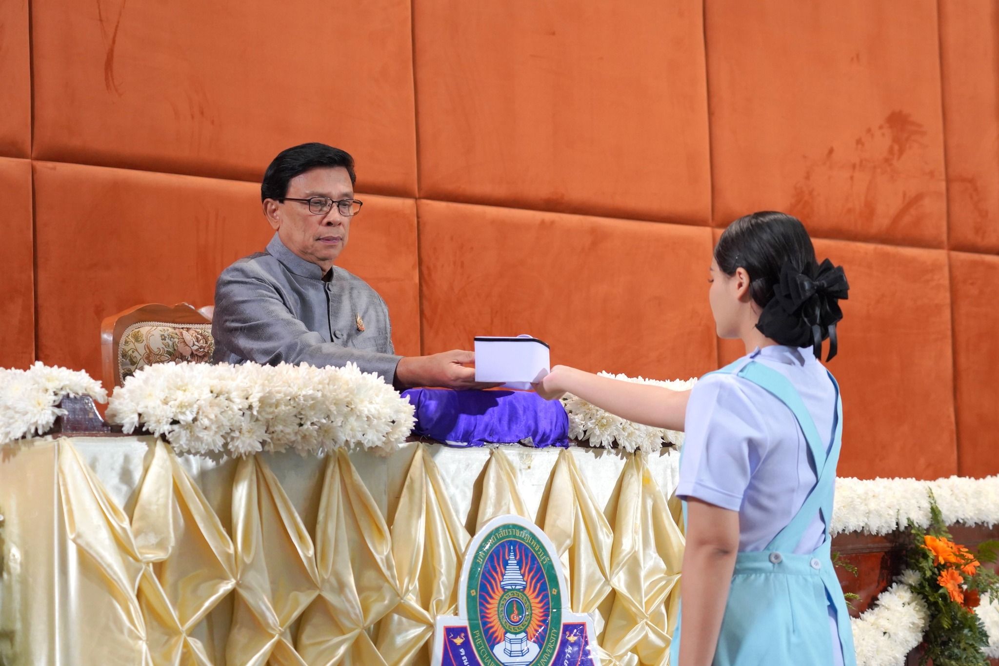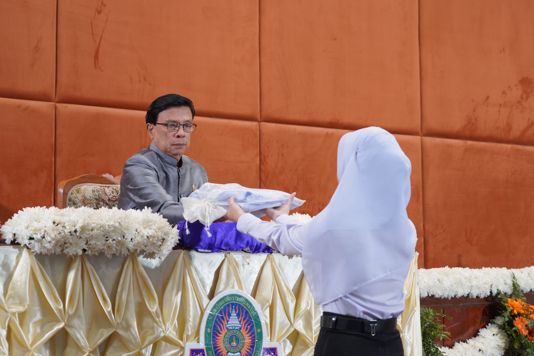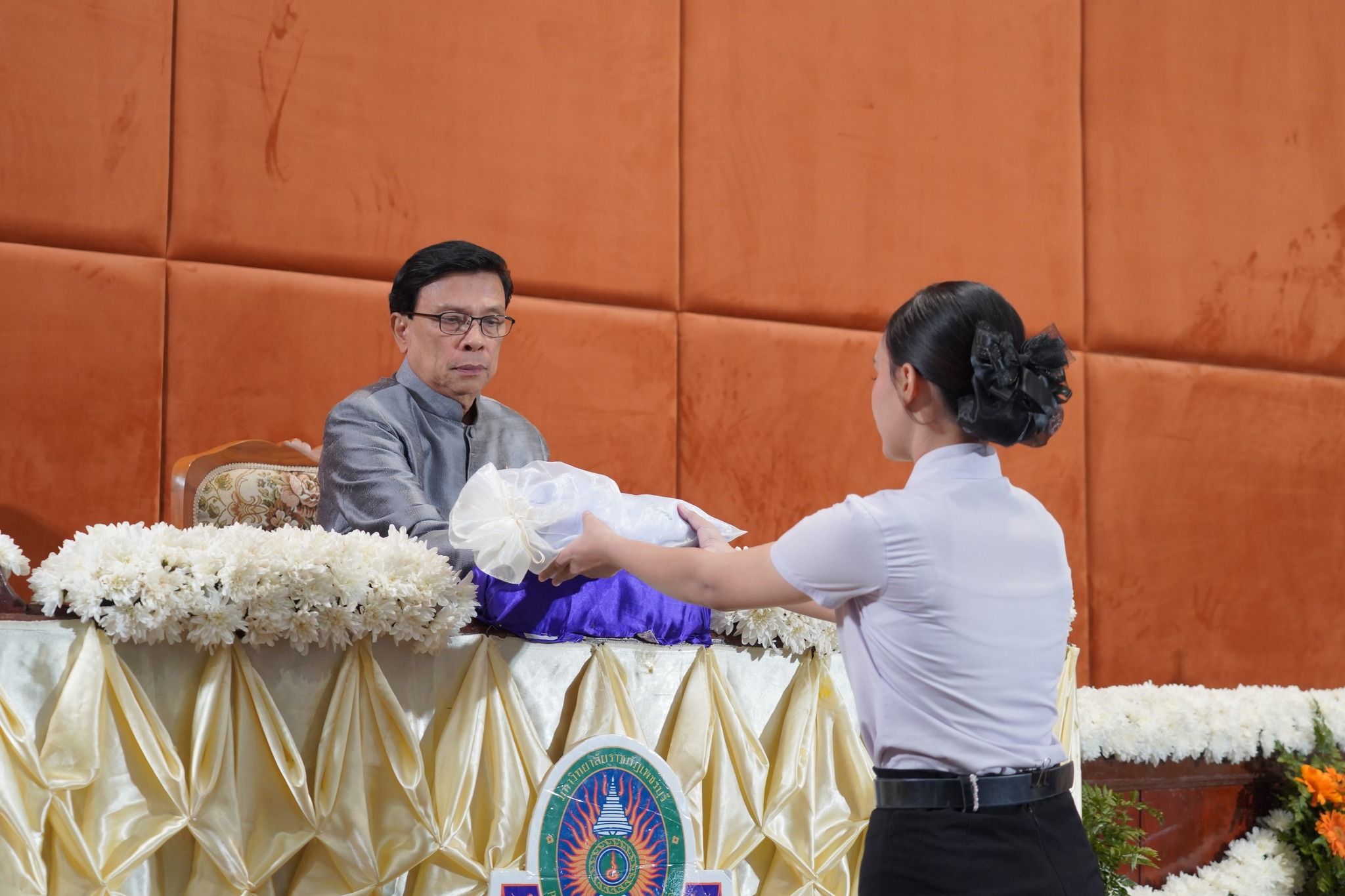 โดยได้รับเกียรติจาก ผู้ช่วยศาสตราจารย์ ดร.เสนาะ กลิ่นงาม อธิการบดีมหาวิทยาลัยราชภัฏเพชรบุรี เป็นประธานในพิธี กล่าวให้โอวาทและมอบหมวก ขีด เข็มเลื่อนชั้นปี และเสื้อกาวน์แก่นักศึกษา พร้อมทั้งมอบเกียรติบัตรแก่ผู้มีอัตลักษณ์ดีเด่นในด้านต่างๆ และ ผู้ช่วยศาสตราจารย์ เรือเอกหญิง ดร.สุพัตรา นุตรักษ์ คณบดีคณะพยาบาลศาสตร์และวิทยาการสุขภาพ เป็นผู้กล่าวรายงานวัตถุประสงค์ของการจัดกิจกรรม พร้อมด้วย ผู้บริหาร คณาจารย์ และนักศึกษาทั้ง 3 สาขาวิชา เข้าร่วมในพิธีฯ อย่างพร้อมเพรียง