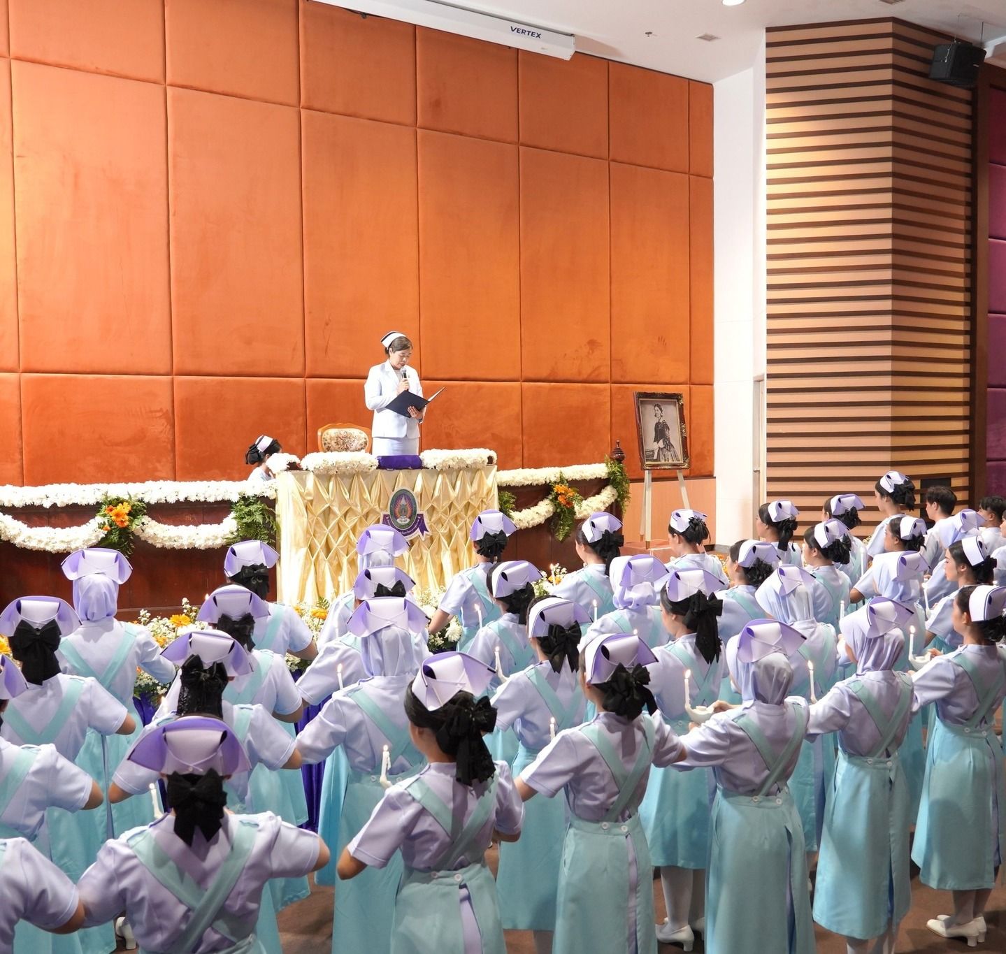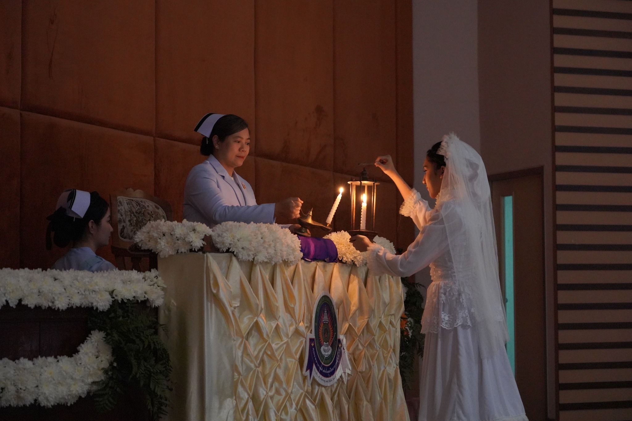 ภายหลังเสร็จสิ้นพิธีมอบหมวก เสื้อกาวน์ และขีดเข็มเลื่อนชั้นปี ได้เข้าสู่พิธีมอบตะเกียงไนติงเกล ซึ่งเป็นพิธีอันทรงคุณค่าสำหรับนักศึกษาพยาบาลศาสตร์
