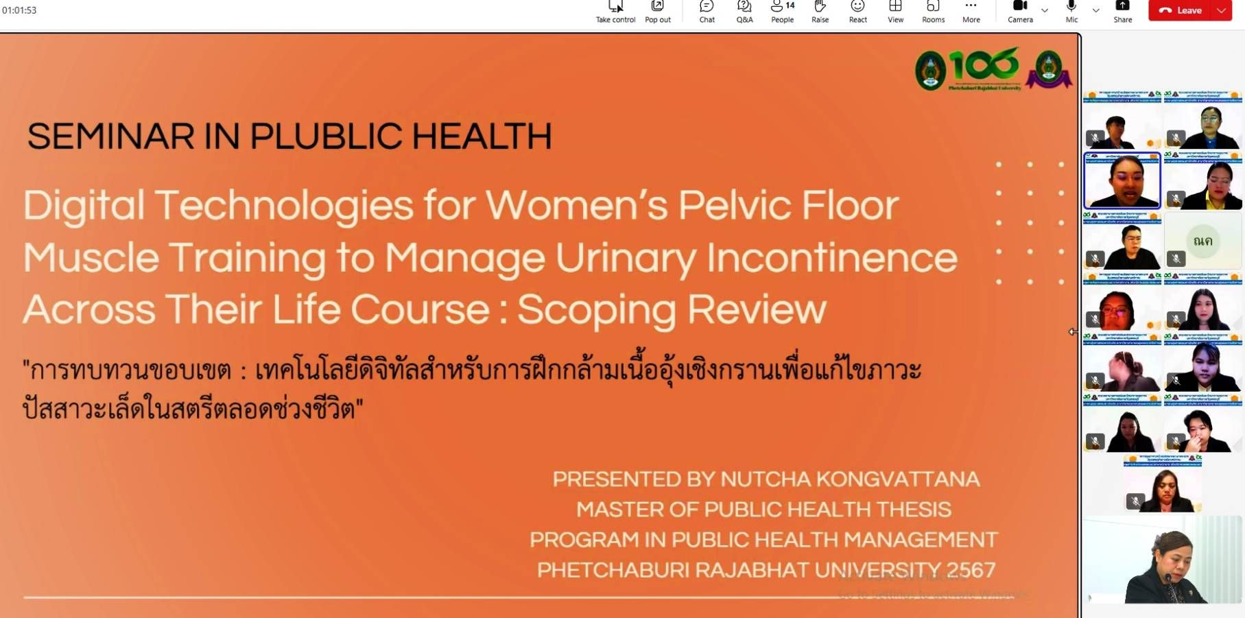 • การทบทวนขอบเขต : เทคโนโลยีดิจิทัลสำหรับการฝึกกล้ามเนื้ออุ้งเชิงกรานเพื่อแก้ไขภาวะปัสสาวะเล็ดในสตรีตลอดช่วงชีวิต