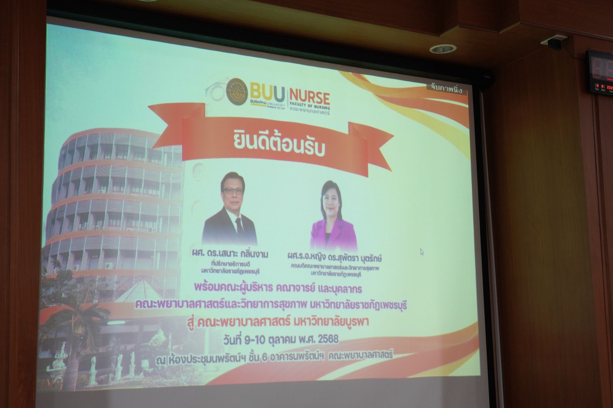 ผู้ช่วยศาสตราจารย์ ดร.เสนาะ กลิ่นงาม ที่ปรึกษาอธิการบดีมหาวิทยาลัยราชภัฏเพชรบุรี พร้อมด้วย ผู้ช่วยศาสตราจารย์ เรือเอกหญิง ดร.สุพัตรา นุตรักษ์ คณบดีคณะพยาบาลศาสตร์และวิทยาการสุขภาพ คณะผู้บริหาร และบุคลากรสายสนับสนุน เข้าร่วมโครงการ “แลกเปลี่ยนเรียนรู้และศึกษาดูงานเพื่อพัฒนากระบวนการประกันคุณภาพหลักสูตรตามเกณฑ์ AUN-QA” ในระหว่างวันที่ 9 - 10 ตุลาคม 2568