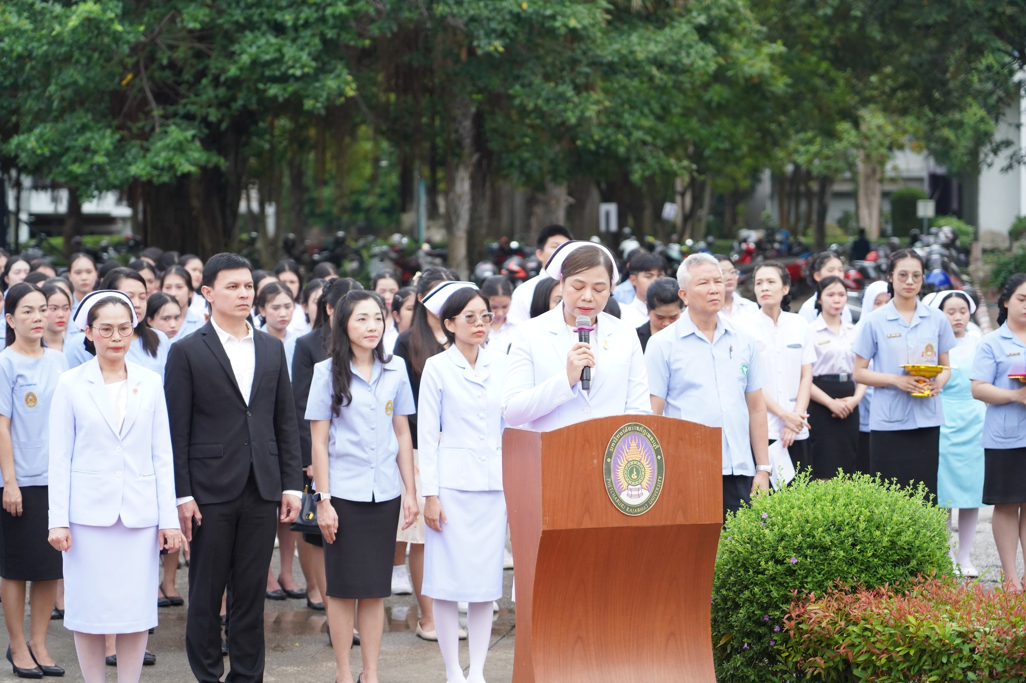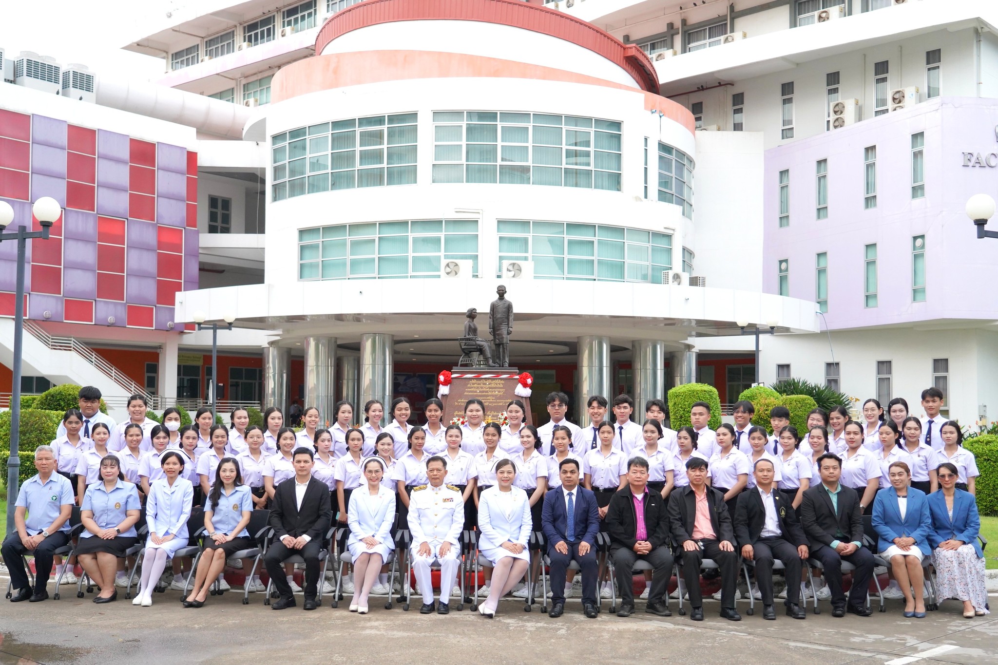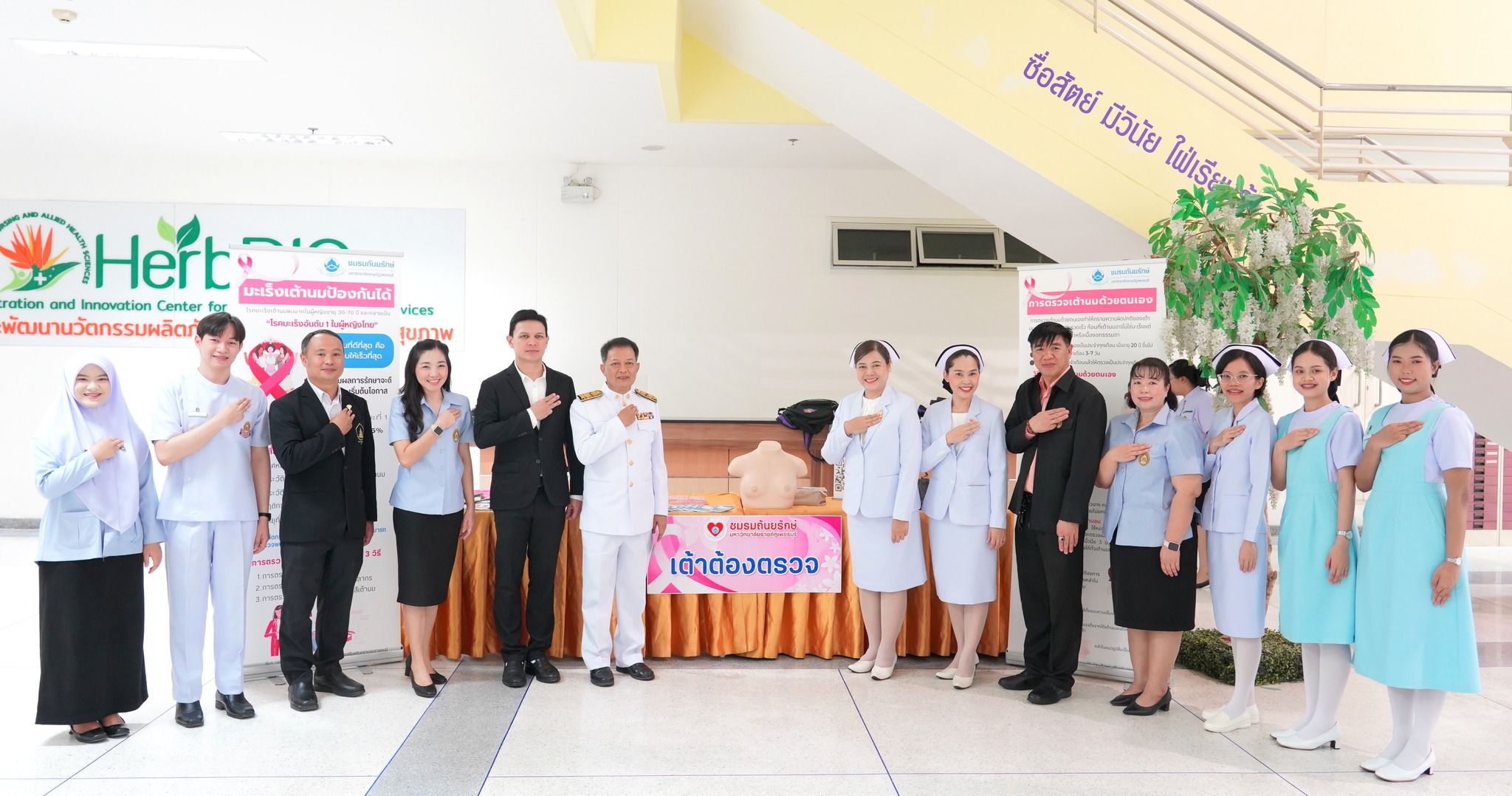 โดยมีคณะผู้บริหารมหาวิทยาลัยฯและคณะฯ คณาจารย์ บุคลากร และนักศึกษาคณะพยาบาลศาสตร์และวิทยาการสุขภาพ ทั้ง 3 หลักสูตร ได้แก่ หลักสูตรพยาบาลศาสตรบัณฑิต สาธารณสุขศาสตรบัณฑิต และการแพทย์แผนไทยบัณฑิต เข้าร่วมกิจกรรมอย่างพร้อมเพรียง