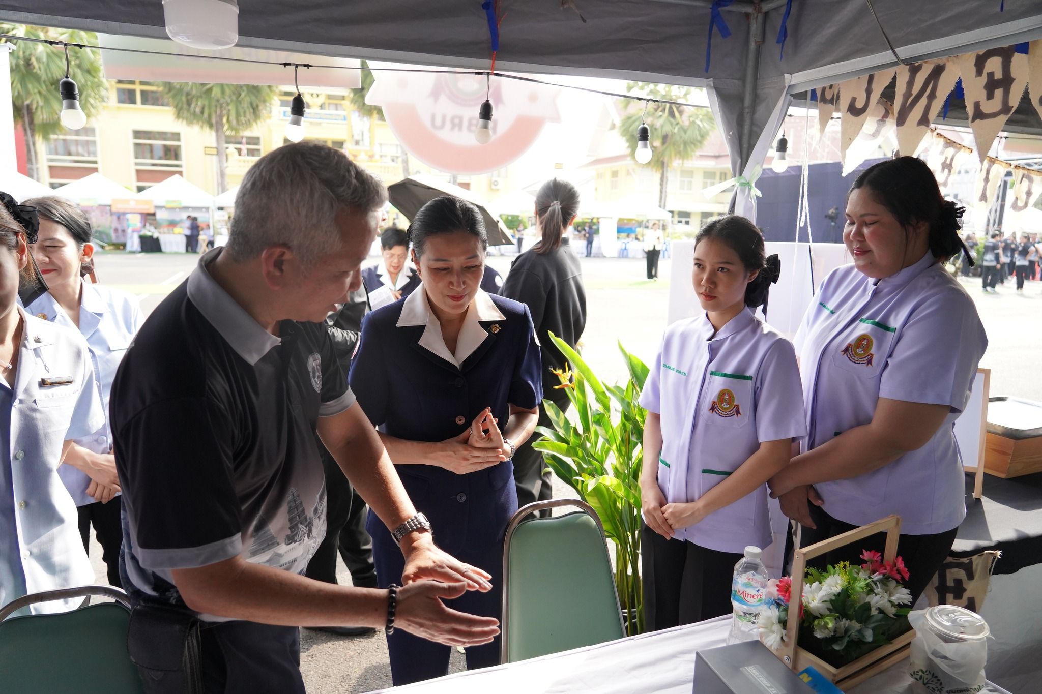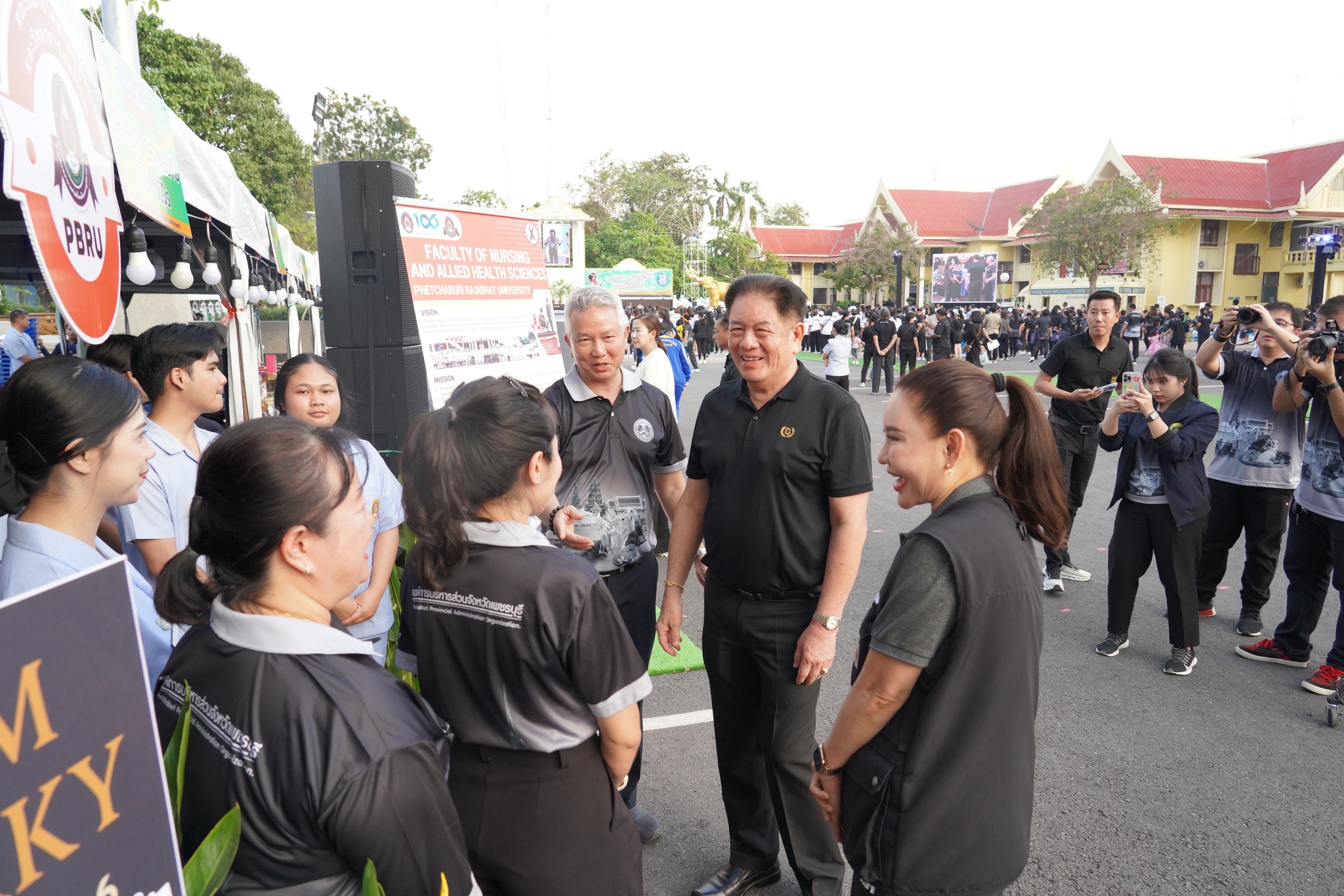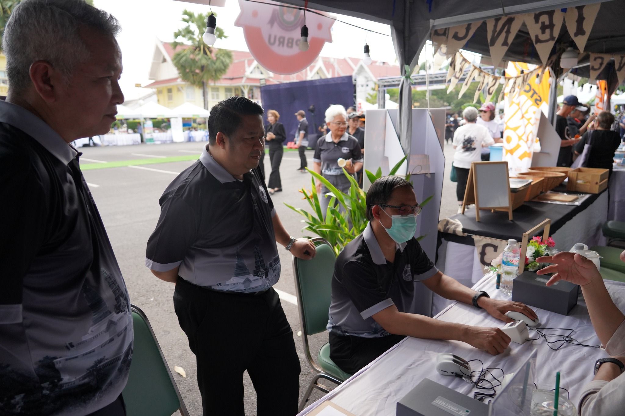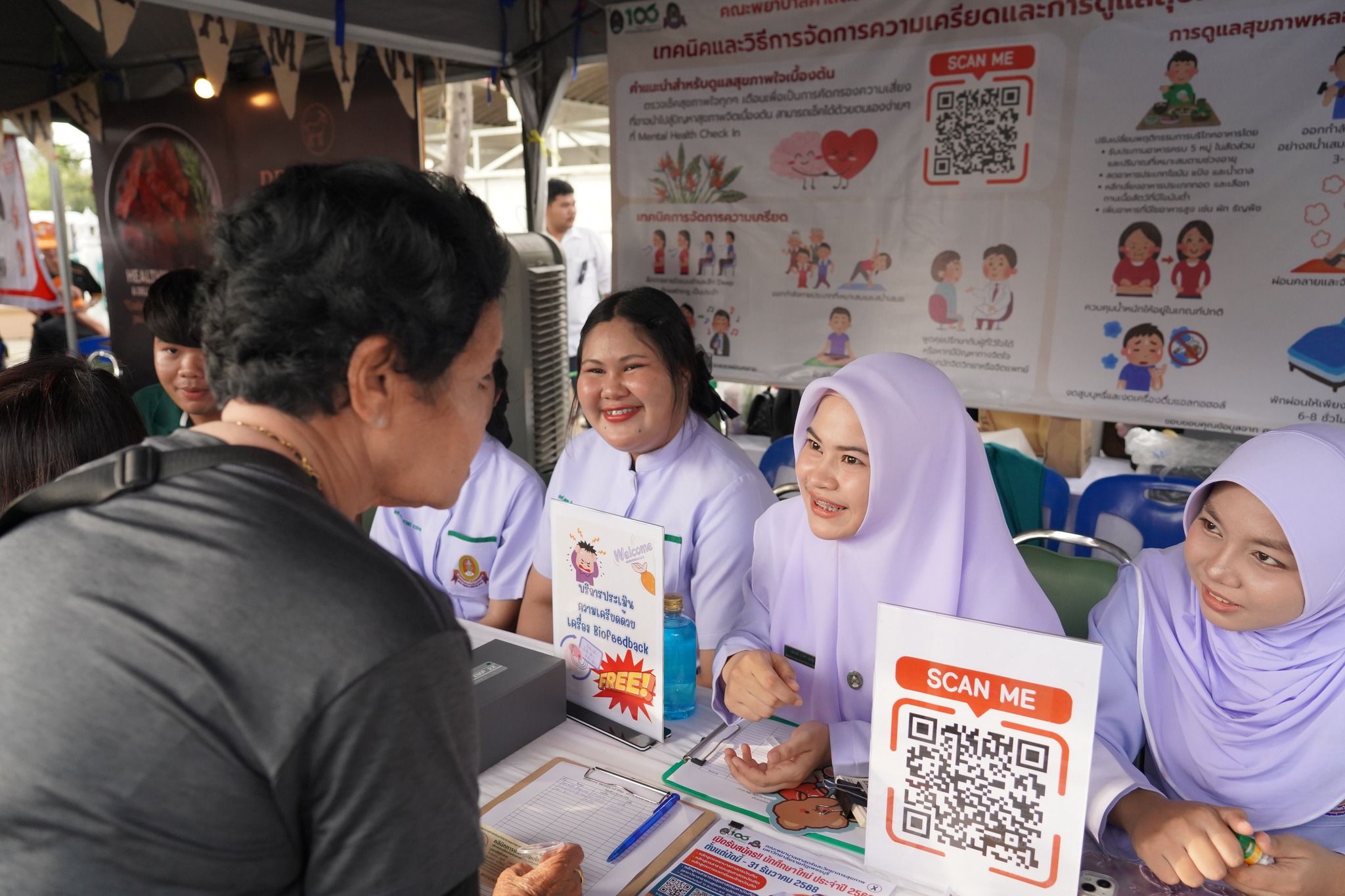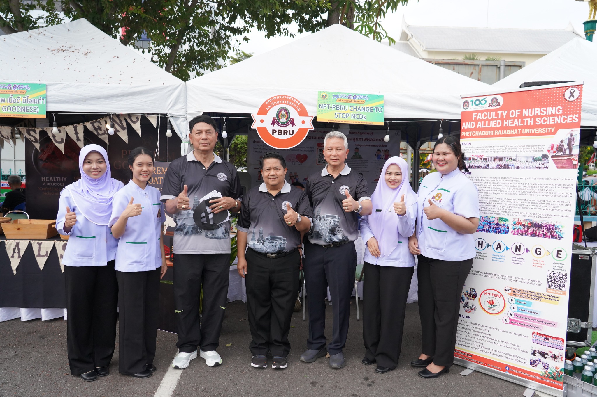 คณะพยาบาลศาสตร์และวิทยาการสุขภาพ โดย ผู้ช่วยศาสตราจารย์ เรือเอกหญิง ดร.สุพัตรา นุตรักษ์ คณบดีฯ มอบหมายให้คณะผู้บริหาร คณาจารย์ และนักศึกษา เข้าร่วมจัดบูธในงาน “มหกรรมสุขภาพดี ชีวิตมีสุข ขยับกาย สบายจิต พิชิต NCDs” ซึ่งจัดโดยองค์การบริหารส่วนจังหวัดเพชรบุรี โดยนำเสนอกิจกรรมให้บริการประชาชน ได้แก่ การประเมินความเครียดด้วยเครื่อง biofeedback การแนะนำการดูแลสุขภาพเบื้องต้น และการประชาสัมพันธ์หลักสูตรของคณะฯ โดยมีนักศึกษาสาขาวิชาพยาบาลศาสตร์ สาธารณสุขศาสตร์ และการแพทย์แผนไทย ร่วมให้บริการอย่างใกล้ชิด