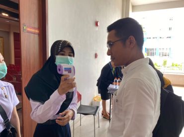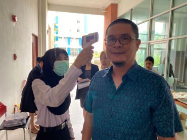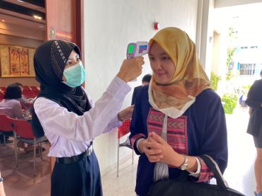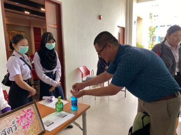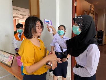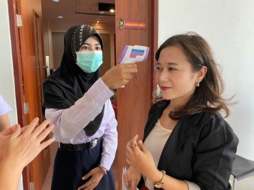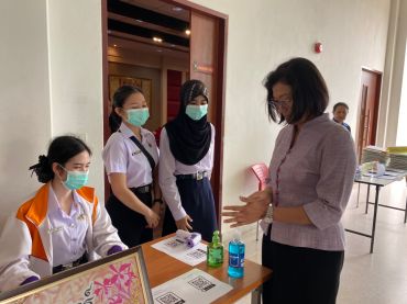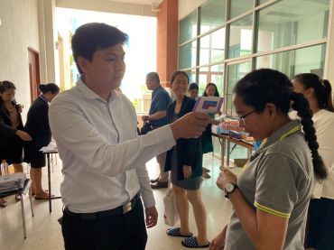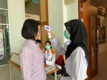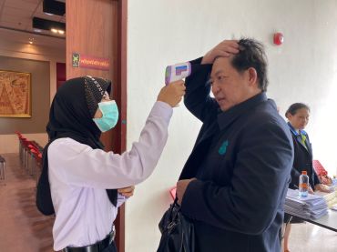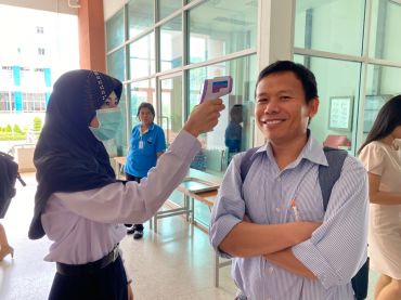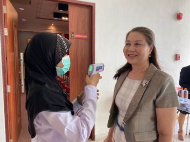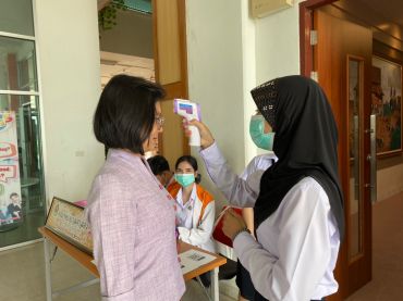 คณะพยาบาลศาสตร์ลงพื้นที่คัดกรองโรค COVID-19 ในงานประชุมโครงการแนวทางการเขียนรายงานประเมินตนเอง AUN-QA มรภ.เพชรบุรี