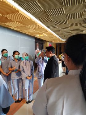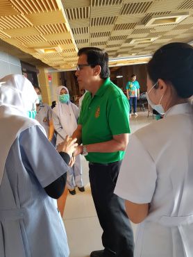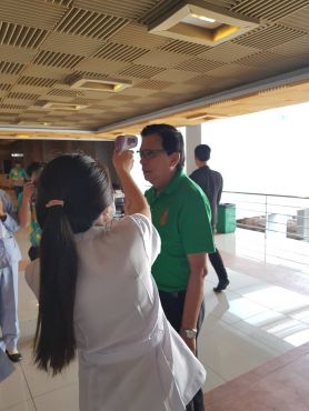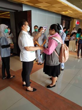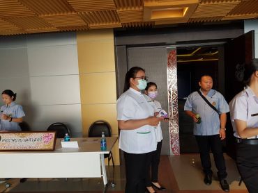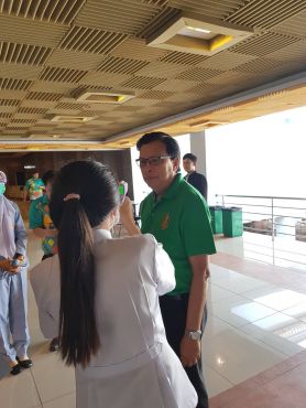 วันที่ 6 มีนาคม 2563 ณ ห้องประชุม เอกศักดิ์บุตรลับ คณะพยาบาลศาสตร์ลงพื้นที่คัดกรองโรค COVID-19 ในกิจกรรมปัจฉิมนิเทศนักศึกษาหลักสูตรครุศาสตร์บัณฑิต (ชั้น 5 ปี) หลักฝึกประสบการณ์วิชาชีพครู ปีการศึกษา 2562 มีผู้เข้าคัดกรองเป็นนักศึกษา จำนวน 360 คน บุคลากร 10 รวมจำนวนคัดกรองทั้งสิ้น 370 คน ไม่พบผู้มีไข้หรือผู้เสี่ยงต่อการเป็นโรค