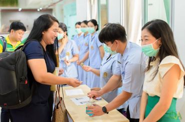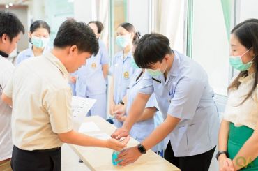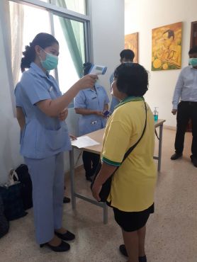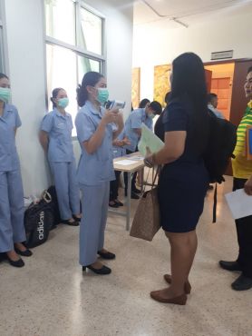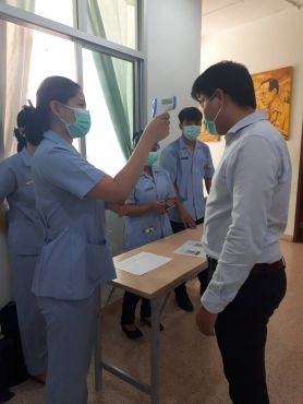 วันที่ 11 มีนาคม 2563 คณะพยาบาลศาสตร์ลงพื้นที่คัดกรองโรค COVID-19 ในกลุ่มบุคคลกรที่เข้าร่วมประชุมโครงการแนวทางการเขียนรายงานประเมินตนเอง AUN-QA มรภ.เพชรบุรี ณ ห้องประชุมร่มฉัตรบารมี ตึกคณะมนุษยศาสตร์และสังคมศาสตร์