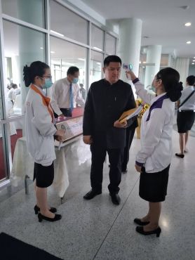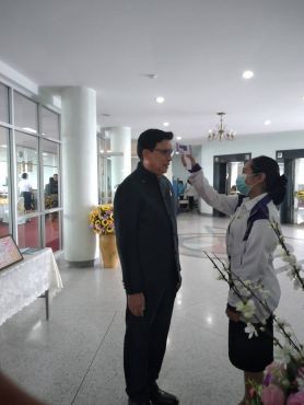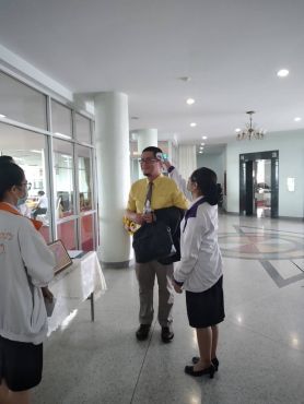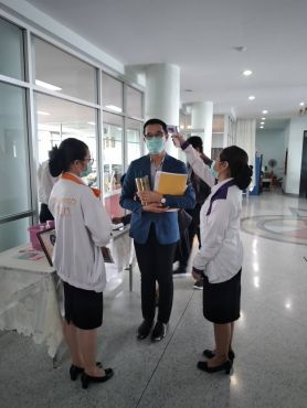 วันจันทร์ ที่ 16 มี.ค. 63 เวลา 08.00-09.00 น. คณะพยาบาลศาสตร์ลงพื้นที่คัดกรองโรค COVID-19 ในงานประชุมสภามหาวิทยาลัย ณ ห้องประชุมราชภัฏสภา ชั้น 9 อาคารวิทยาภิรมย์มีผู้เข้าร่วมประชุม 85 คน ไม่พบผู้มีอาการเข้าข่ายสงสัย มีนักศึกษาทำหน้าที่คัดกรอง 2 คน โดย อ.เผ่า อนันจิ๋ว เป็นผู้ควบคุม