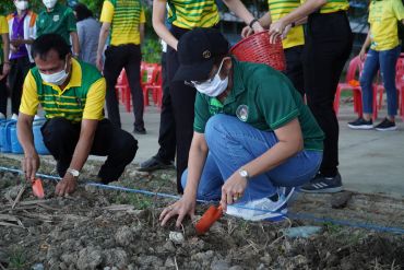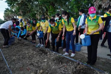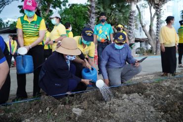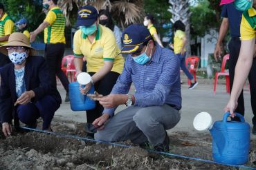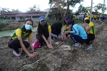 วันที่ 28 พฤษภาคม 2563 เวลา 15.00 น. ผู้ช่วยศาสตราจารย์ ดร.เสนาะ กลิ่นงาม อธิการบดีมหาวิทยาลัยราชภัฏเพชรบุรี นำคณะผู้บริหาร ได้แก่ รองคณบดี คณบดีคณะต่าง ๆ และคณบดีคณะพยาบาลศาสตร์ อาจารย์ บุคลากรสายสนับสนุนและนักศึกษาคณะพยาบาลศาสตร์ ได้แก่สาขาวิชาพยาบาลศาสตร์ สาขาวิชาสาธารณสุขศาสตร์ และสาขาวิชาการแพทย์แผนไทย ลงพื้นที่ศูนย์เรียนรู้เศรษฐกิจพอเพียง ดำเนินกิจกรรมซึ่งประกอบด้วยการเล่าประวัติความเป็นมา และแนวทางการดูแลแปลงสมุนไพร แก่บุคลากรและนักศึกษาคณะพยาบาลศาสตร์ นอกจากนี้ยังได้ร่วมกันปลูกพืชสมุนไพร ได้แก่ ไพล ขมิ้นชัน ขมิ้นอ้อย จำนวนอย่างละ 10 กิโลกรัม ซึ่งสมุนไพรทั้งสามชนิดเป็นพืชเศรษฐกิจที่สามารถแปรรูปเป็นผลิตภัณฑ์สุขภาพ อาทิ น้ำมันสมุนไพร ลูกประคบสมุนไพร และผลิตภัณฑ์บรรเทาอาการปวดกระดูกและข้อ เป็นต้น การปลูกสมุนไพรในครั้งนี้มีวัตถุประสงค์เพื่อใช้เป็นแหล่งเรียนรู้ สร้างงาน สร้างรายได้ ให้แก่นักศึกษา ประชาชนทั่วไปและแหล่งให้บริการวิชาการของคณะพยาบาลศาสตร์ มหาวิทยาลัยราชภัฏเพชรบุรี ต่อไป