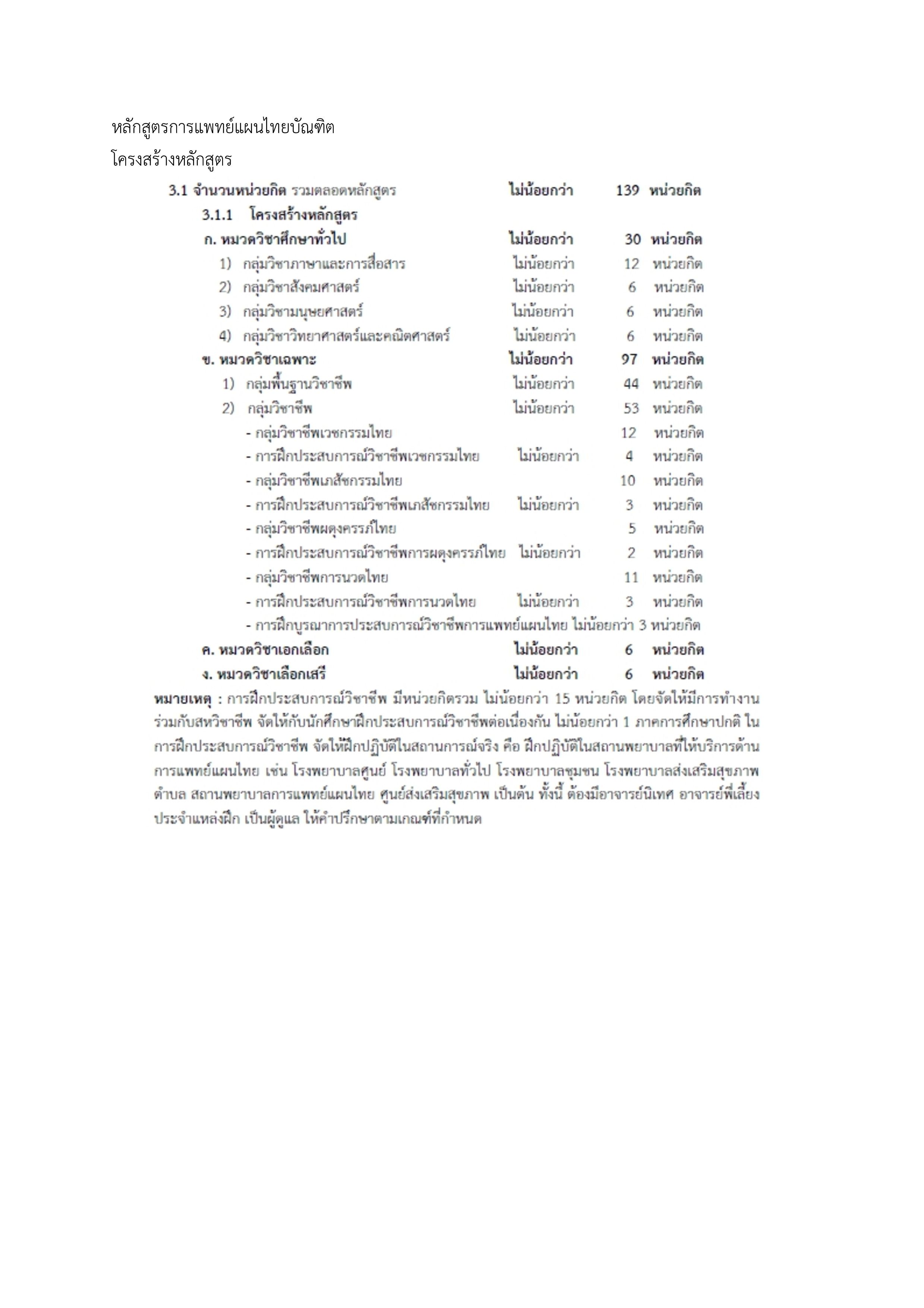 หลักสูตรการแพทย์แผนไทยบัณฑิต